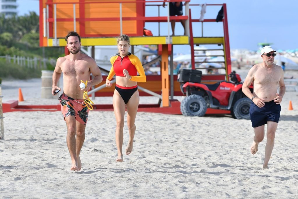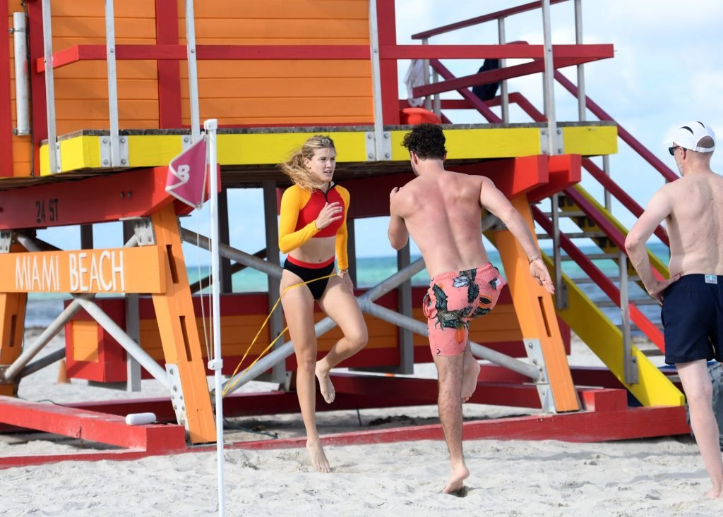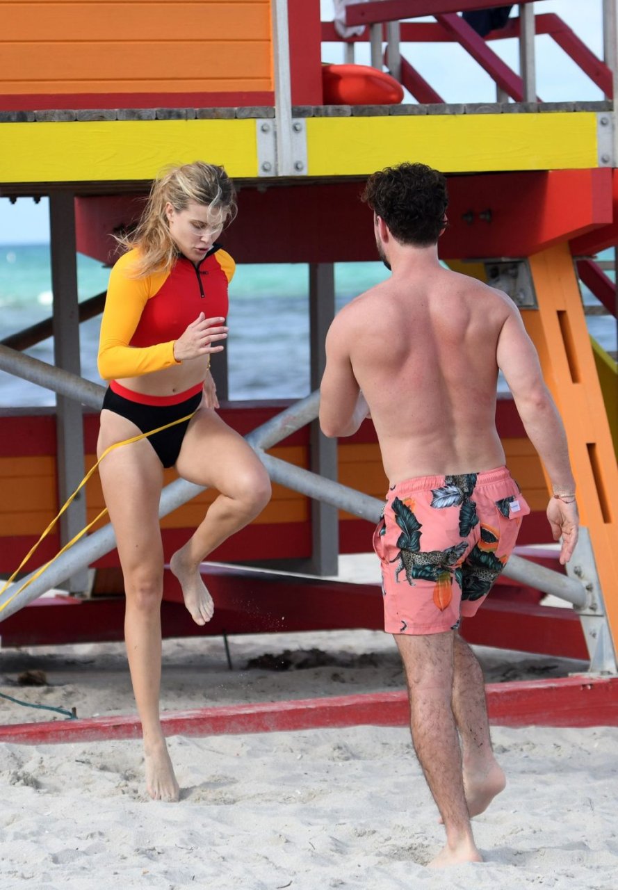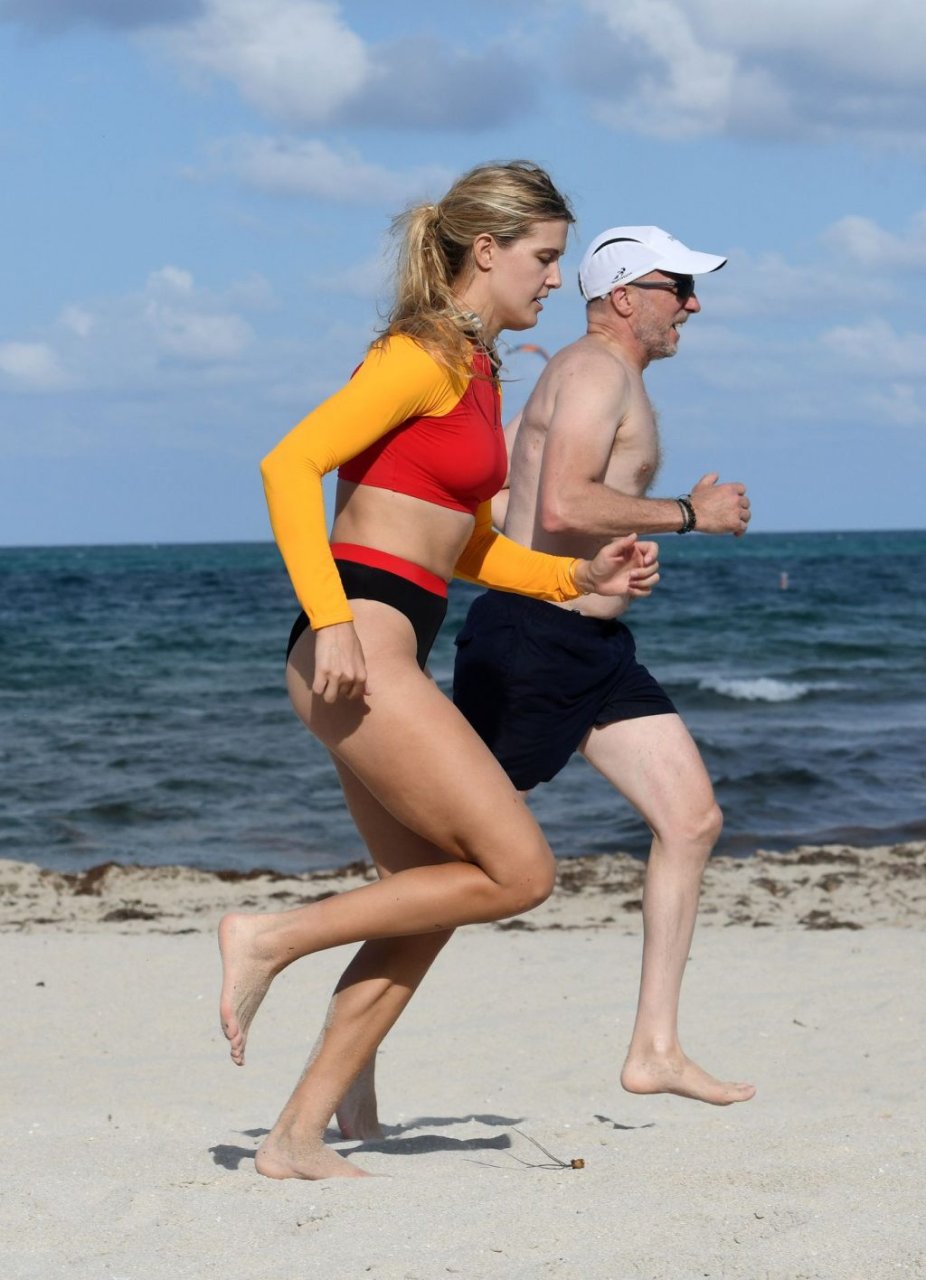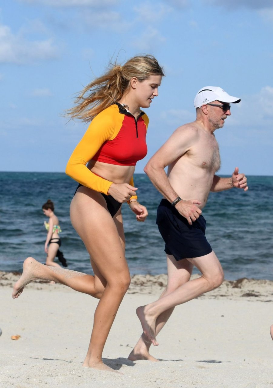 Eugenie Bouchard viene messa alla prova dal suo aitante personal trainer mentre fa un allenamento intenso sulla spiaggia con suo padre Mike – Miami, 18/05/2019. La tennista canadese indossava un top bikini a maniche lunghe di colore acceso e slip bikini abbinati, mostrando la sua incredibile figura mentre eseguiva un allenamento vario con bande di resistenza e una palla, con suo padre Mike che partecipava all’azione.