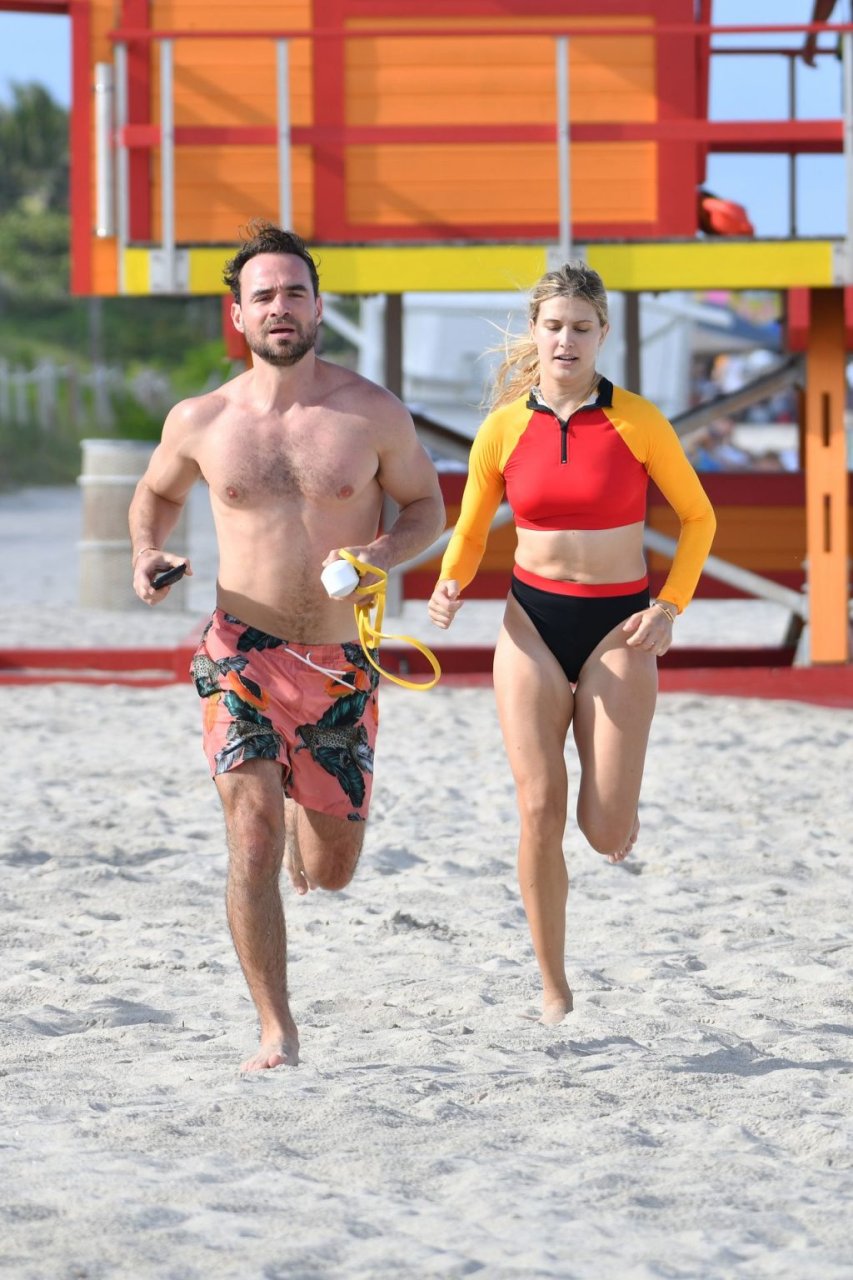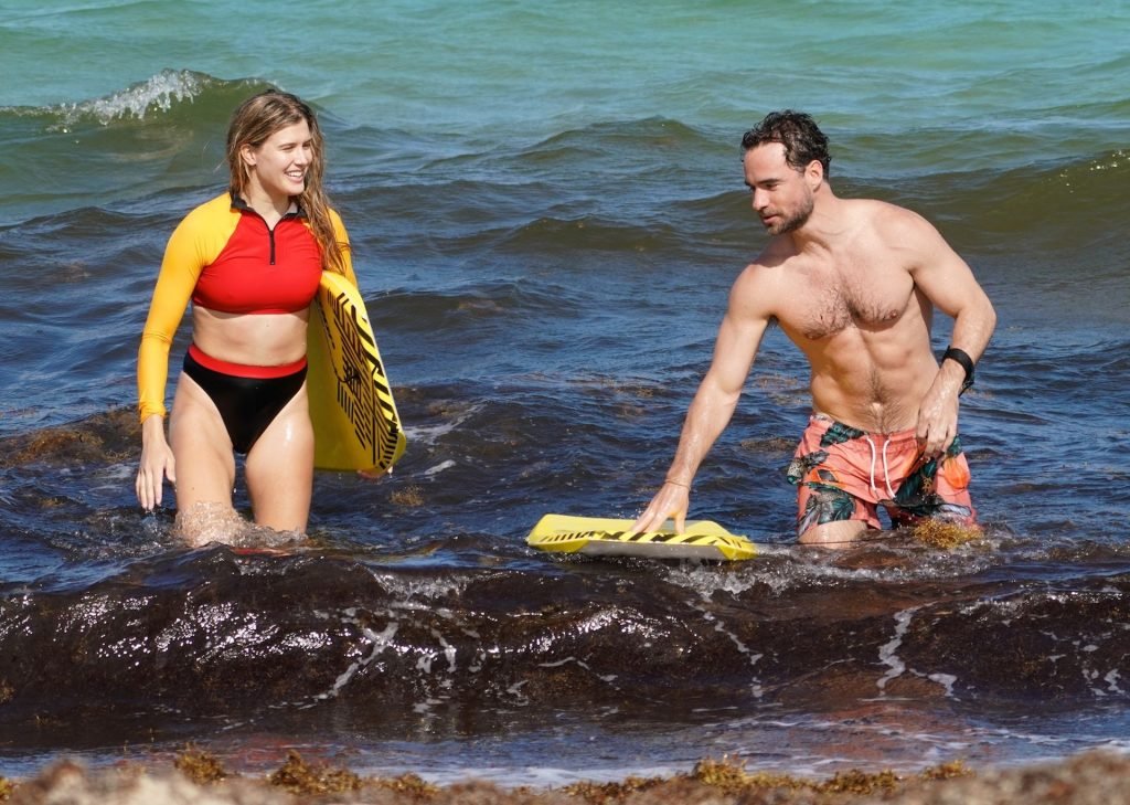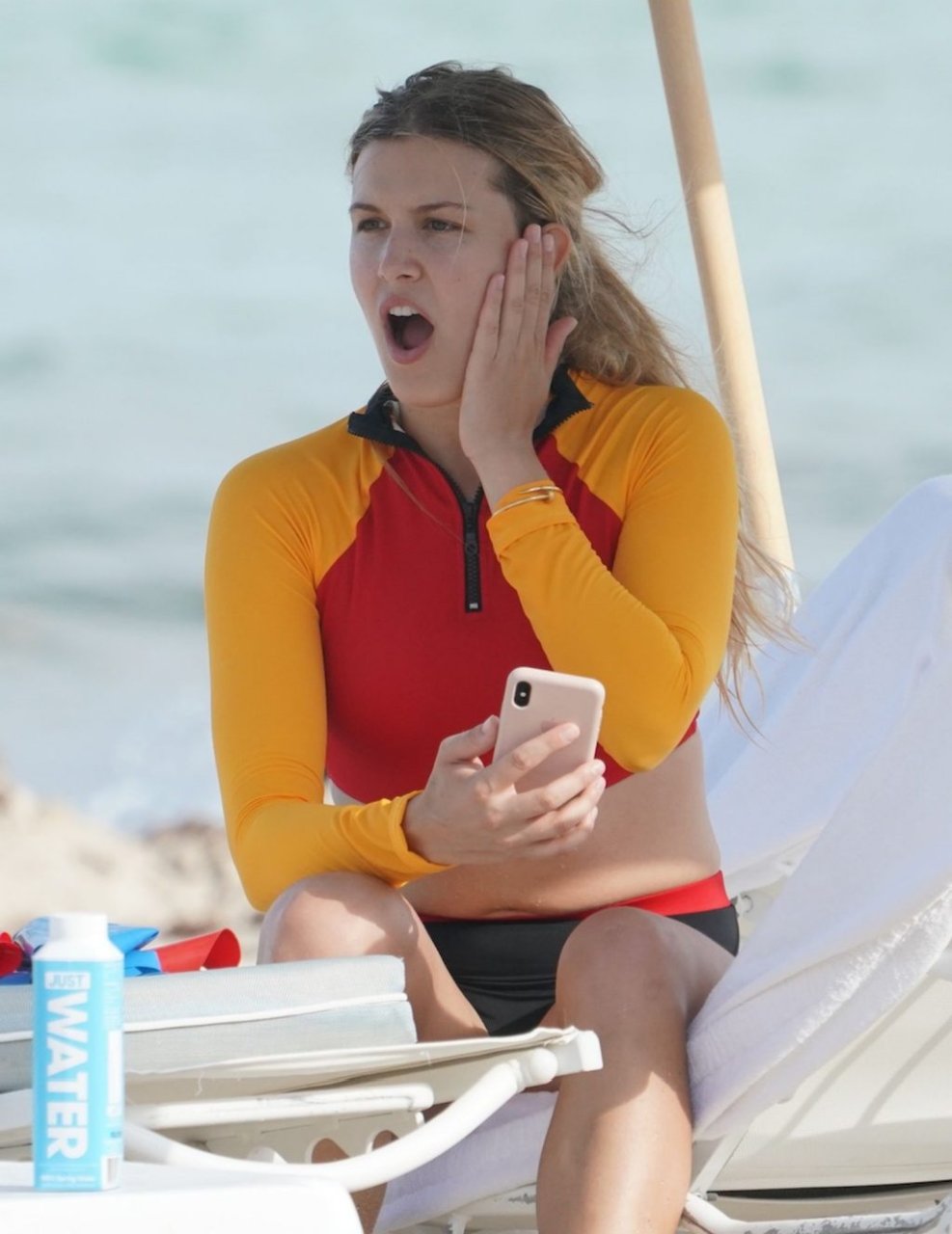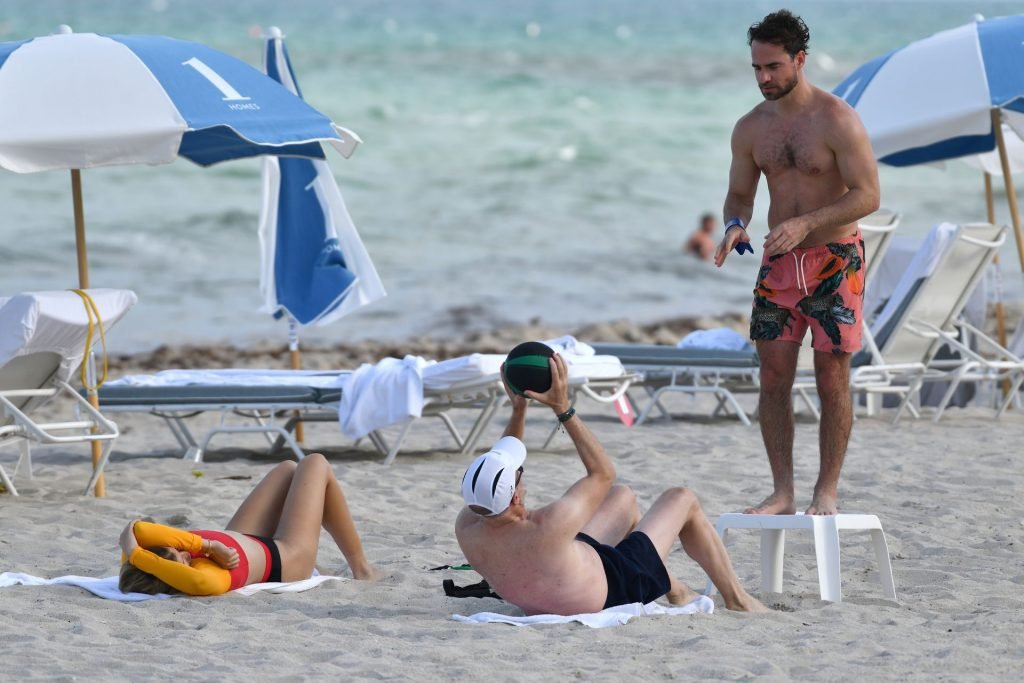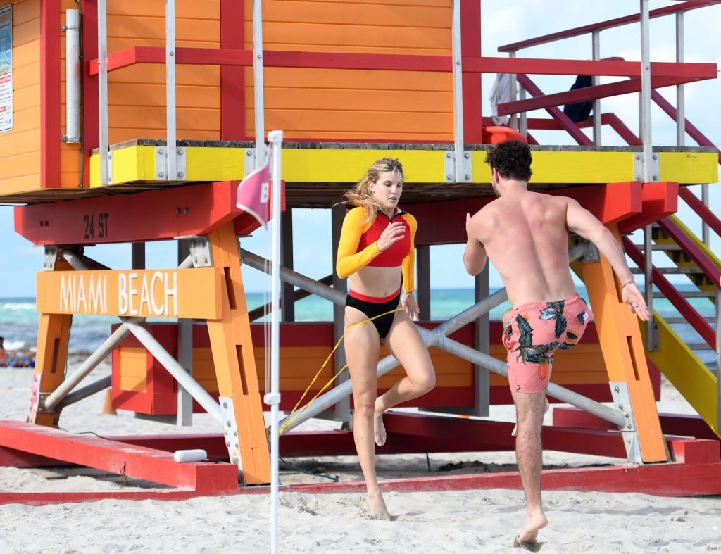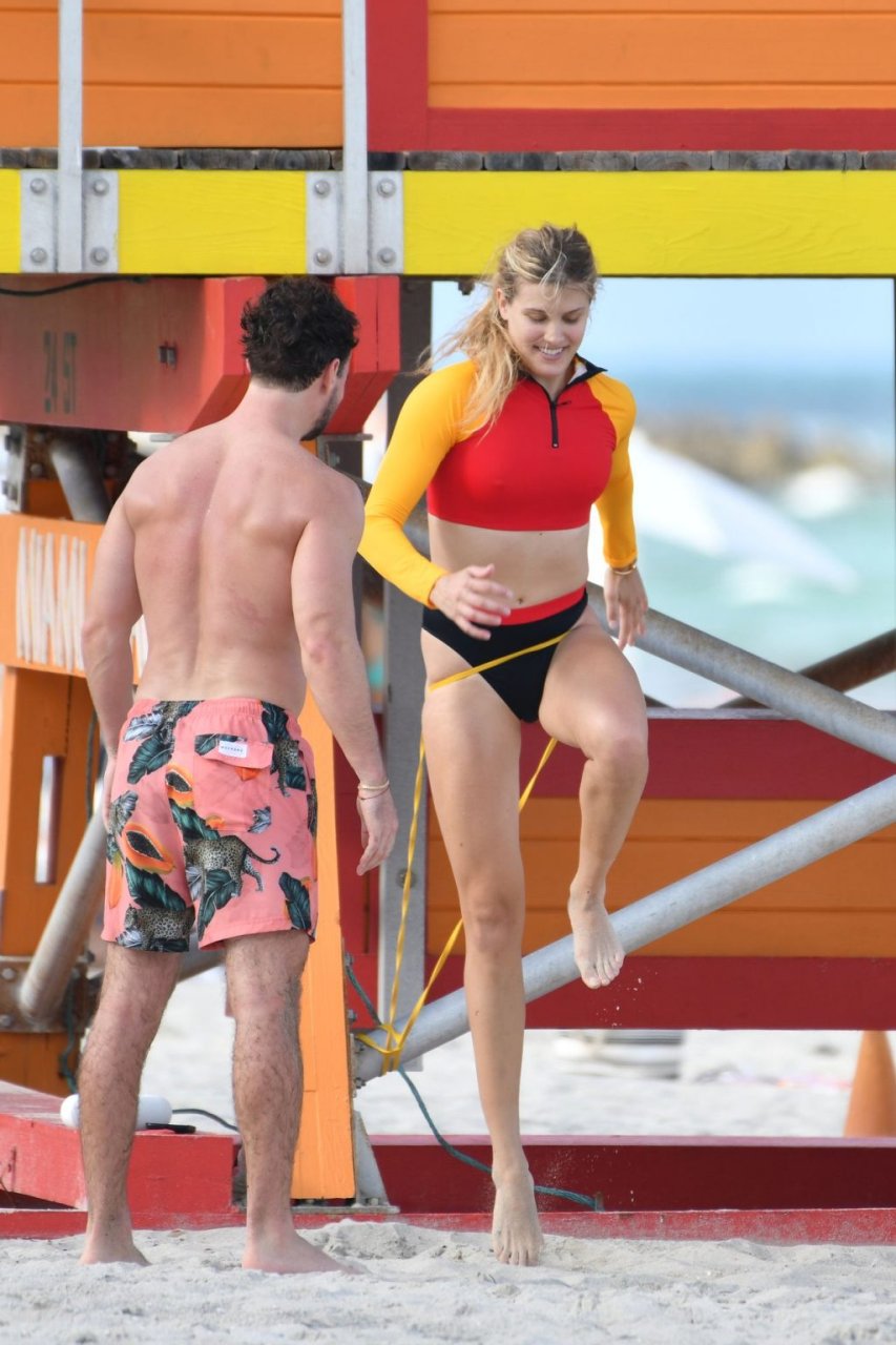 Eugenie Bouchard viene messa alla prova dal suo aitante personal trainer mentre fa un allenamento intenso sulla spiaggia con suo padre Mike – Miami, 18/05/2019. La tennista canadese indossava un top bikini a maniche lunghe di colore acceso e slip bikini abbinati, mostrando la sua incredibile figura mentre eseguiva un allenamento vario con bande di resistenza e una palla, con suo padre Mike che partecipava all’azione.