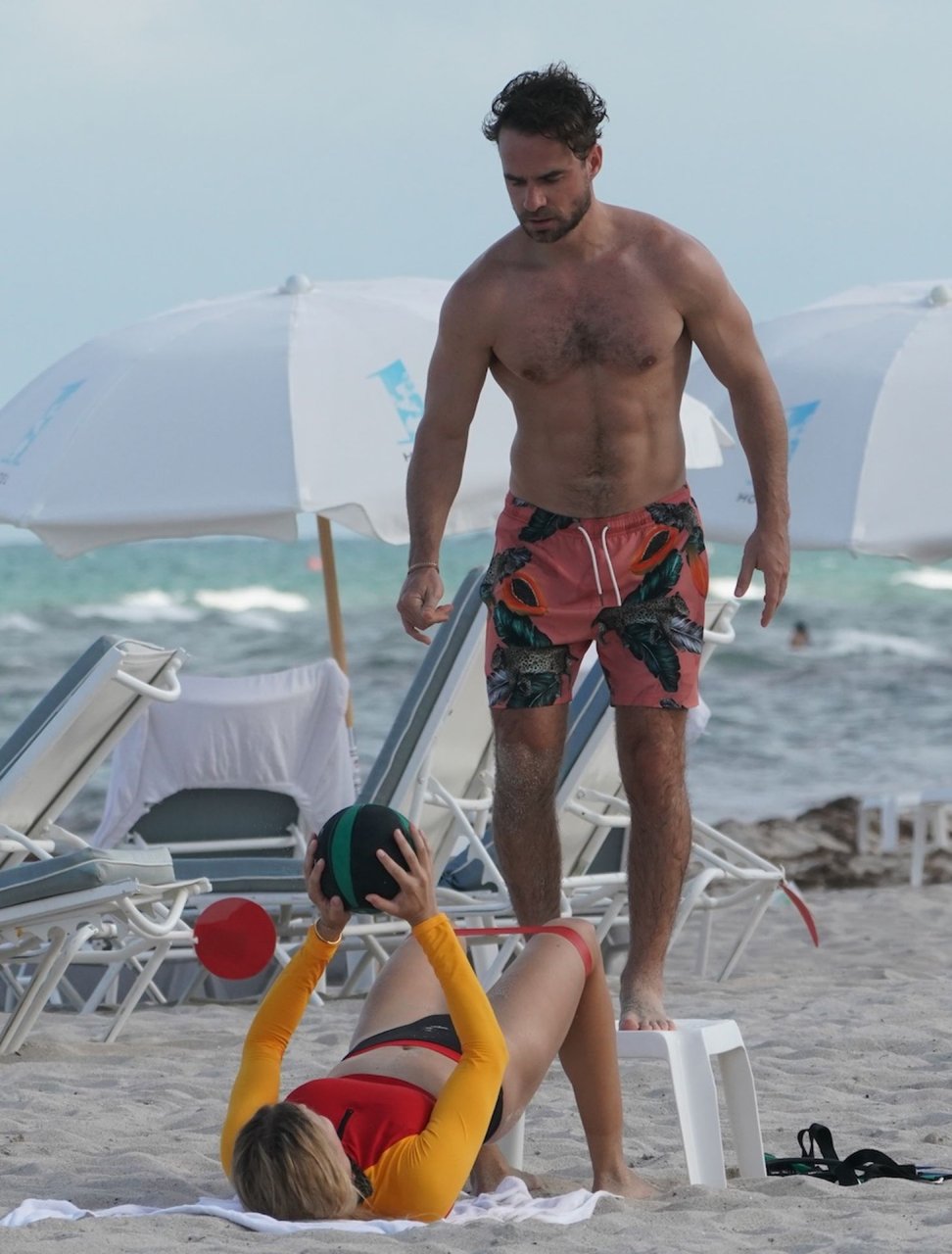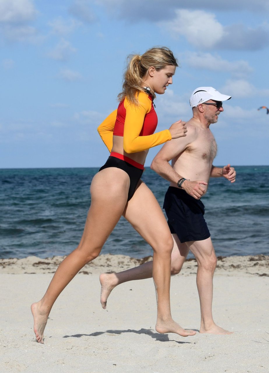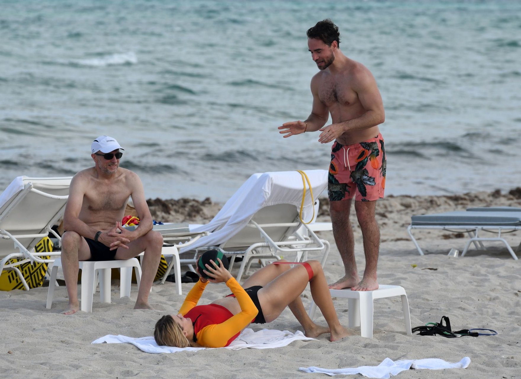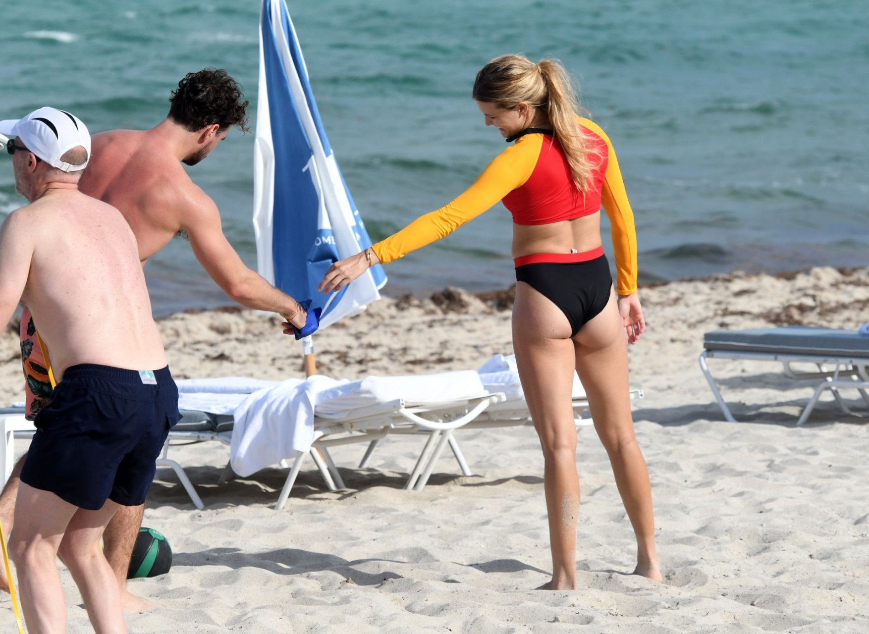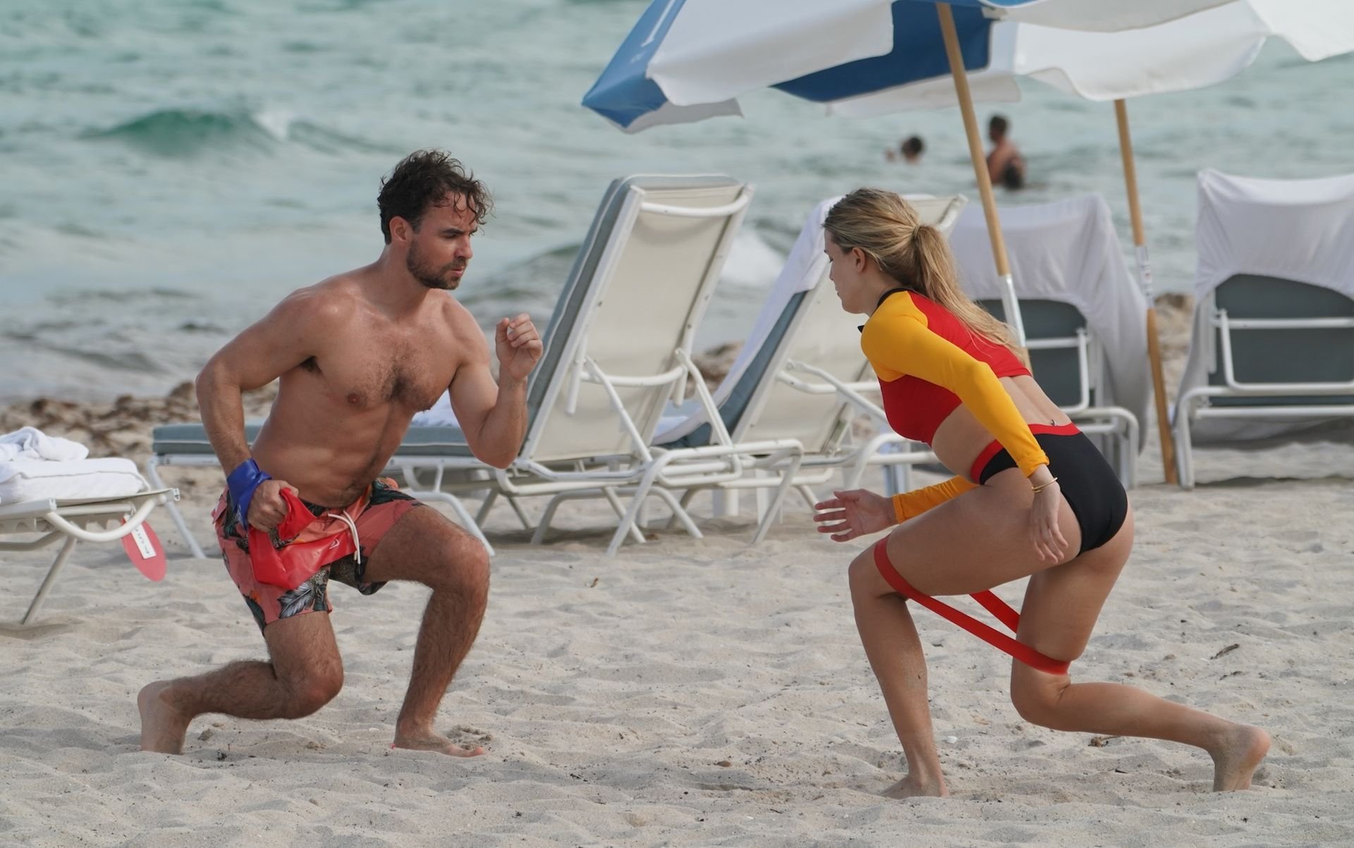 Eugenie Bouchard viene messa alla prova dal suo aitante personal trainer mentre fa un allenamento intenso sulla spiaggia con suo padre Mike – Miami, 18/05/2019. La tennista canadese indossava un top bikini a maniche lunghe di colore acceso e slip bikini abbinati, mostrando la sua incredibile figura mentre eseguiva un allenamento vario con bande di resistenza e una palla, con suo padre Mike che partecipava all’azione.