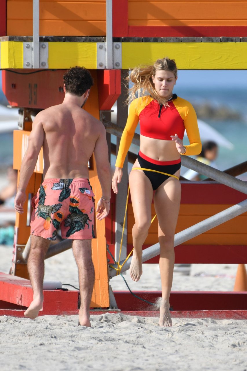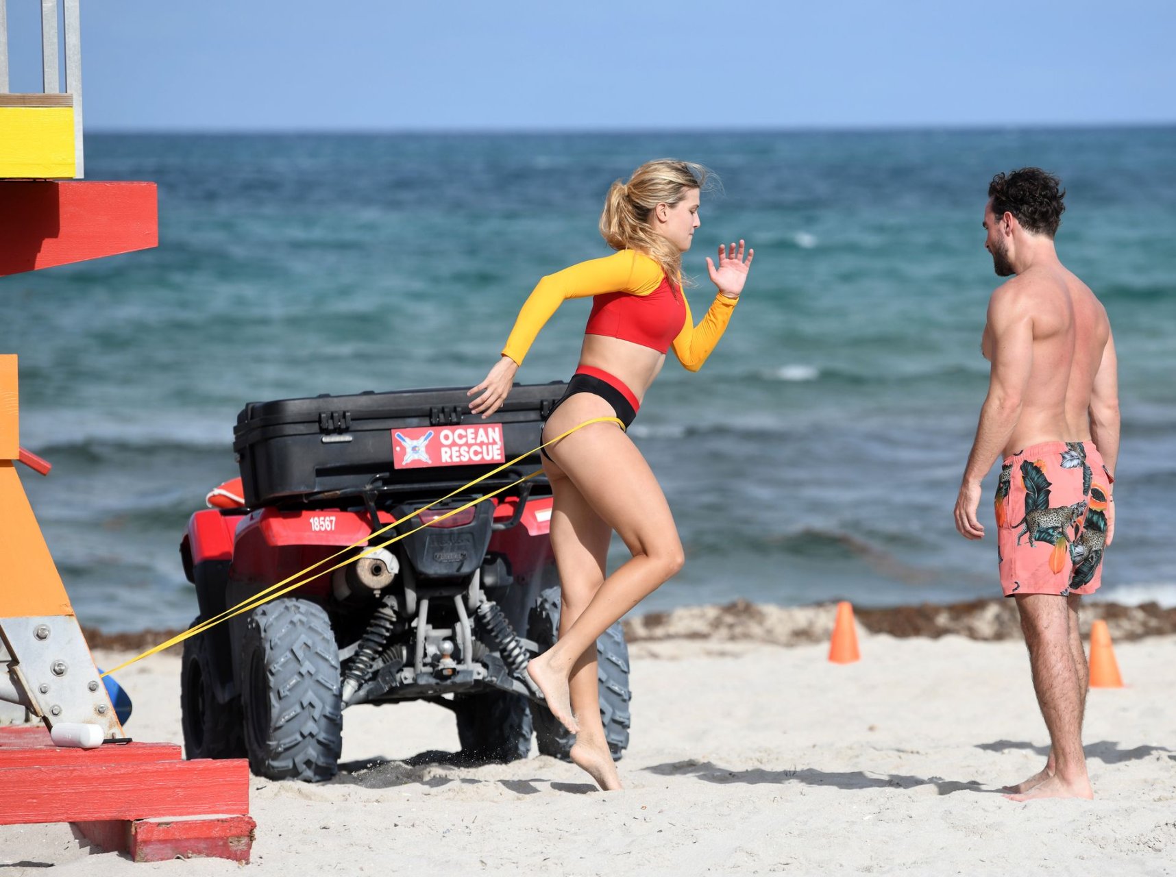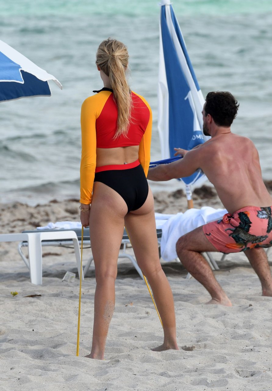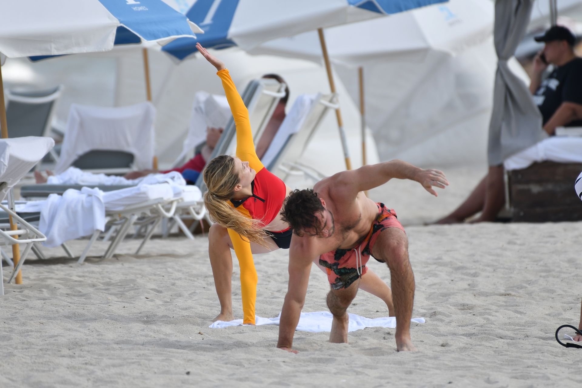 Eugenie Bouchard viene messa alla prova dal suo aitante personal trainer mentre fa un allenamento intenso sulla spiaggia con suo padre Mike – Miami, 18/05/2019. La tennista canadese indossava un top bikini a maniche lunghe di colore acceso e slip bikini abbinati, mostrando la sua incredibile figura mentre eseguiva un allenamento vario con bande di resistenza e una palla, con suo padre Mike che partecipava all’azione.