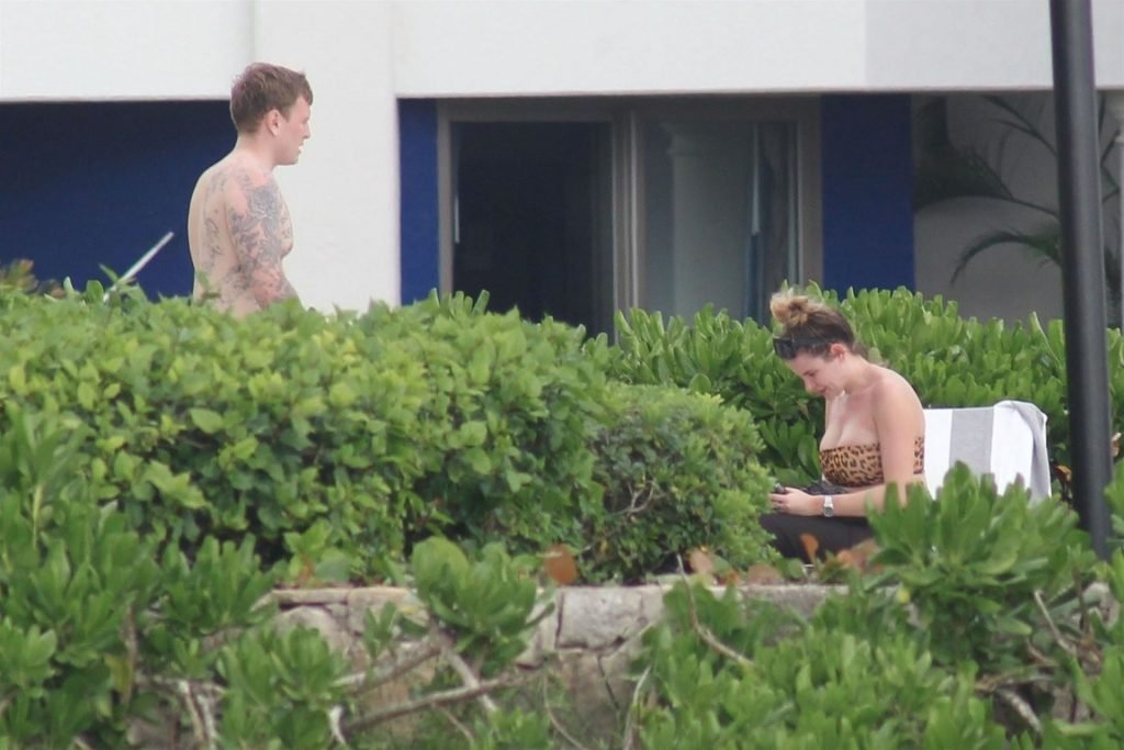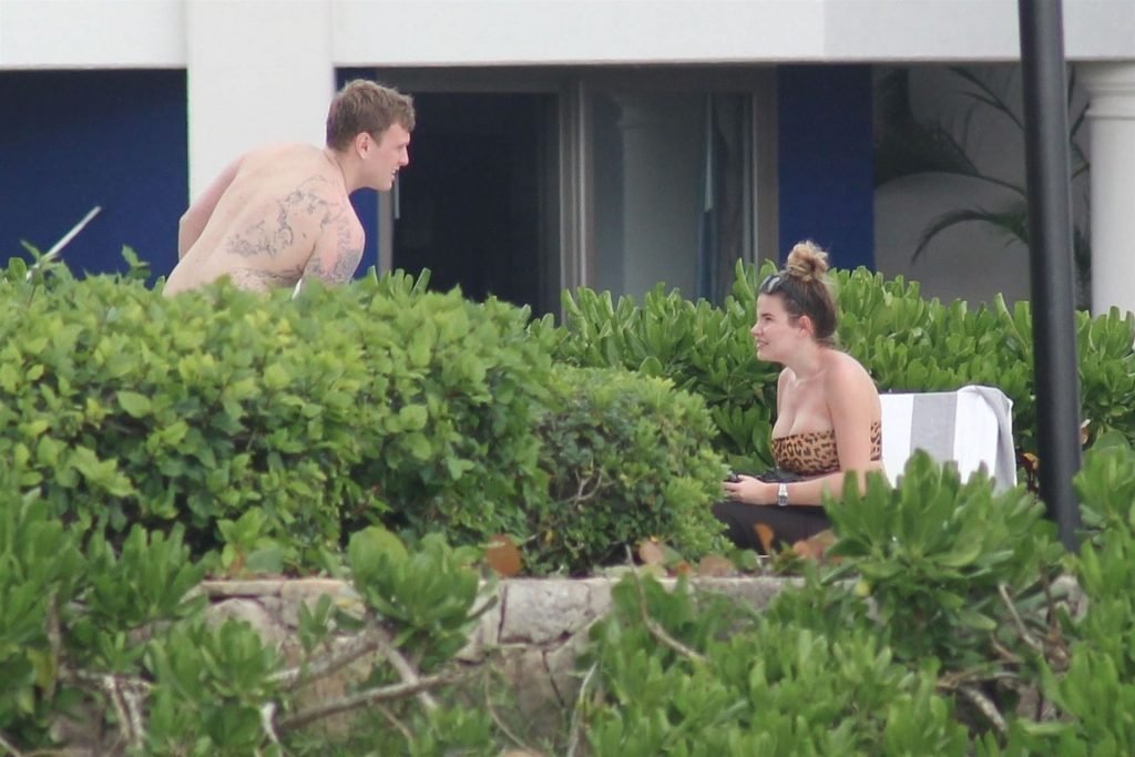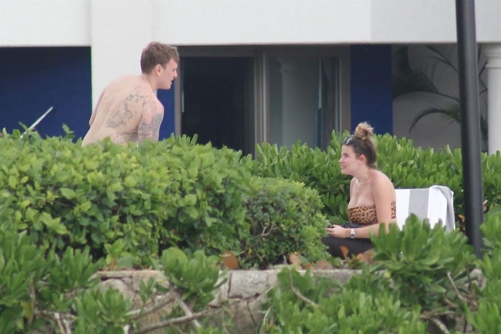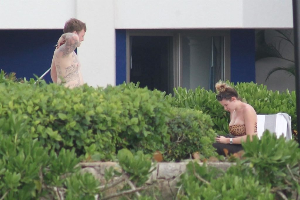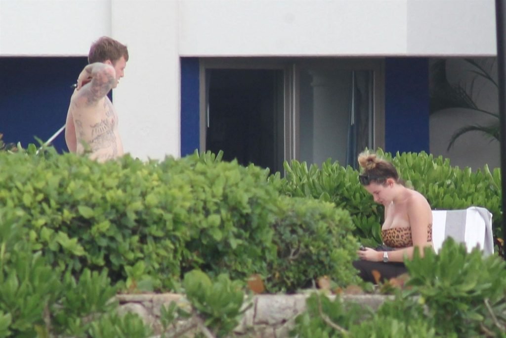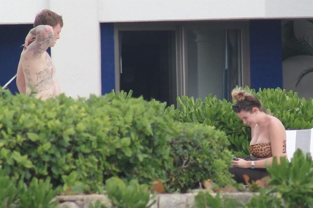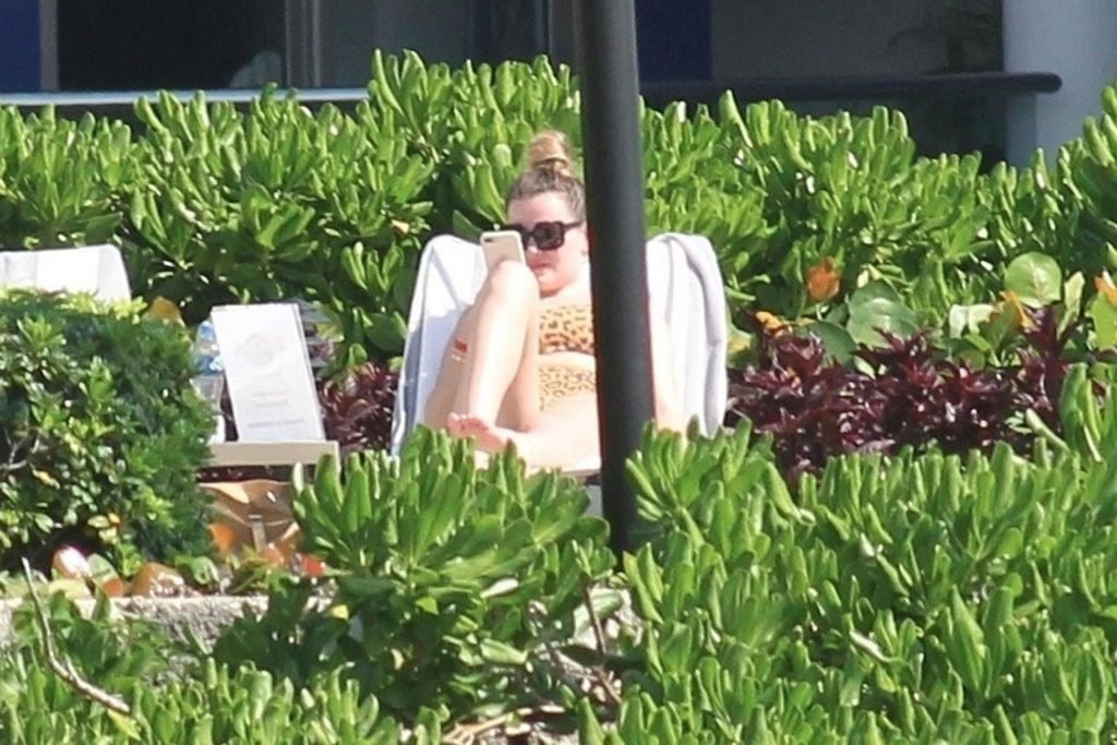 La star di TOWIE Georgia Kousoulou e il suo fidanzato Tommy Mallet trascorrono la giornata prendendo il sole nel loro hotel a Riviera Maya, Messico, 02/05/2019. Georgia indossava un bikini con stampa leopardata mentre si rilassava a bordo piscina.