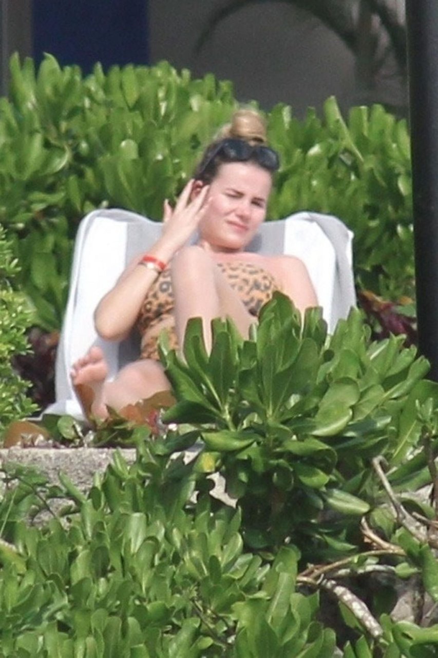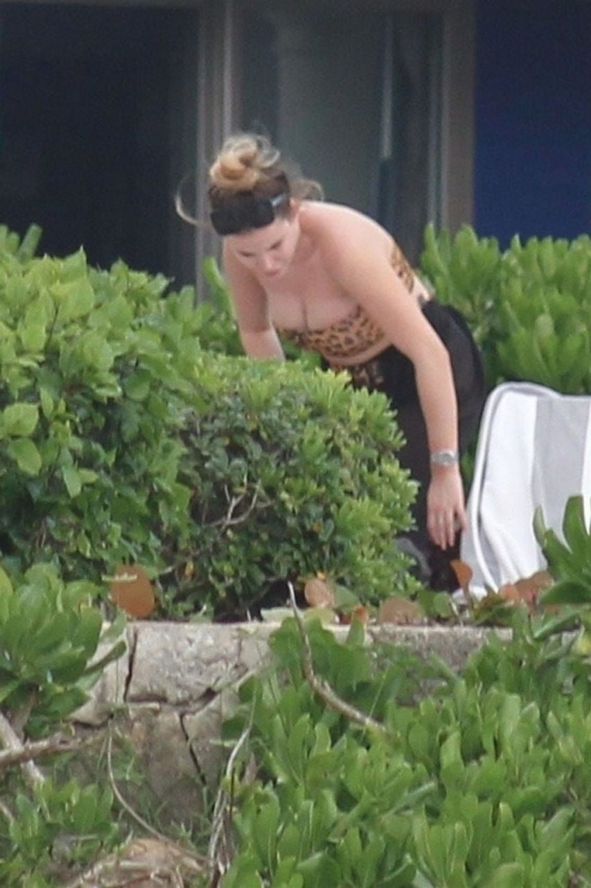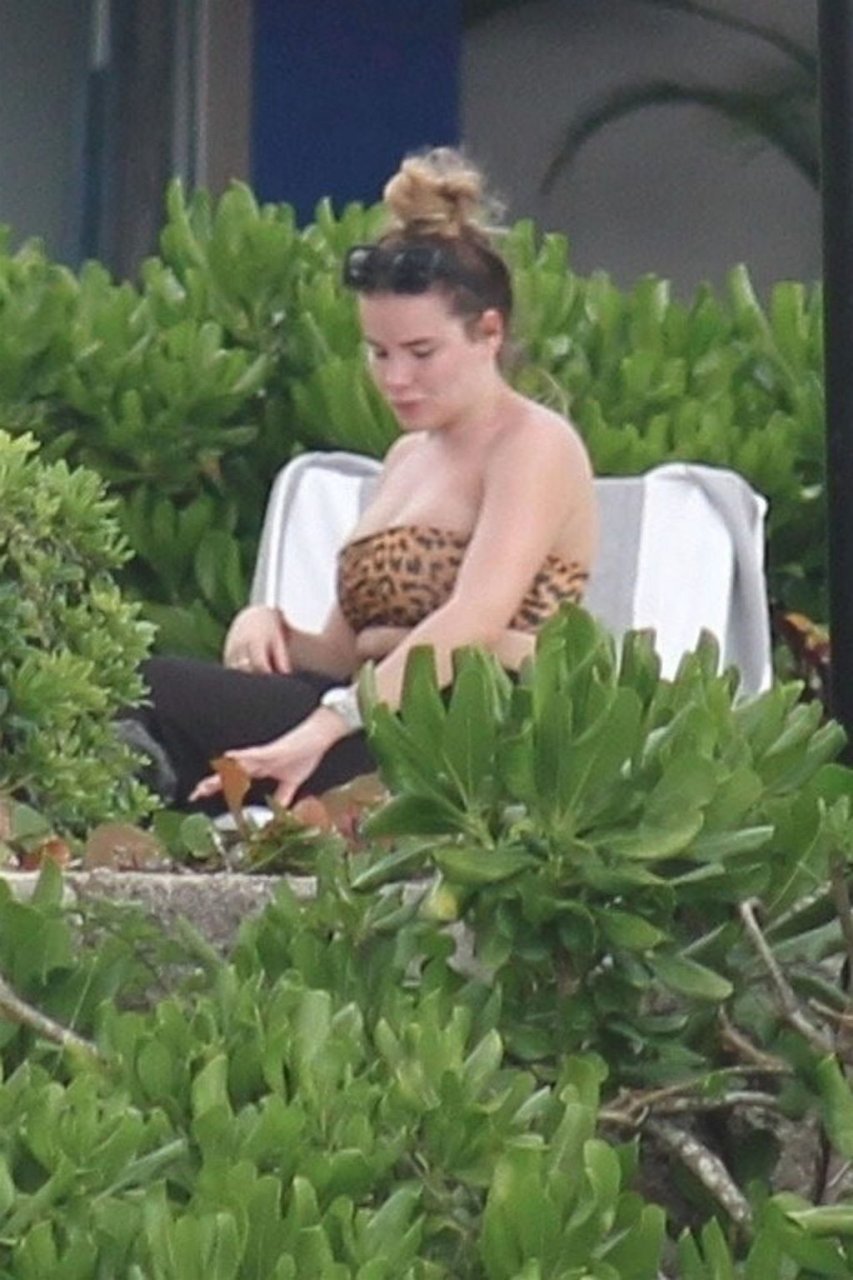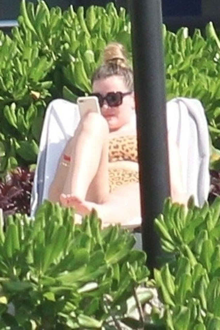La star di TOWIE Georgia Kousoulou e il suo fidanzato Tommy Mallet trascorrono la giornata prendendo il sole nel loro hotel a Riviera Maya, Messico, 02/05/2019. Georgia indossava un bikini con stampa leopardata mentre si rilassava a bordo piscina.