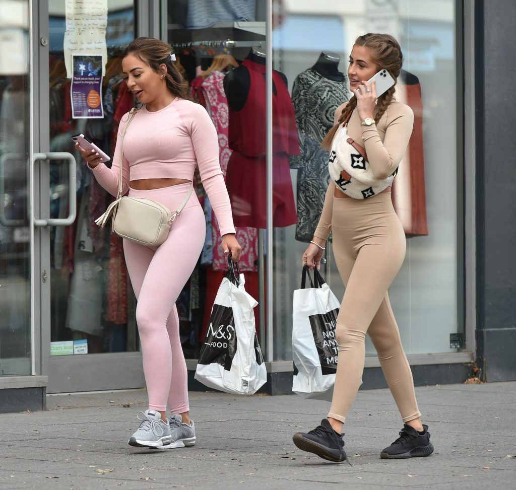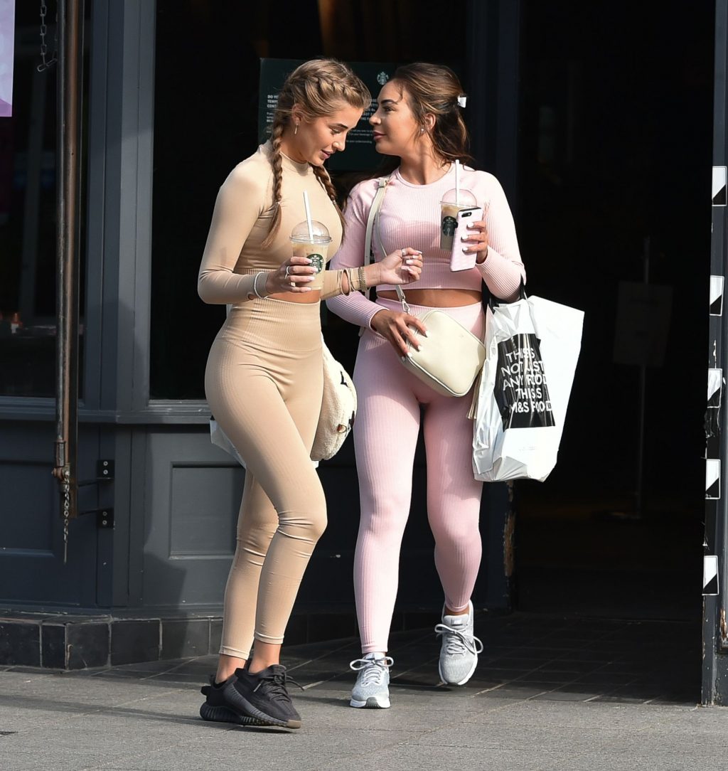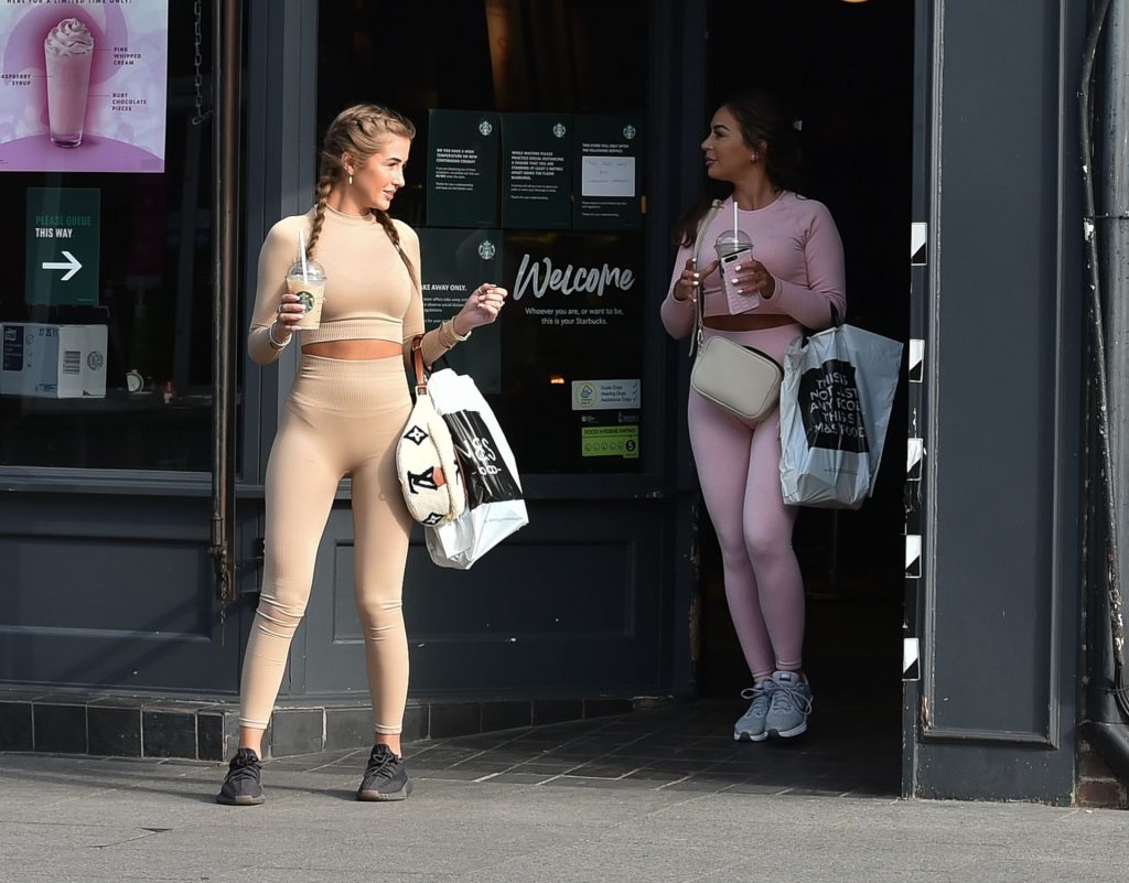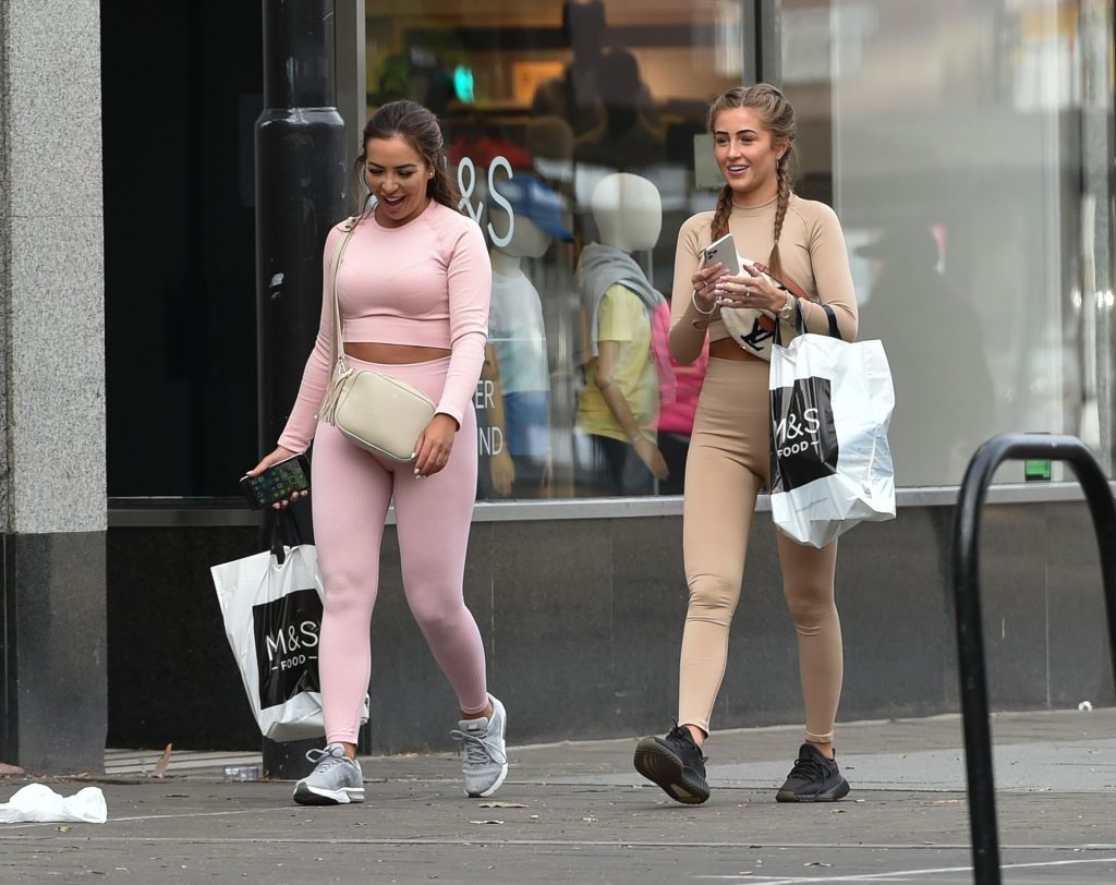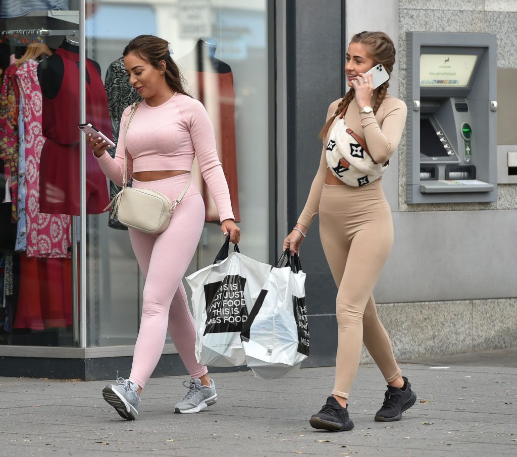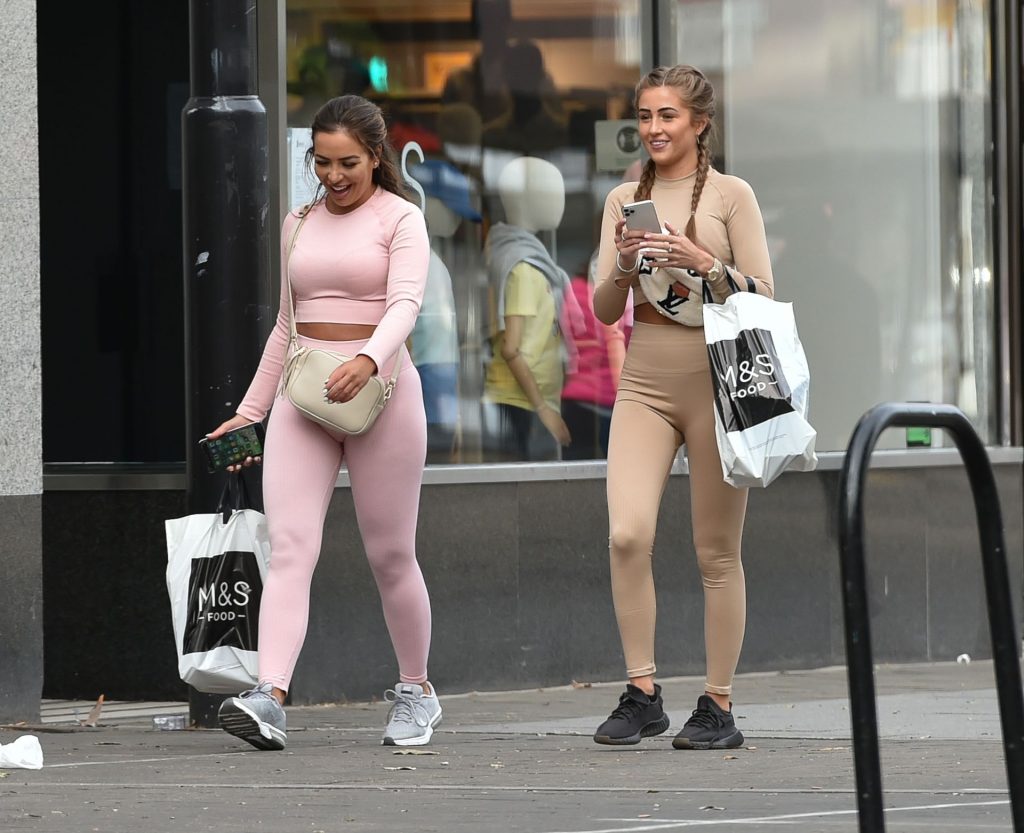 Sexy star di “Love Island” Georgia Steel ed Elma Pazar sono state viste fare la spesa da M&S seguite da un caffè da Starbucks a Brentwood, Essex, 06/09/2020