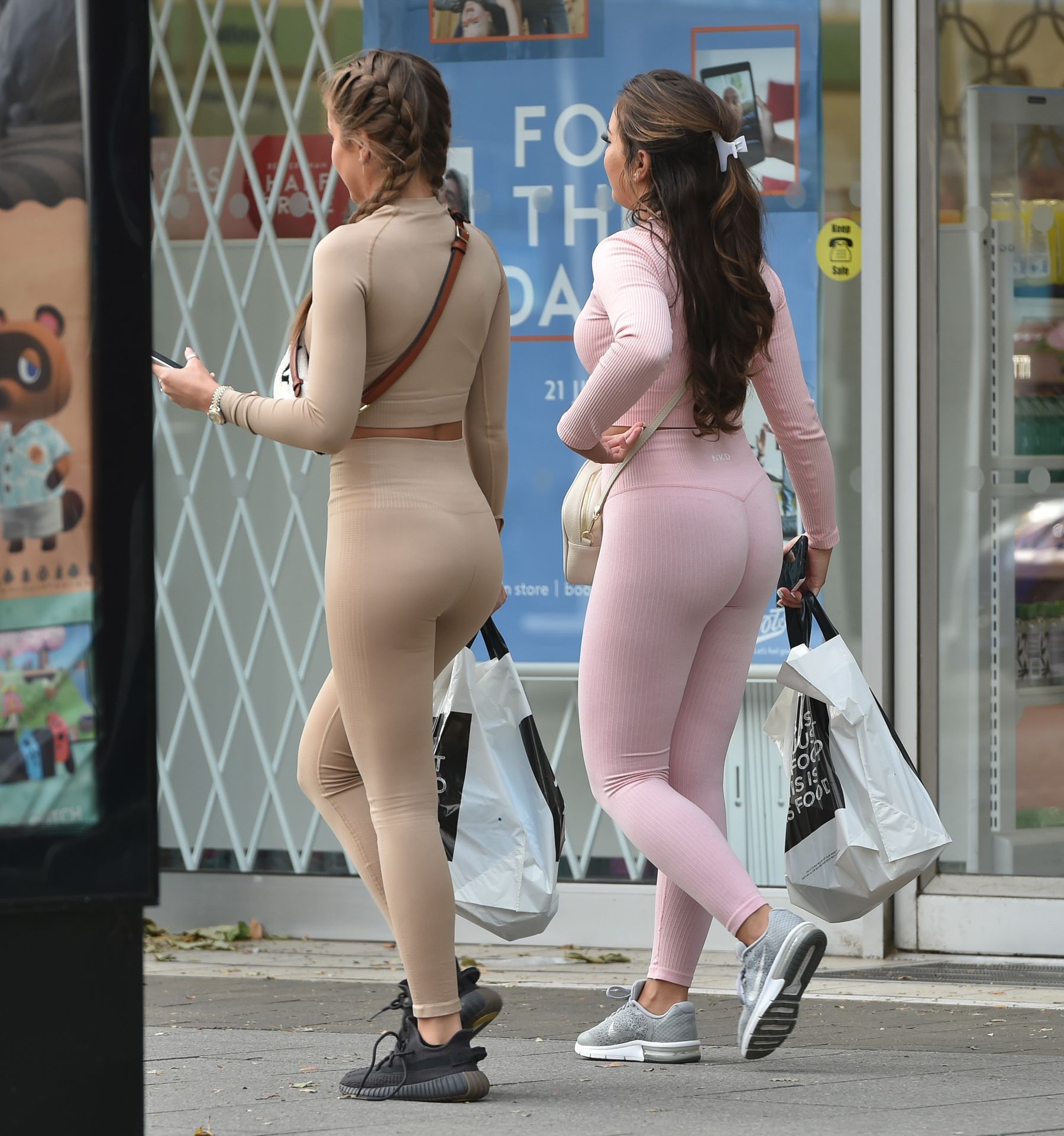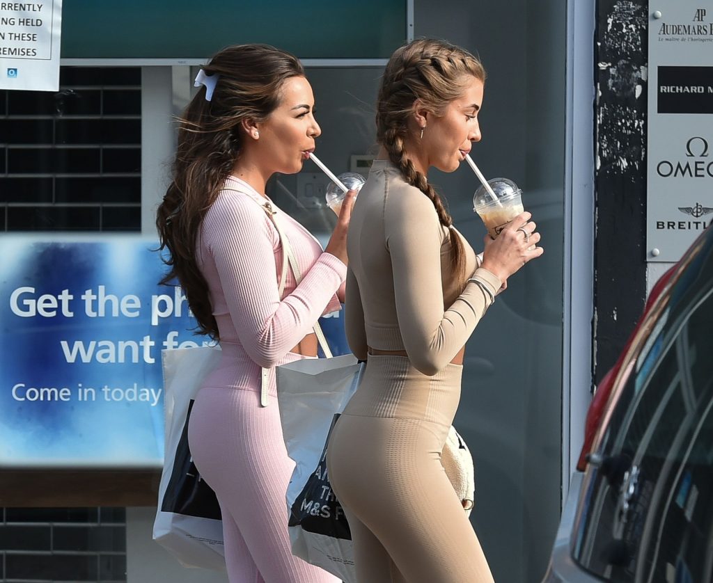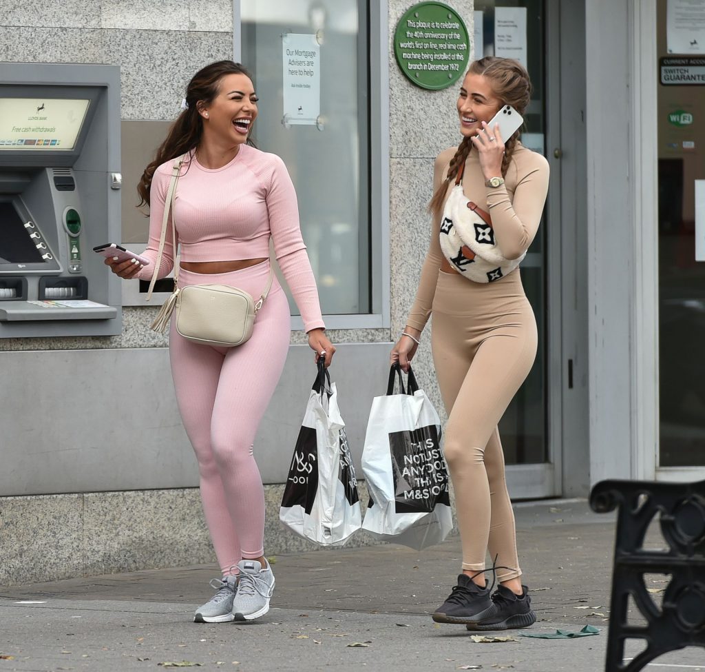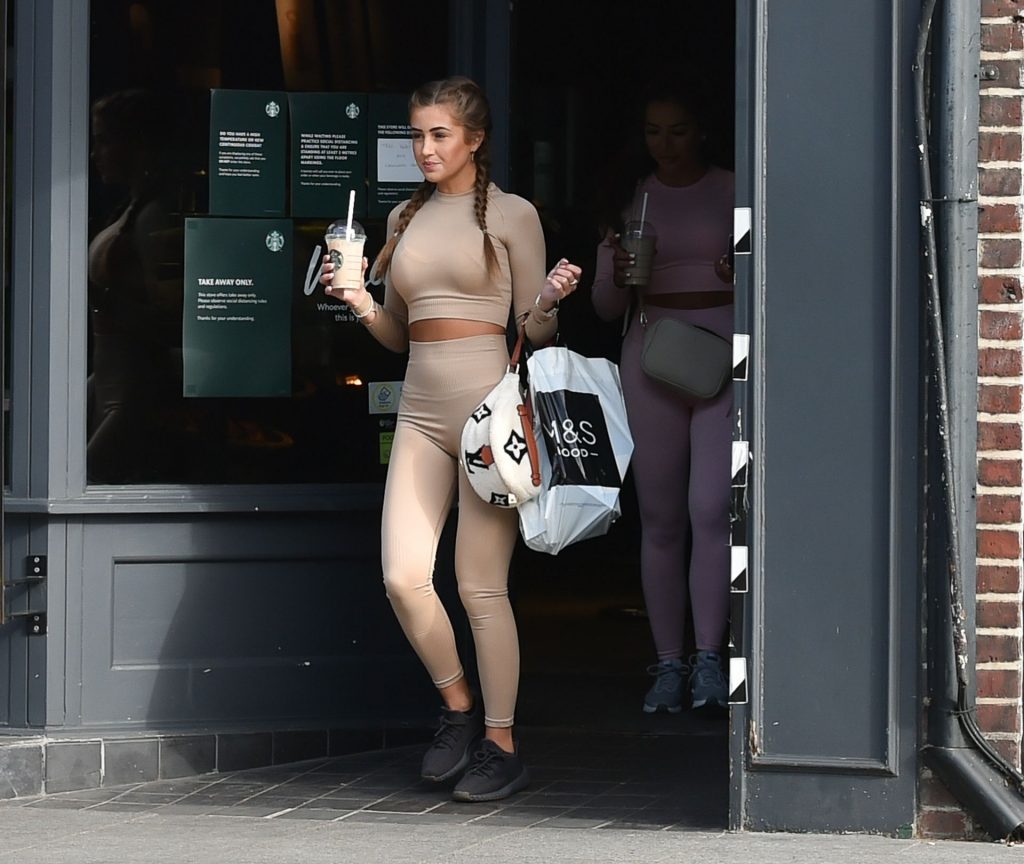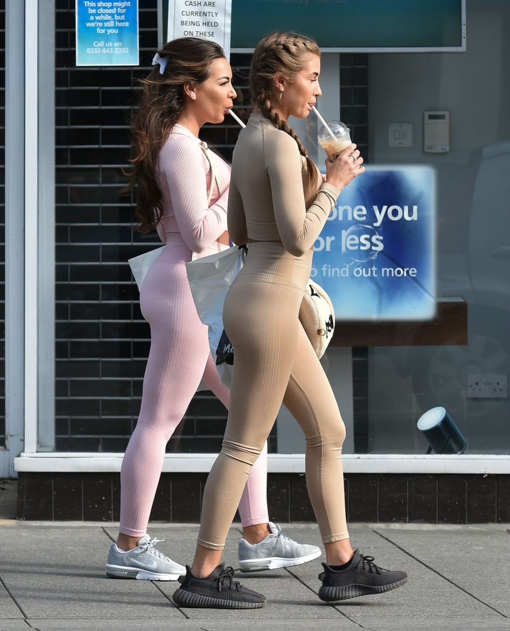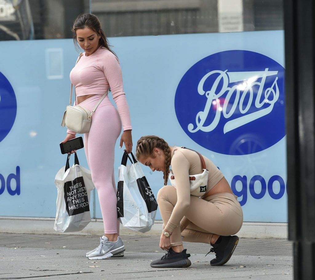 Sexy star di “Love Island” Georgia Steel ed Elma Pazar sono state viste fare la spesa da M&S seguite da un caffè da Starbucks a Brentwood, Essex, 06/09/2020