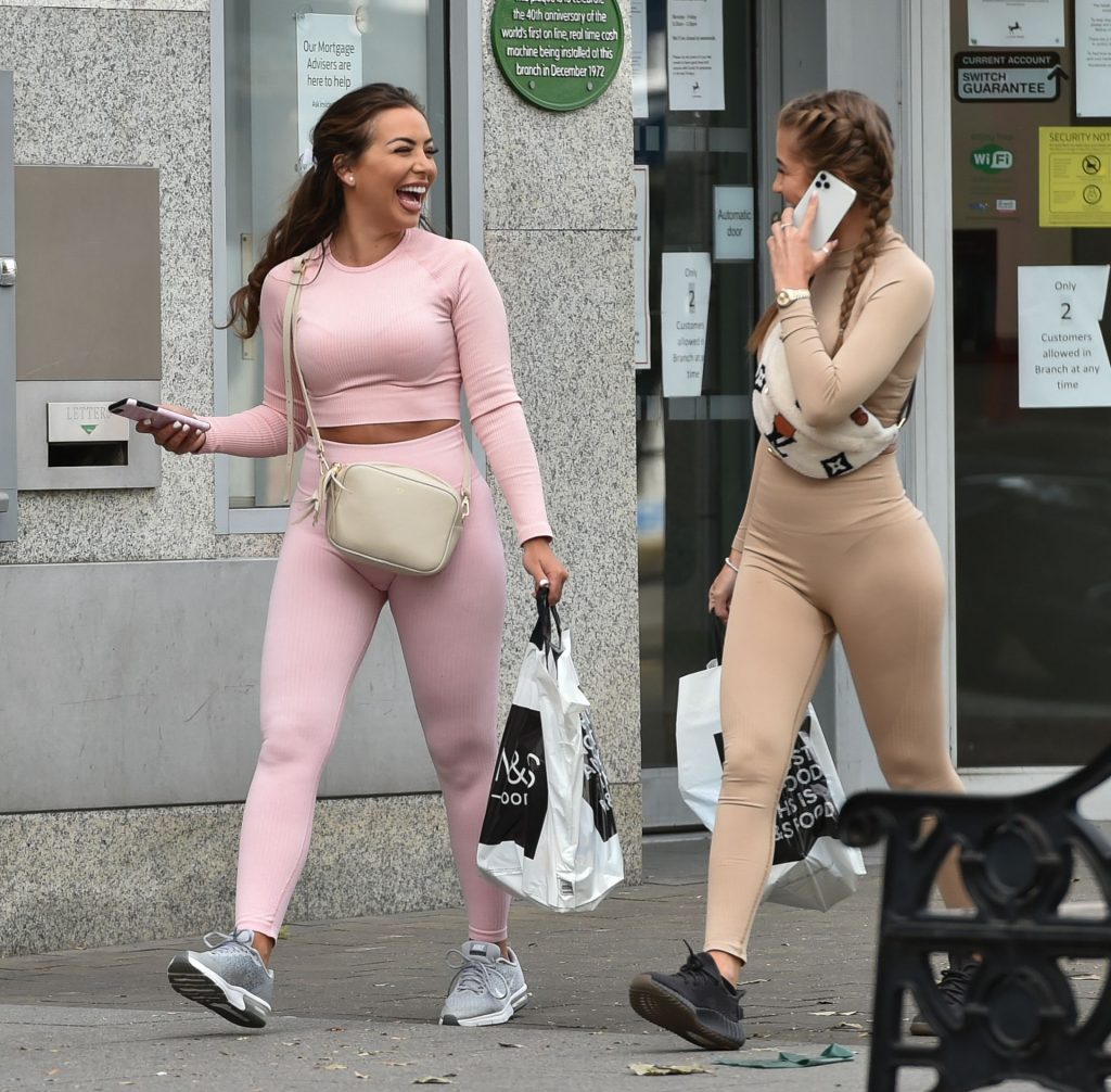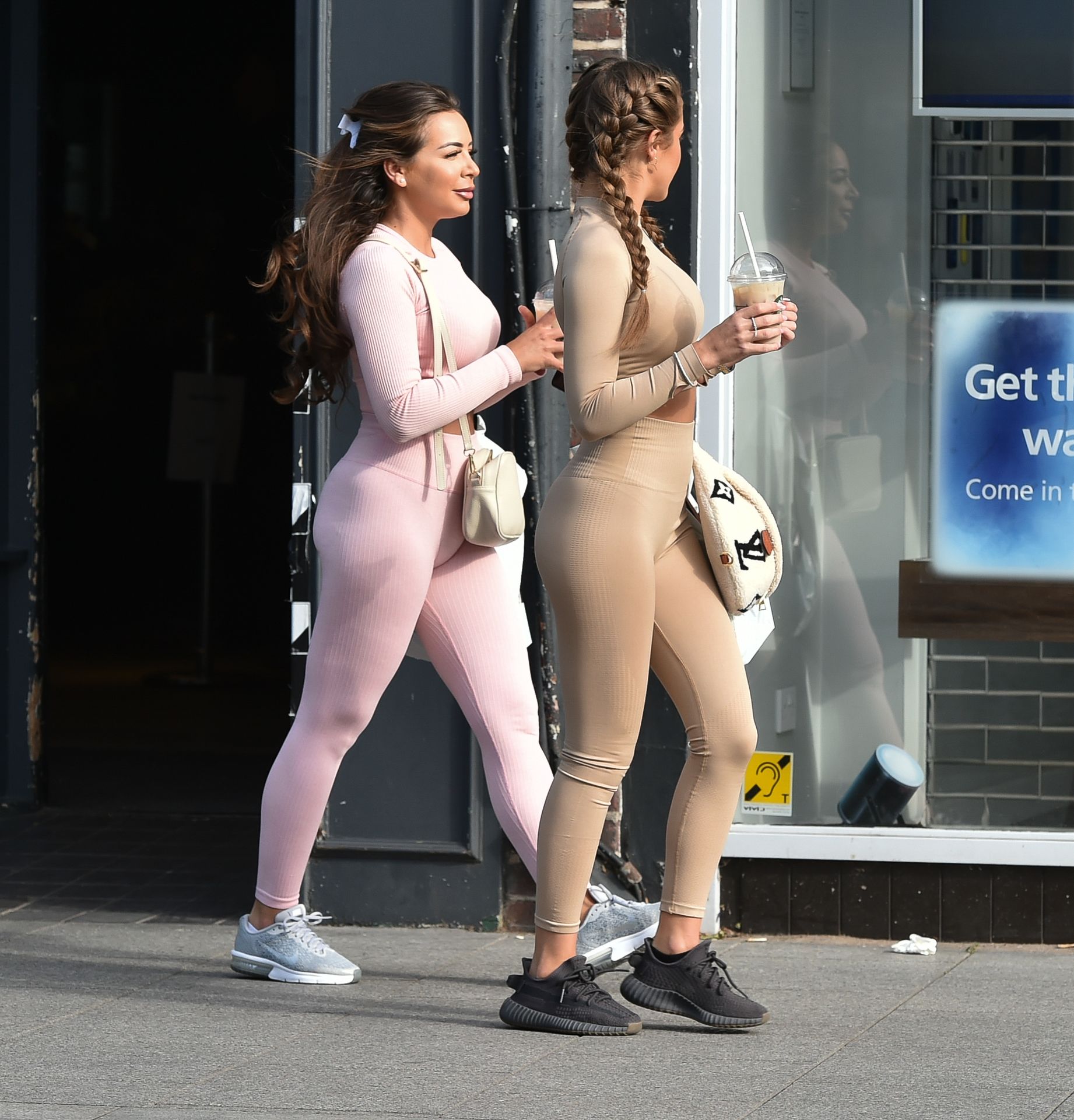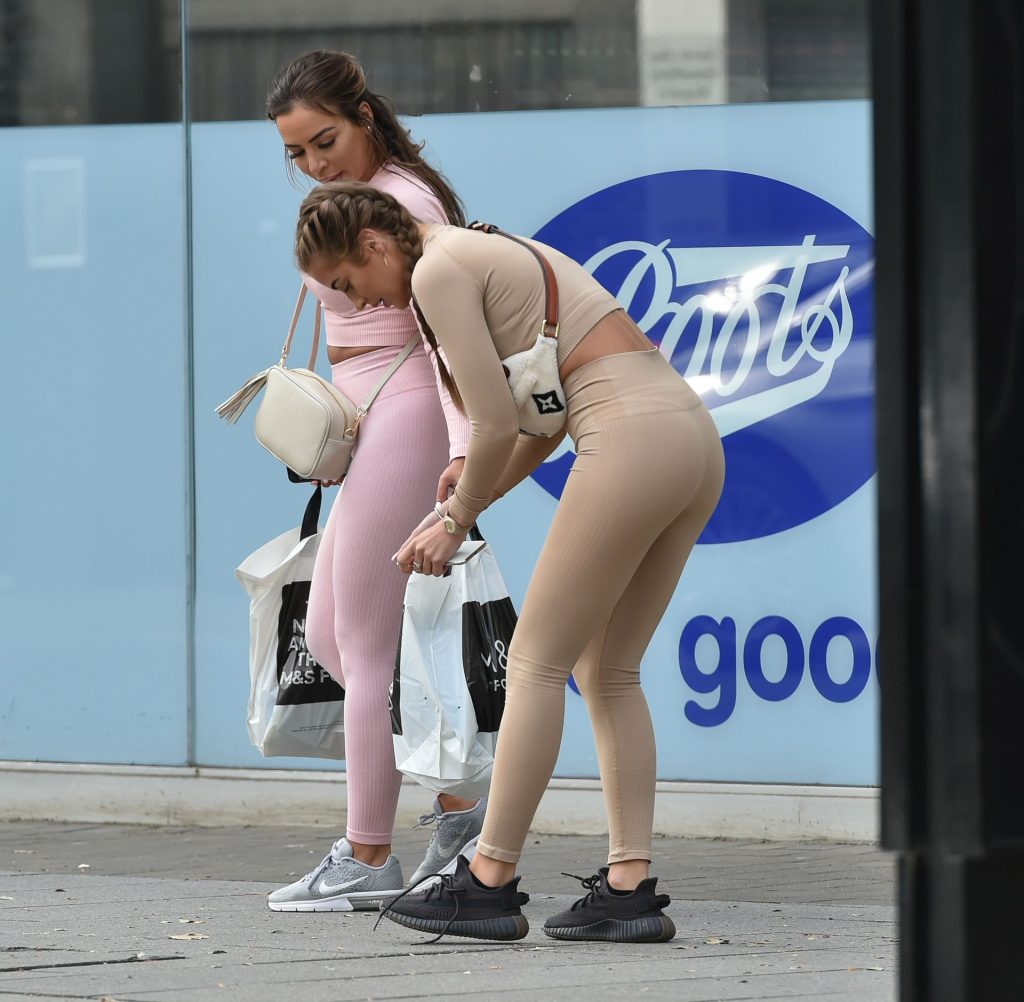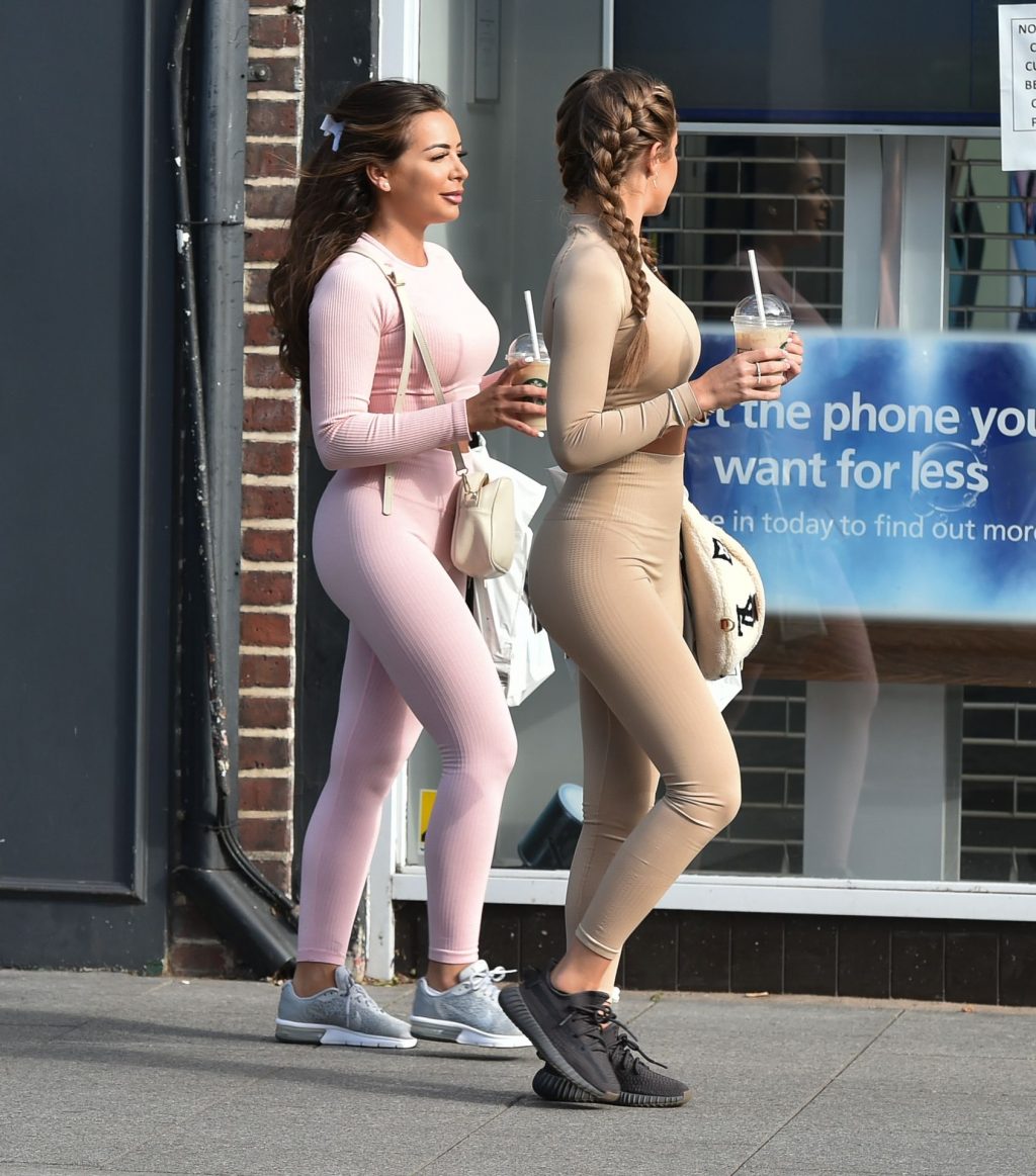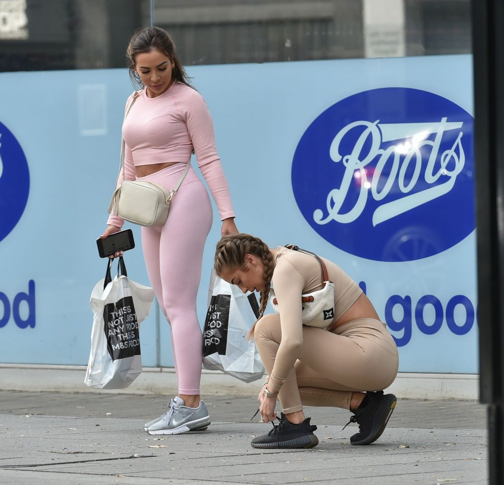 Sexy star di “Love Island” Georgia Steel ed Elma Pazar sono state viste fare la spesa da M&S seguite da un caffè da Starbucks a Brentwood, Essex, 06/09/2020