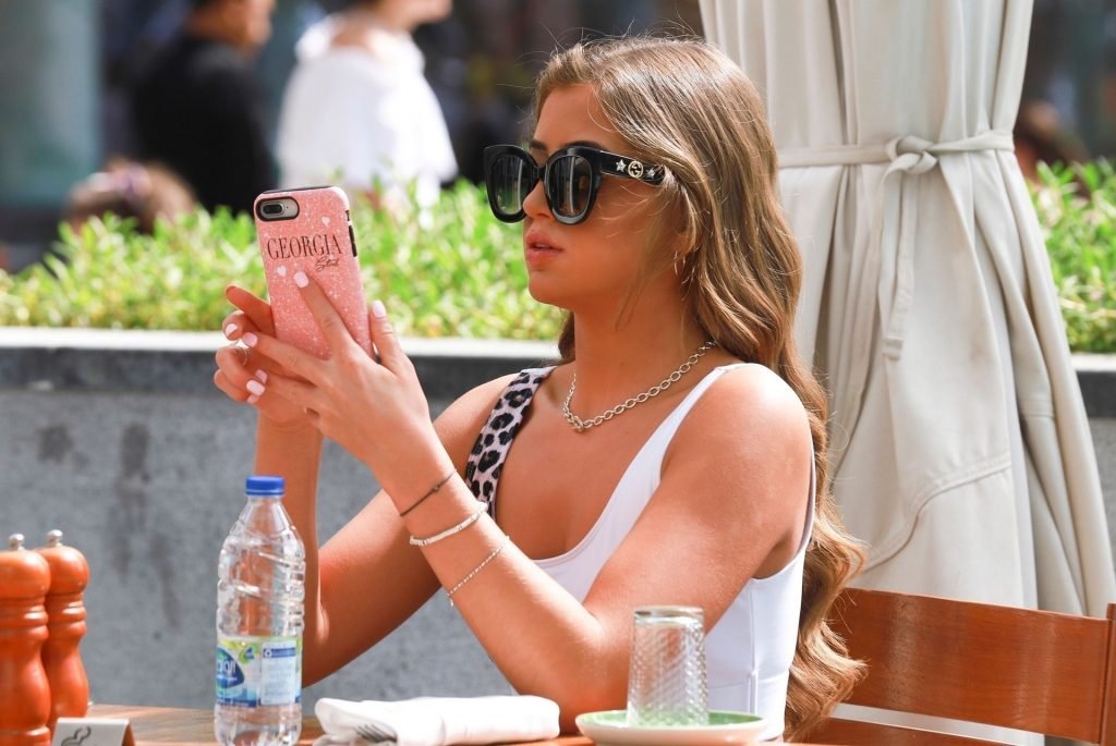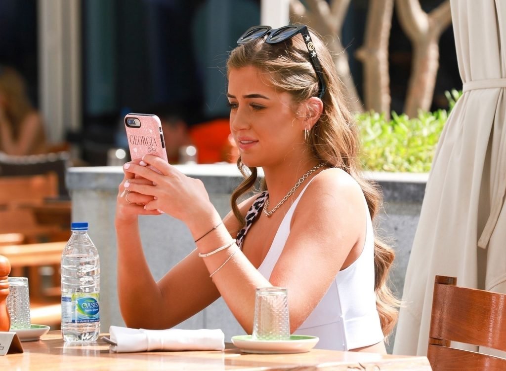La star della TV reality Georgia Steel è stata vista con un bikini metà e metà mentre si rinfrescava a bordo piscina a Dubai presso l’hotel FIVE Palm, 27/04/2019.