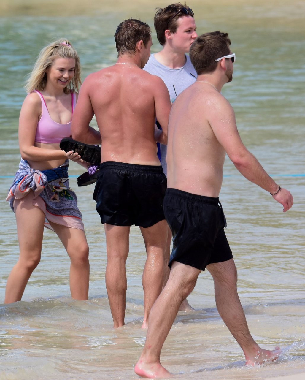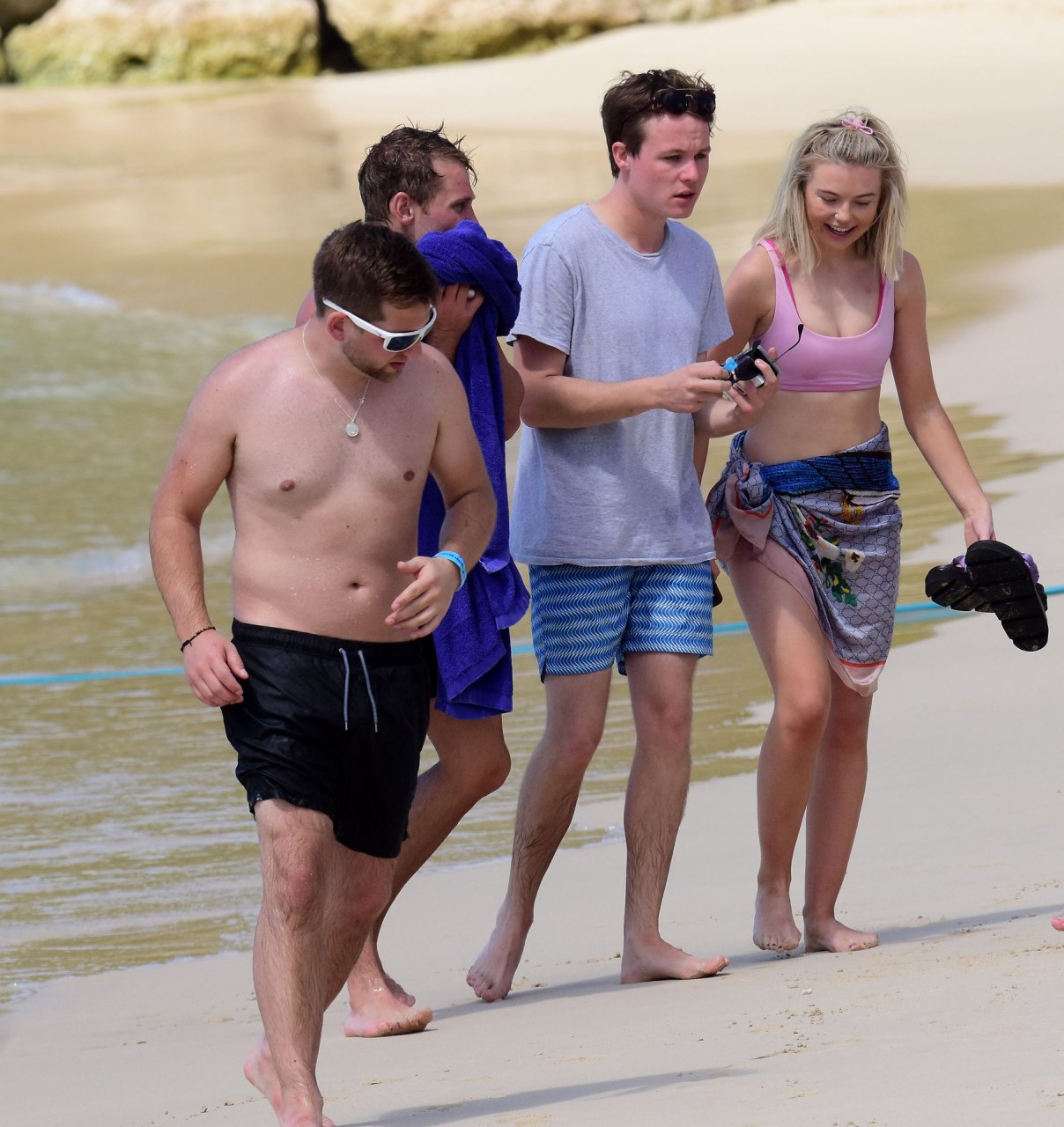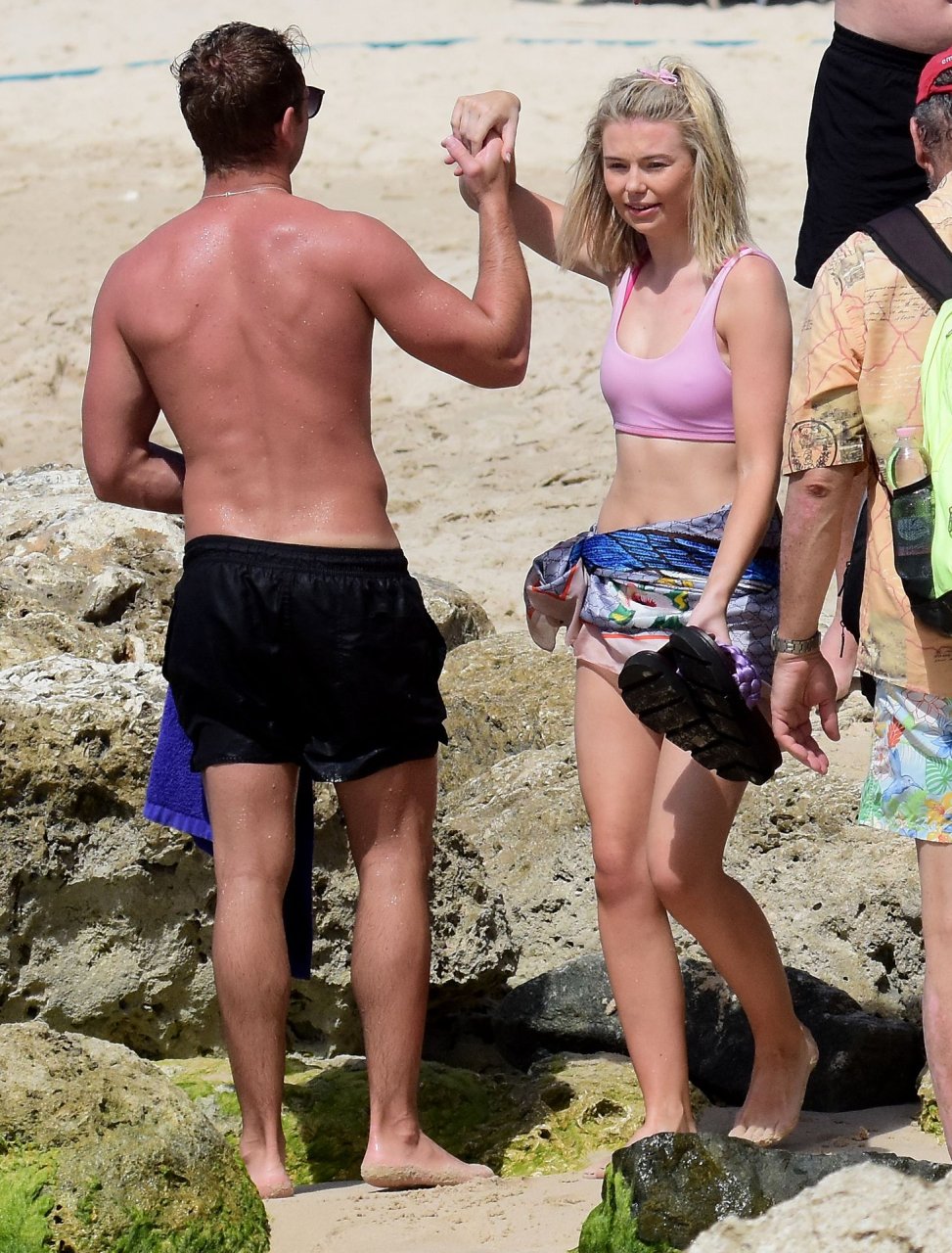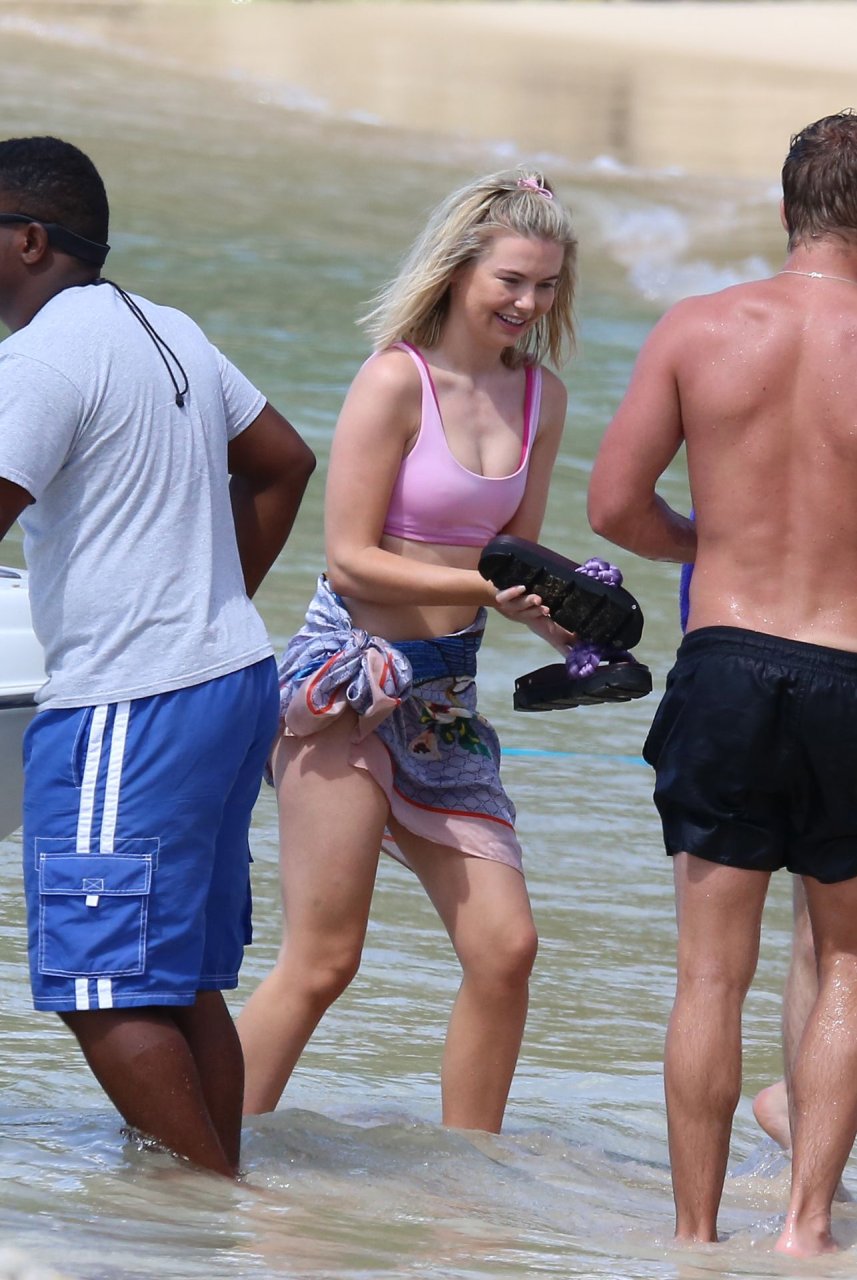 Georgia Toffolo (24) è stata vista mentre si godeva il sole in un bikini rosa e ha posato felicemente con un fan per delle foto sulla spiaggia a Barbados, 01/08/2019.