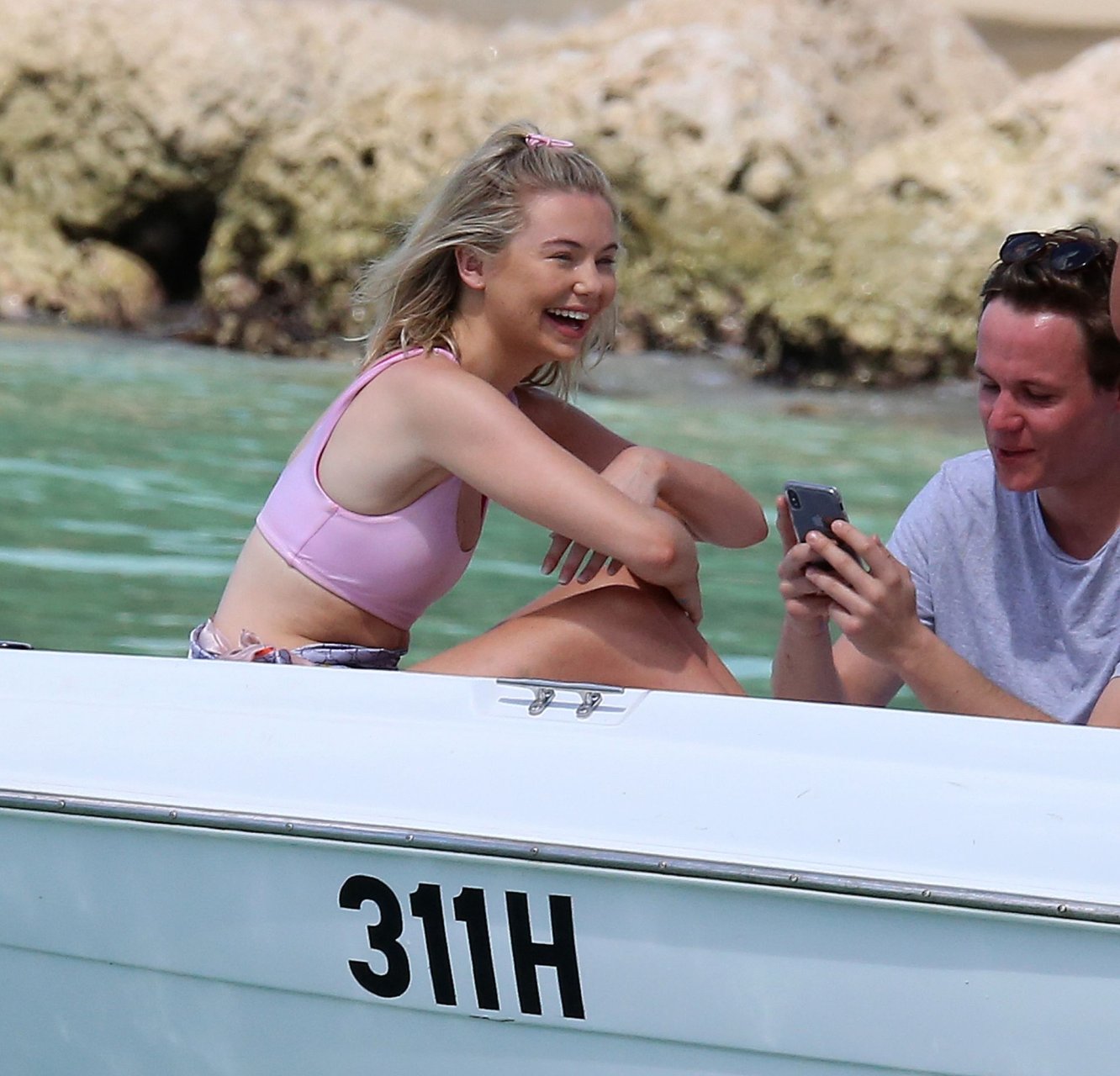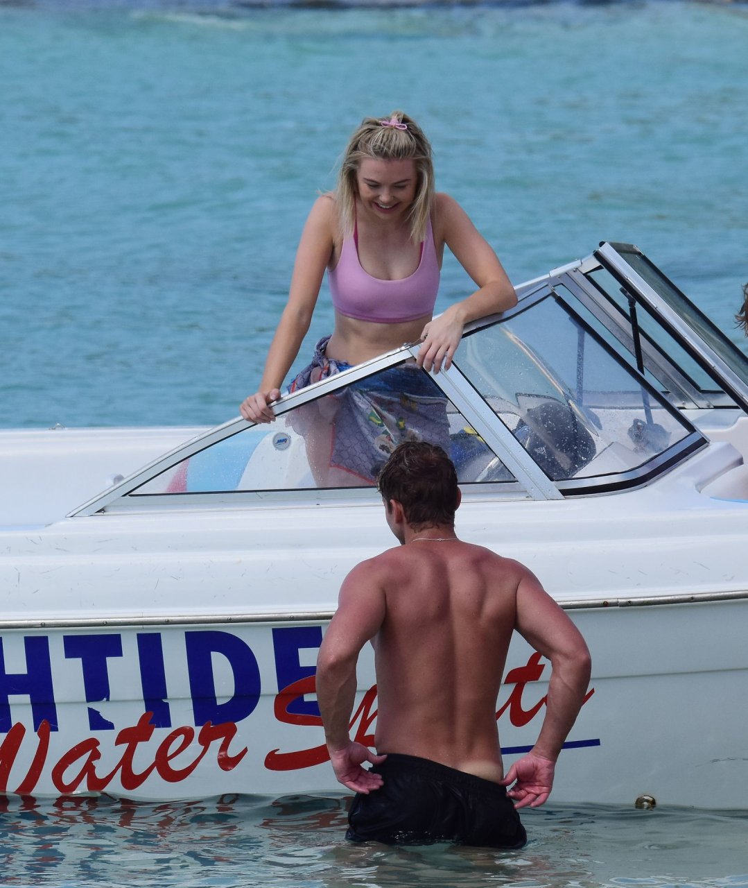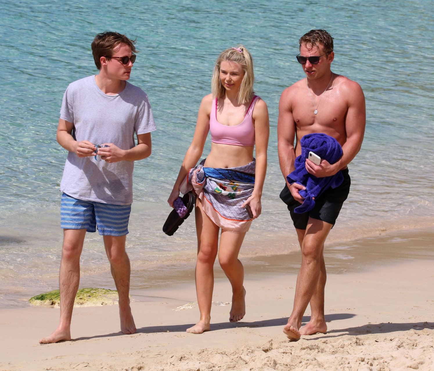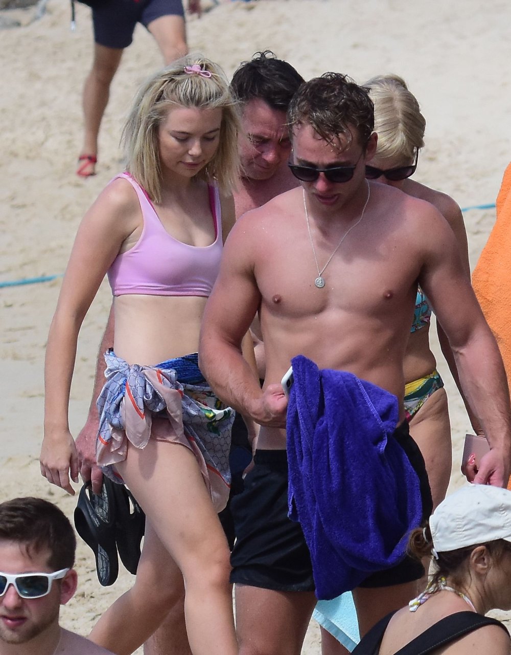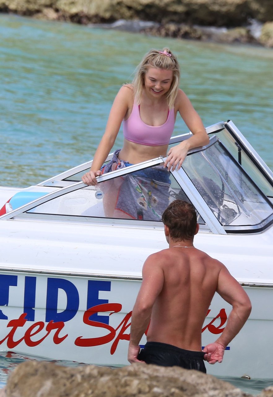 Georgia Toffolo (24) è stata vista mentre si godeva il sole in un bikini rosa e ha posato felicemente con un fan per delle foto sulla spiaggia a Barbados, 01/08/2019.