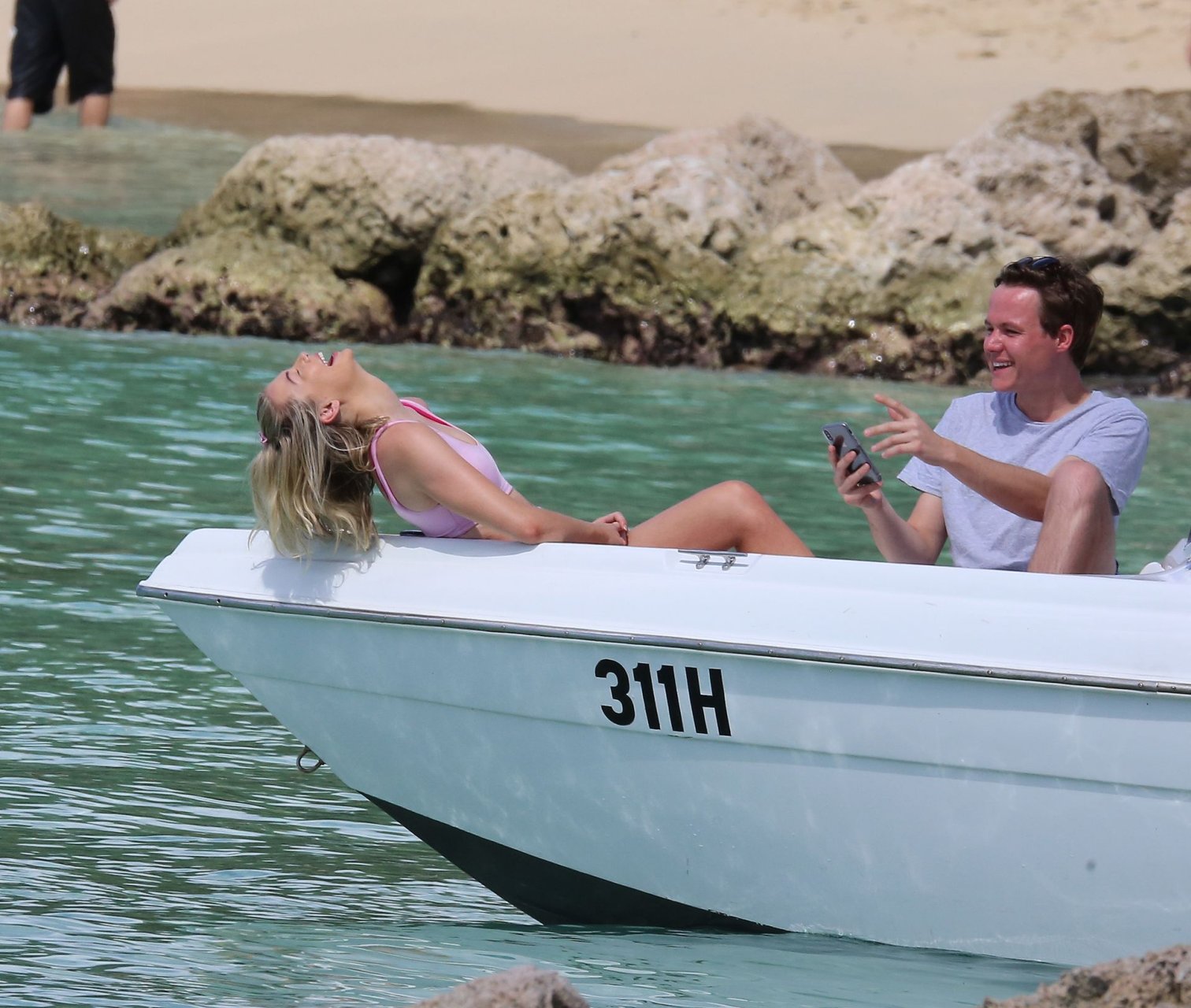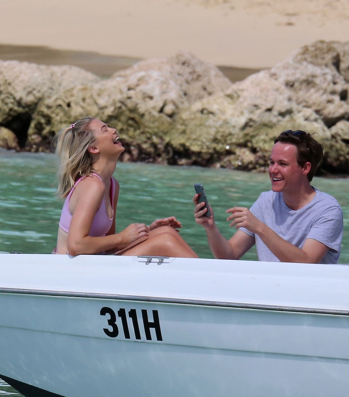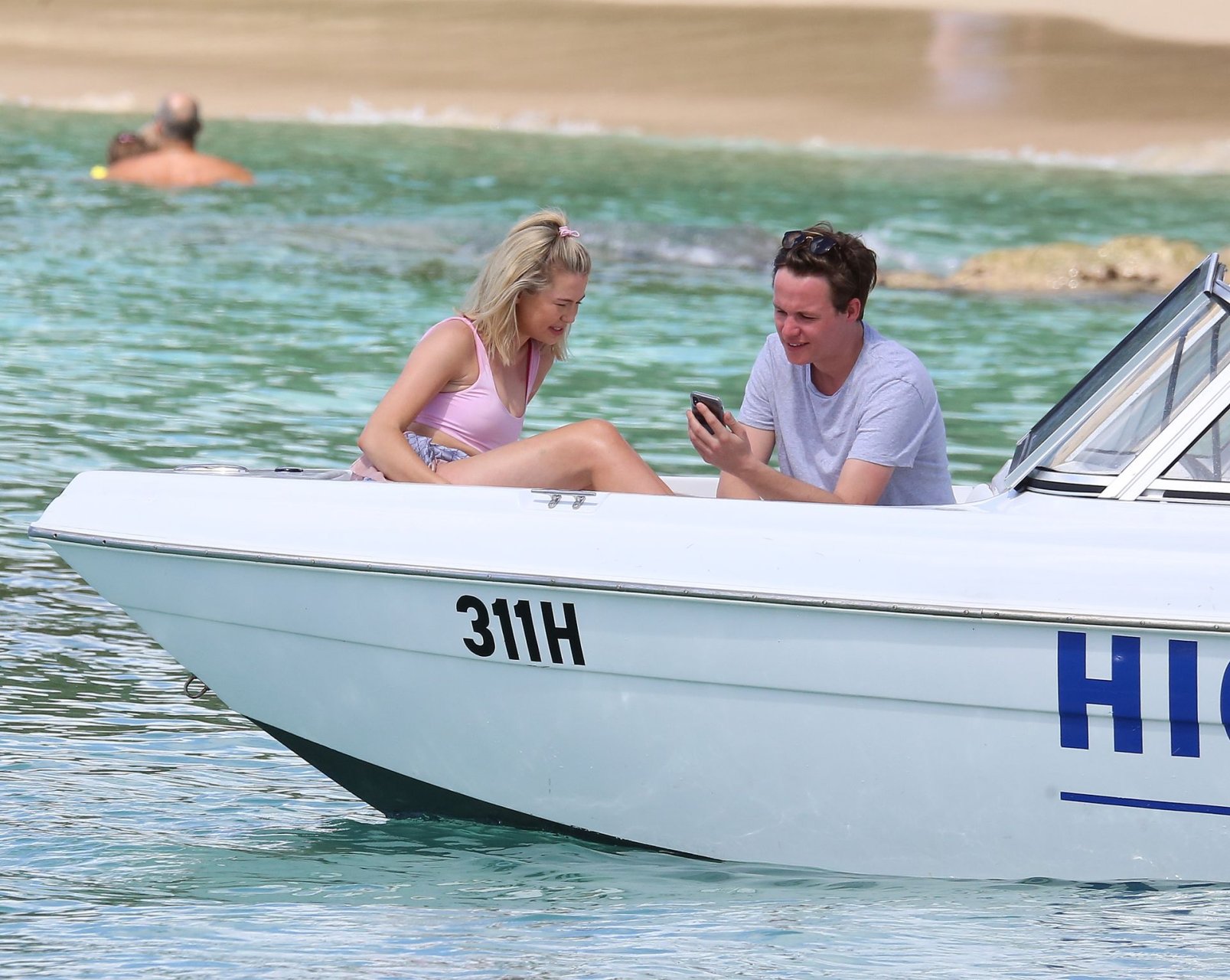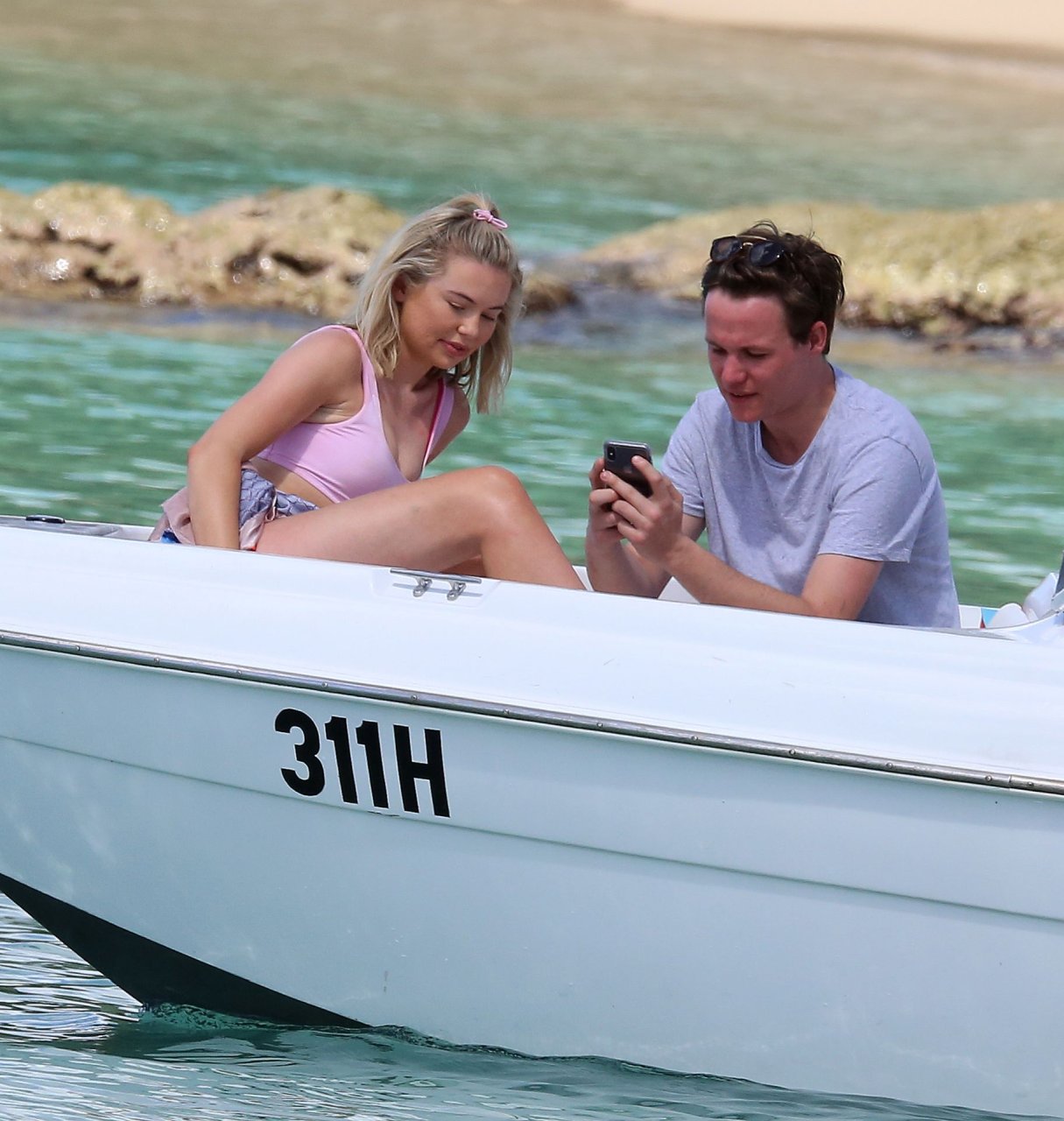 Georgia Toffolo (24) è stata vista mentre si godeva il sole in un bikini rosa e ha posato felicemente con un fan per delle foto sulla spiaggia a Barbados, 01/08/2019.