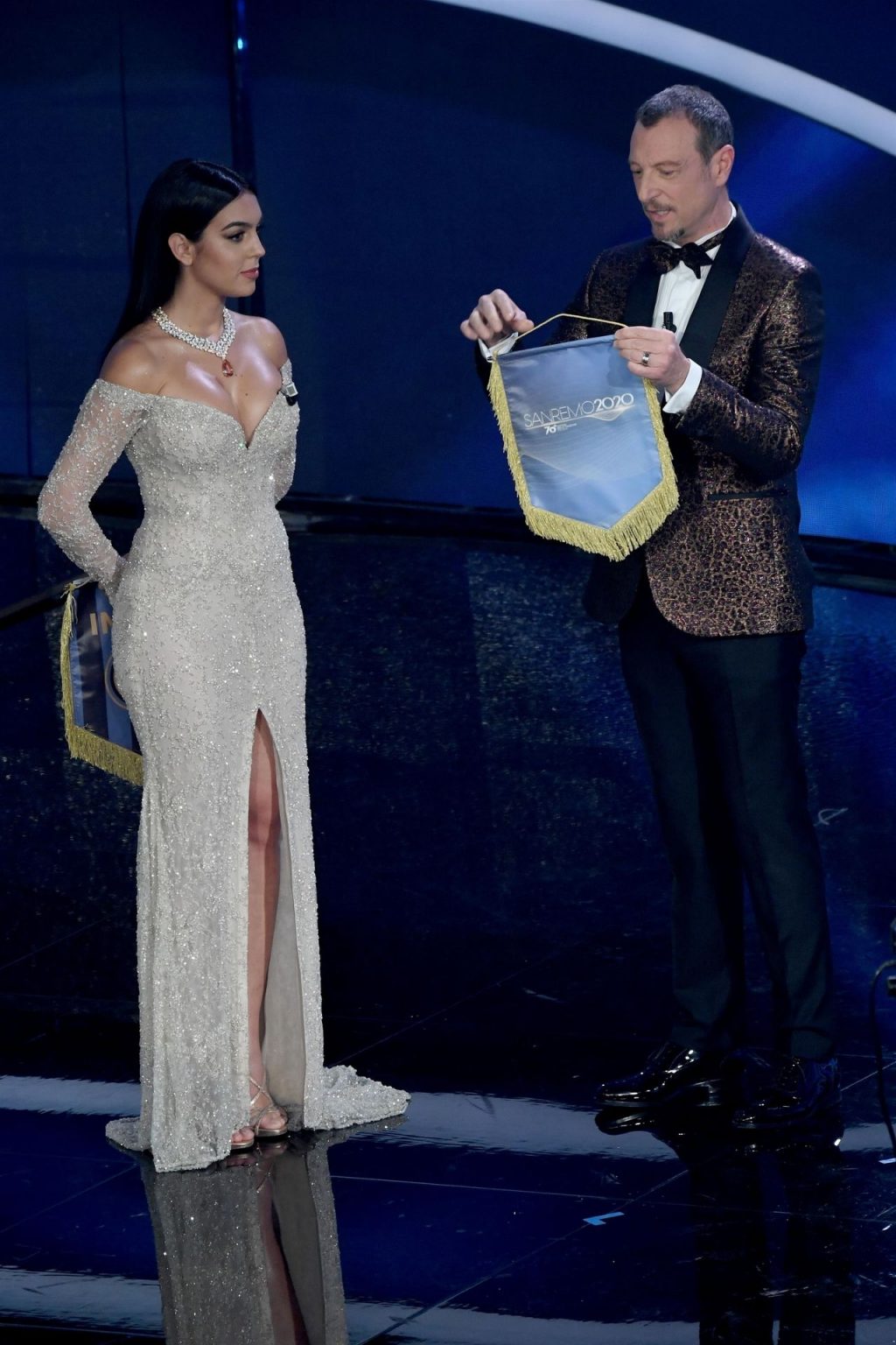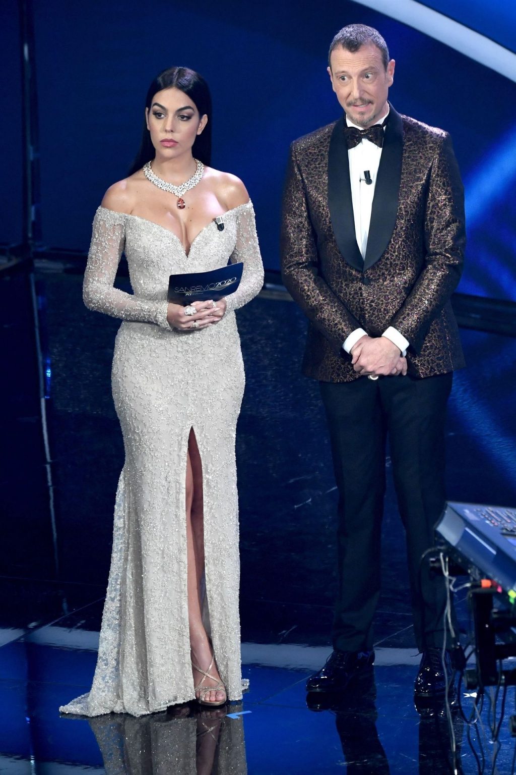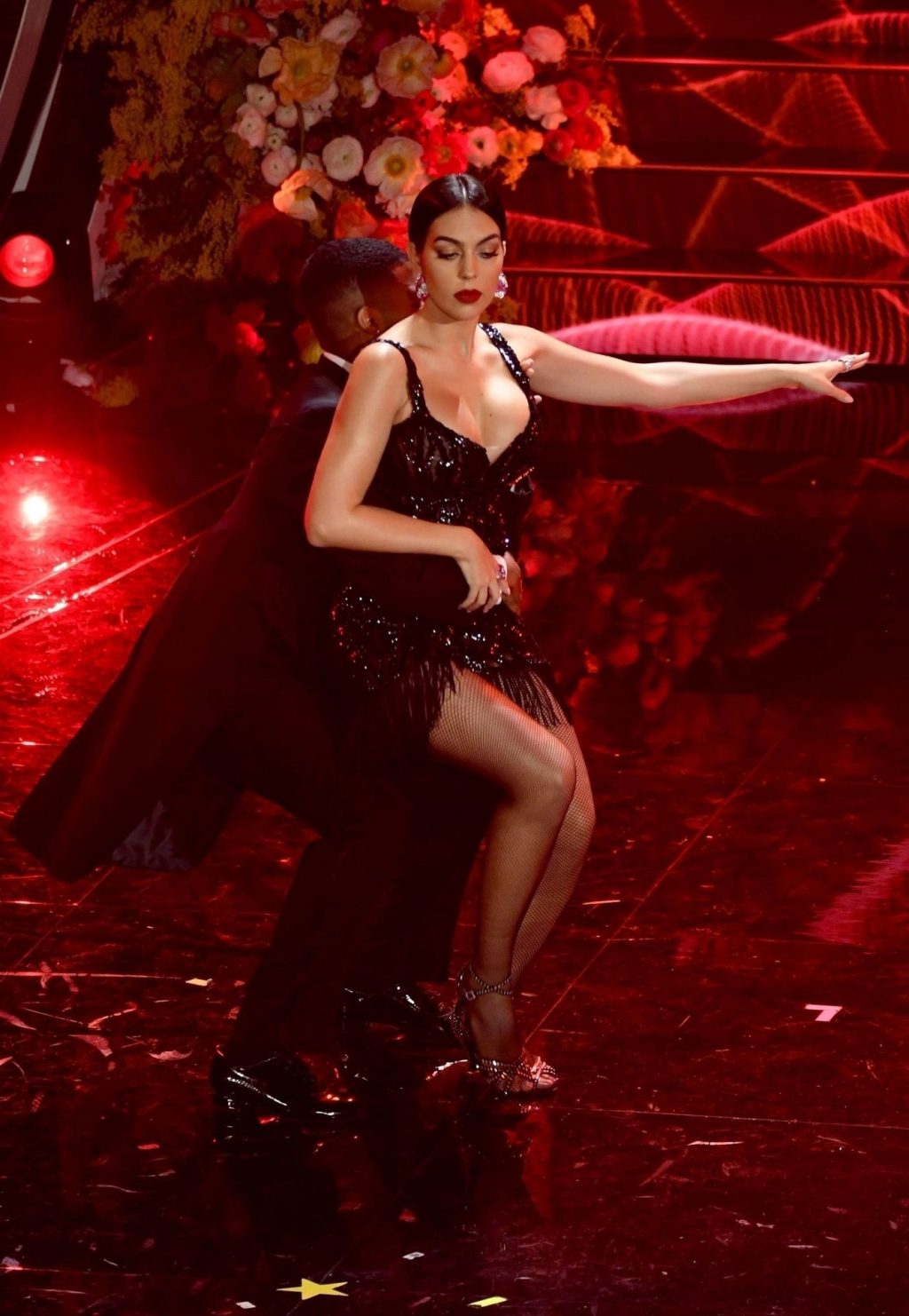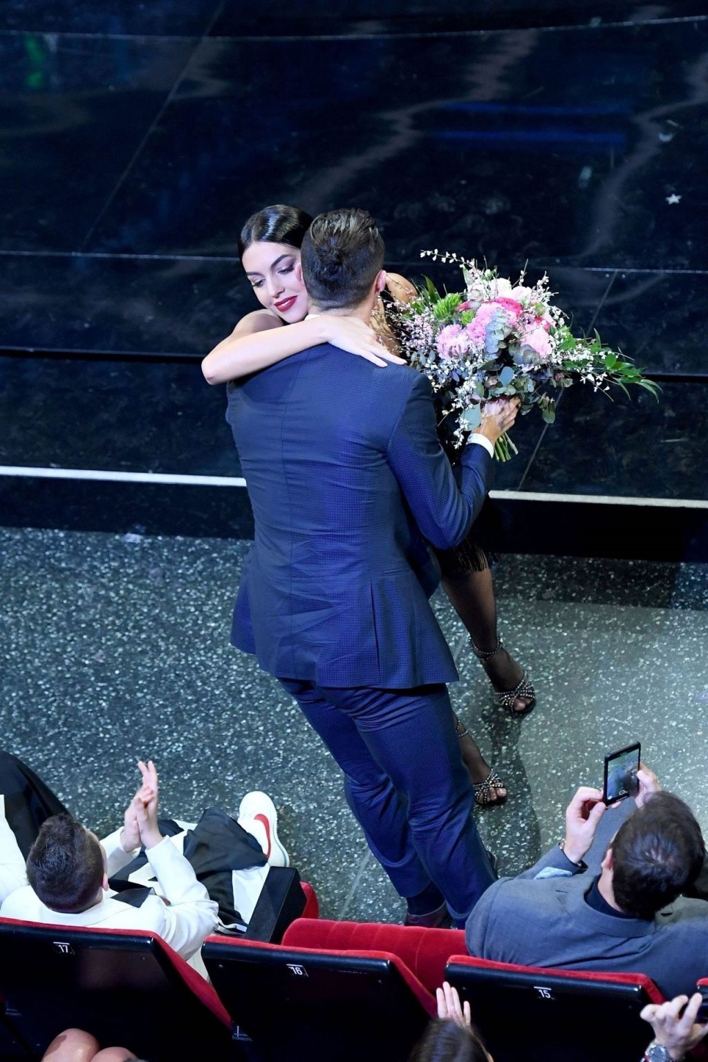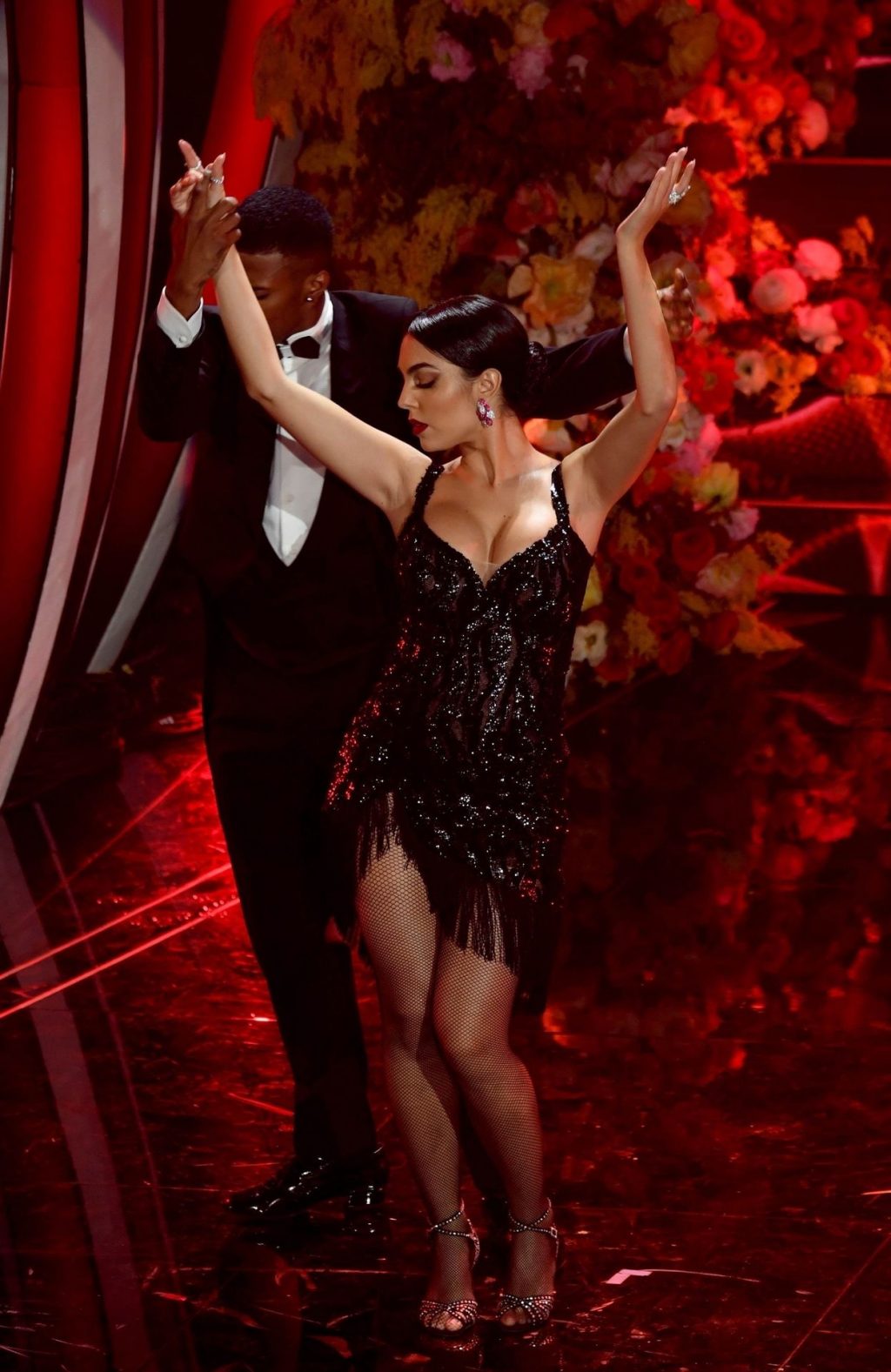 Georgina Rodríguez e Cristiano Ronaldo sono stati fotografati al 70º Festival di Sanremo, 06/02/2020. Georgina riscalda il festival ballando un tango argentino sul palco dell’Ariston durante la terza serata dell’evento.