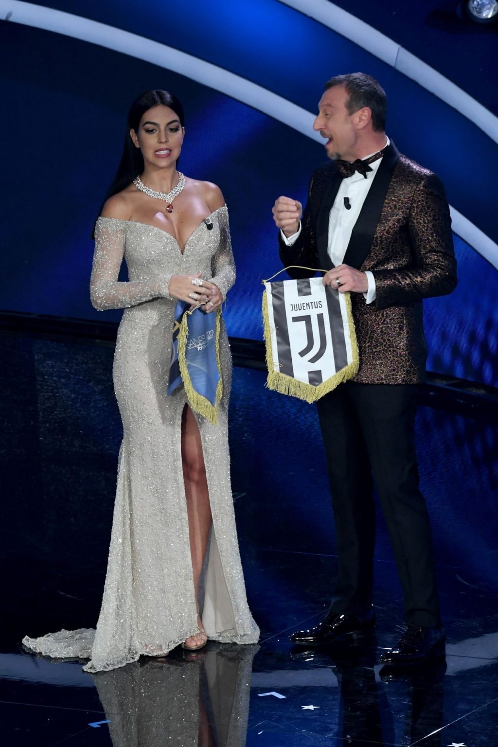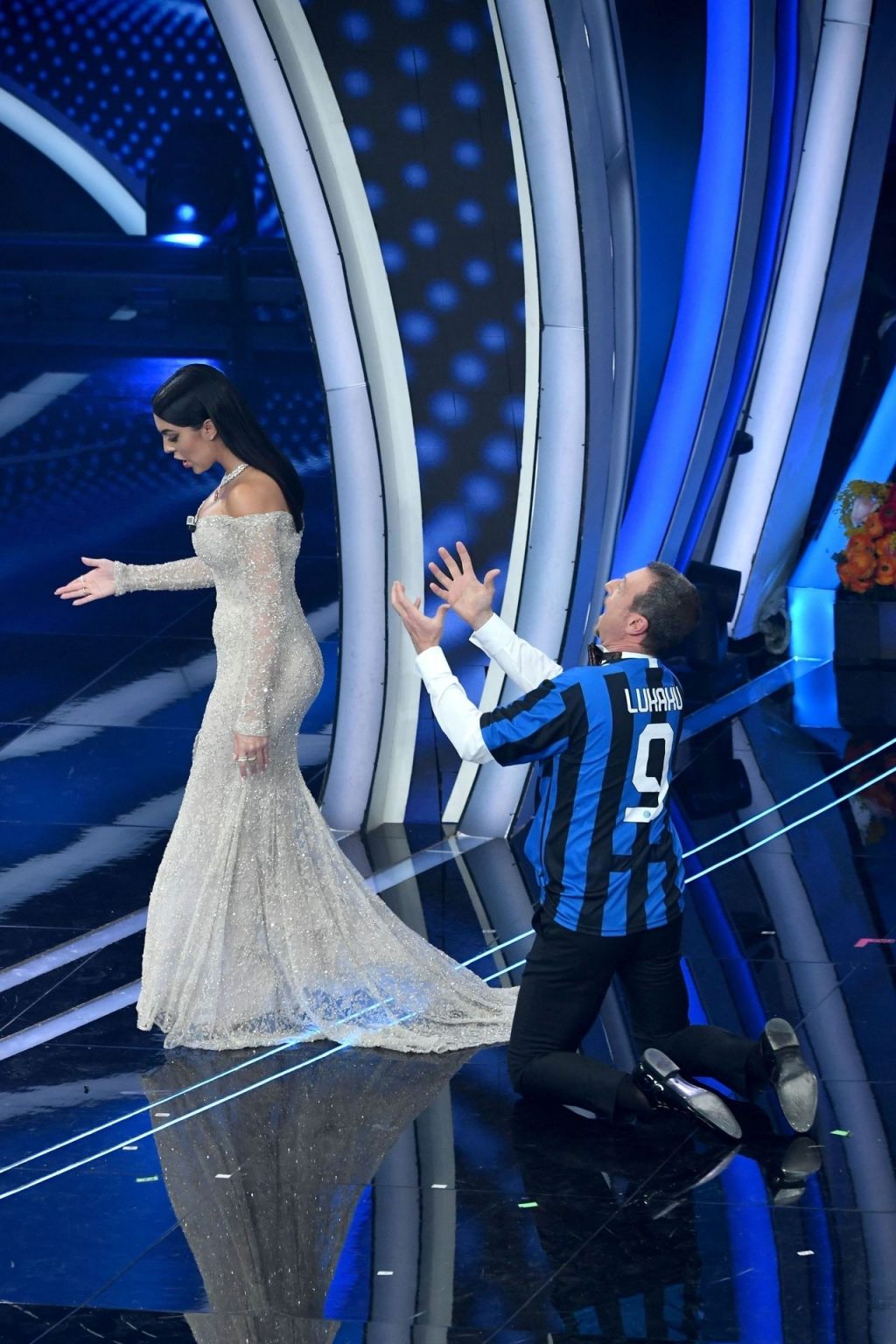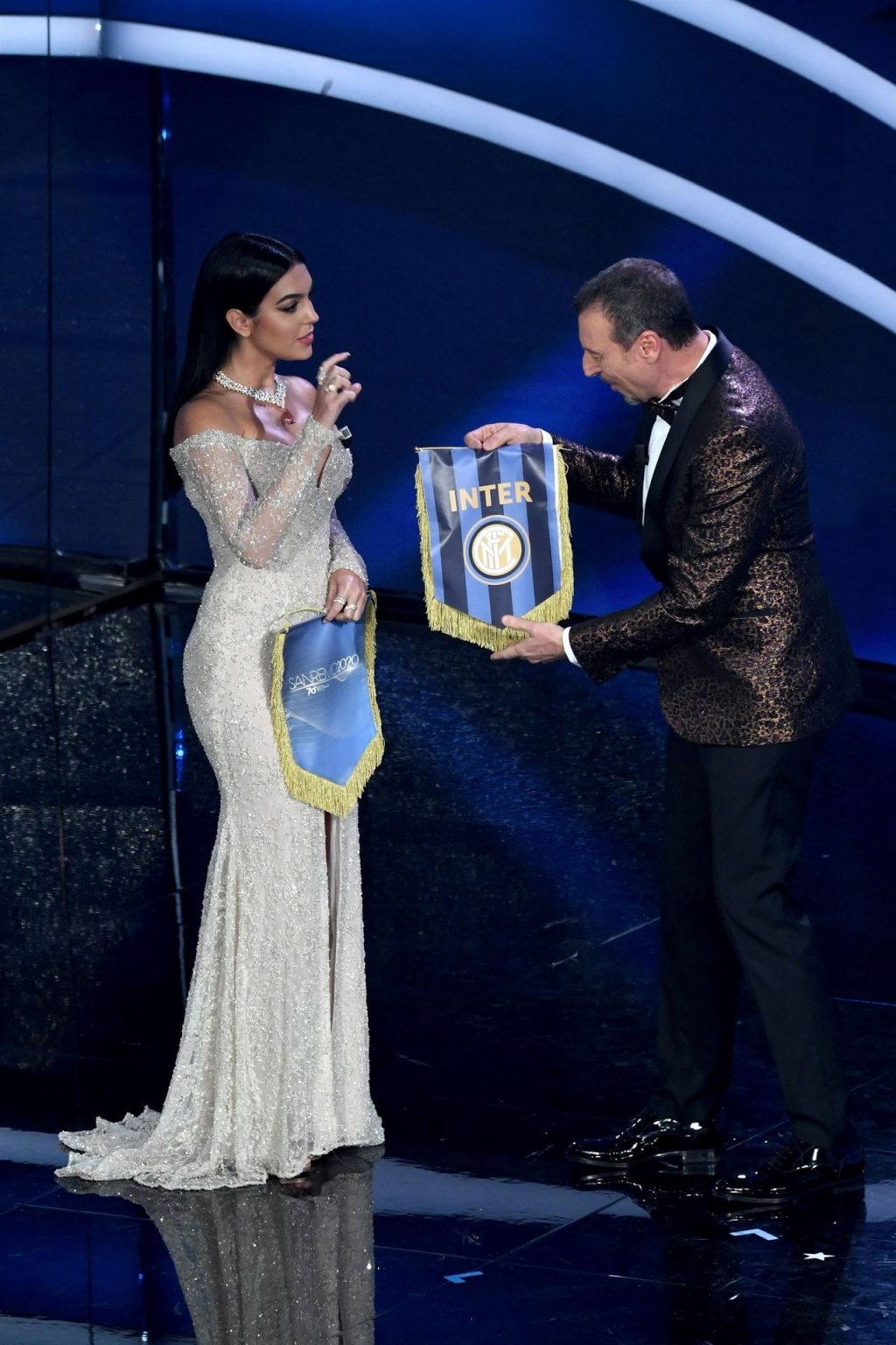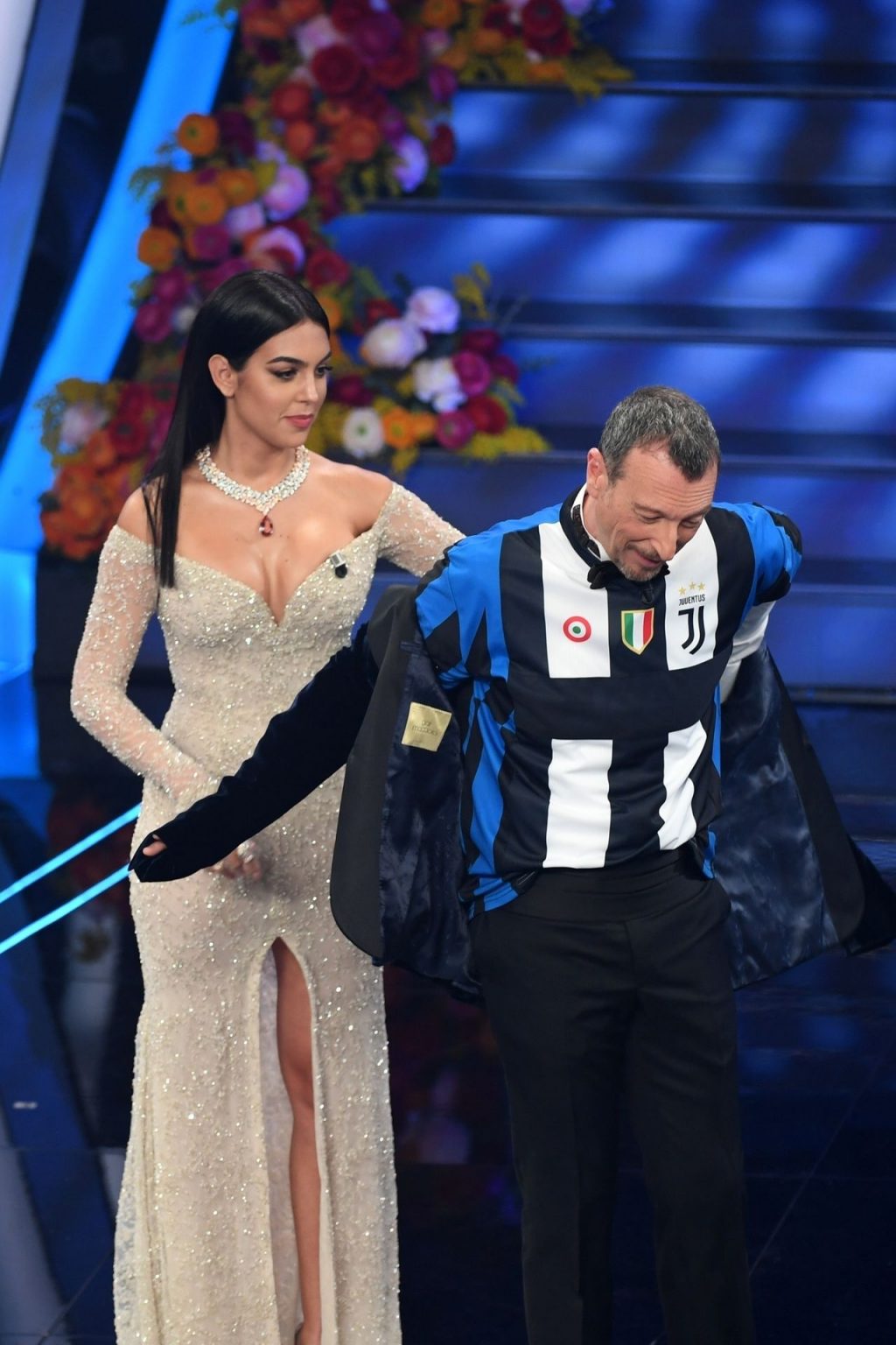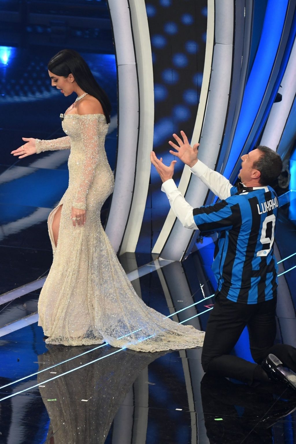 Georgina Rodríguez e Cristiano Ronaldo sono stati fotografati al 70º Festival di Sanremo, 06/02/2020. Georgina riscalda il festival ballando un tango argentino sul palco dell’Ariston durante la terza serata dell’evento.