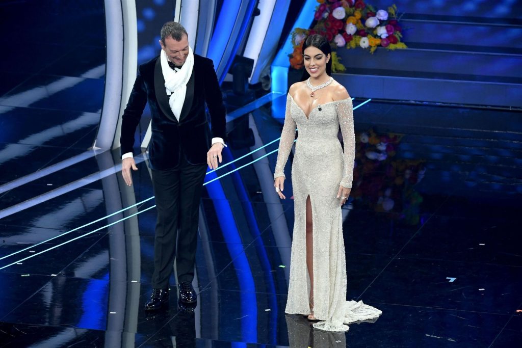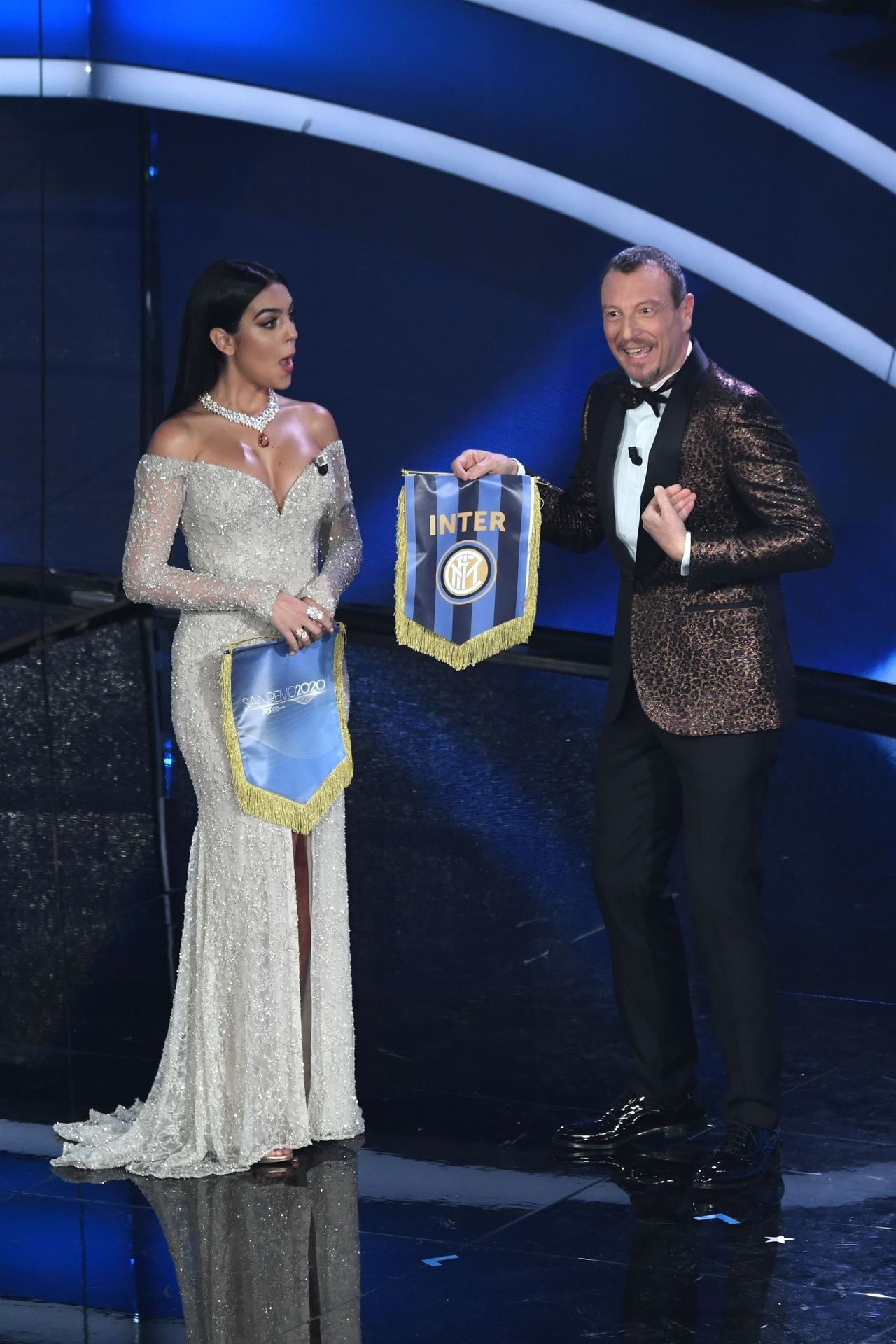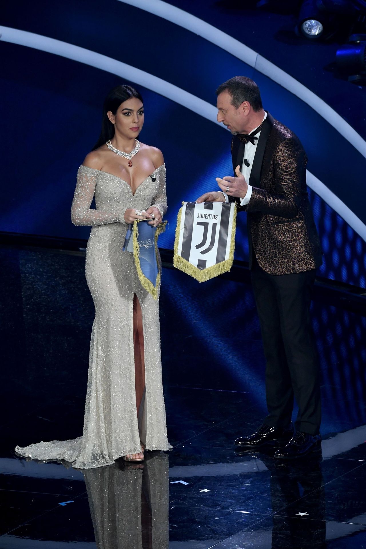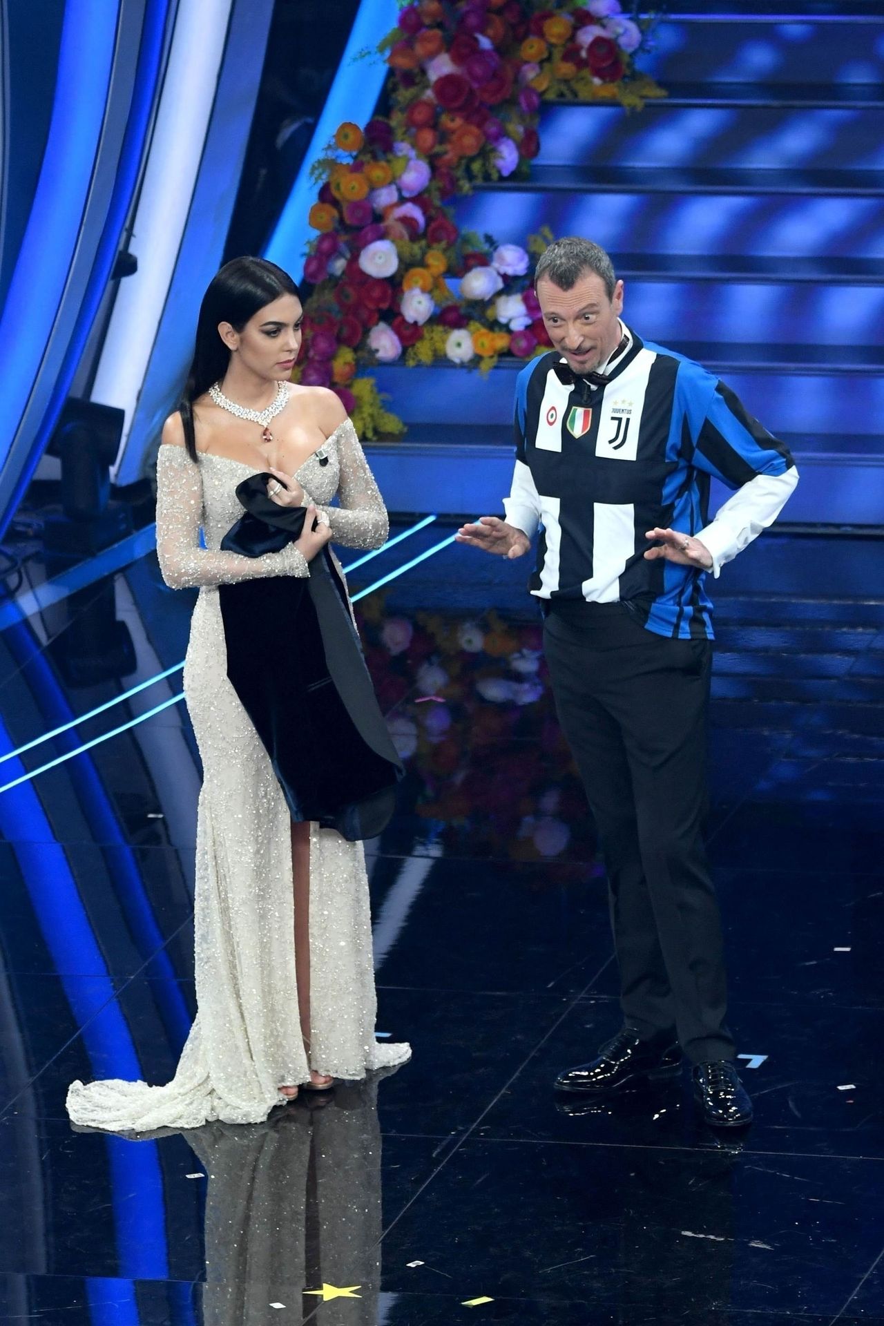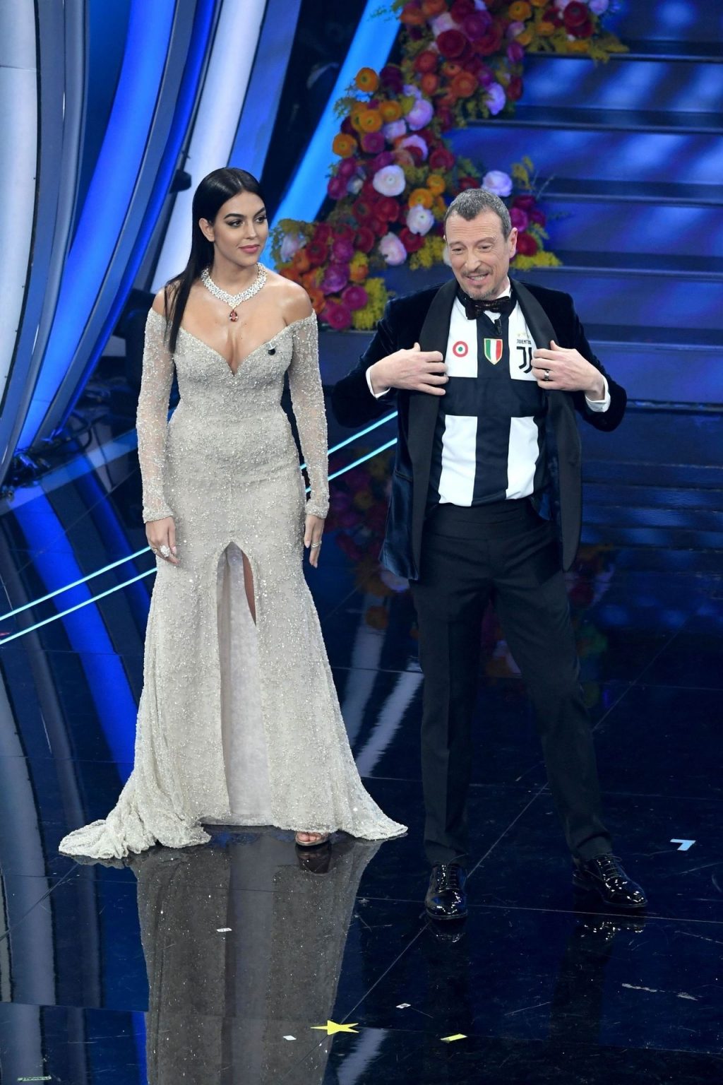 Georgina Rodríguez e Cristiano Ronaldo sono stati fotografati al 70º Festival di Sanremo, 06/02/2020. Georgina riscalda il festival ballando un tango argentino sul palco dell’Ariston durante la terza serata dell’evento.