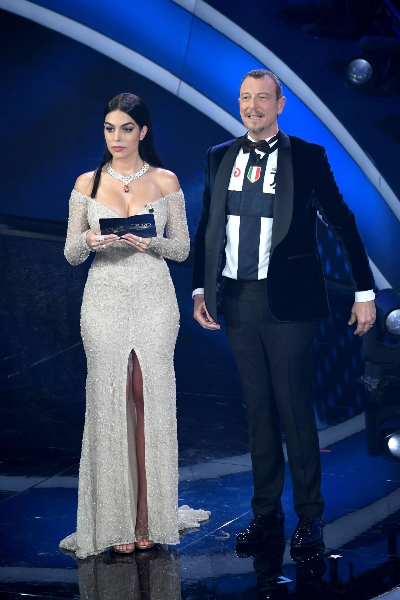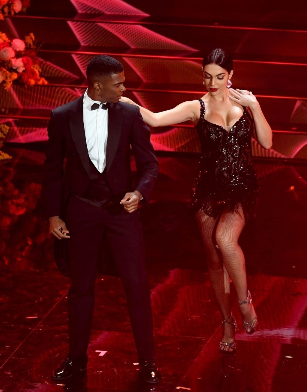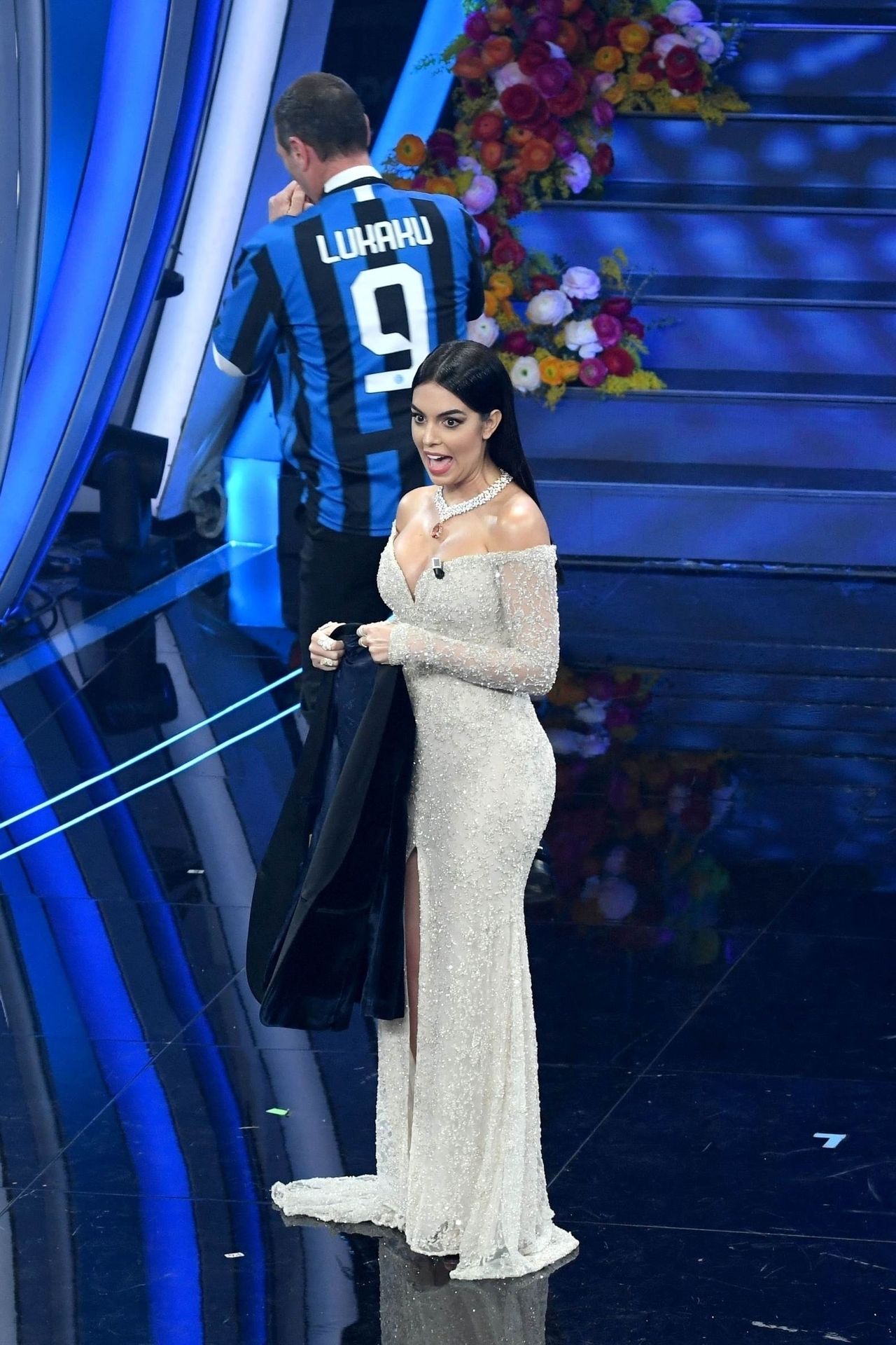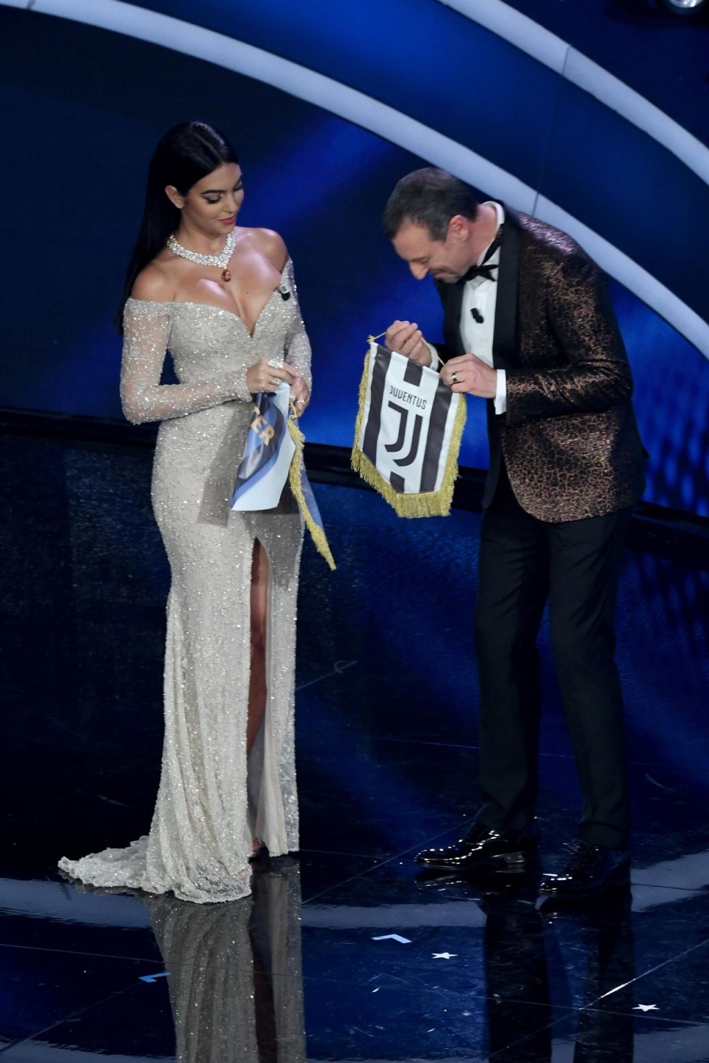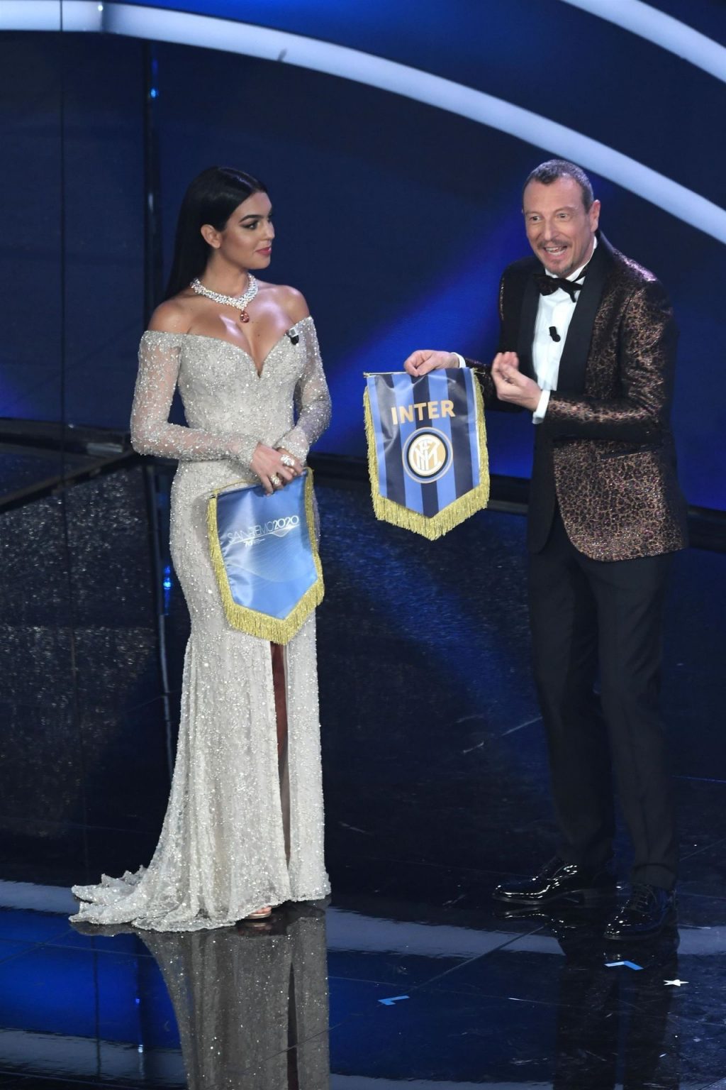 Georgina Rodríguez e Cristiano Ronaldo sono stati fotografati al 70º Festival di Sanremo, 06/02/2020. Georgina riscalda il festival ballando un tango argentino sul palco dell’Ariston durante la terza serata dell’evento.