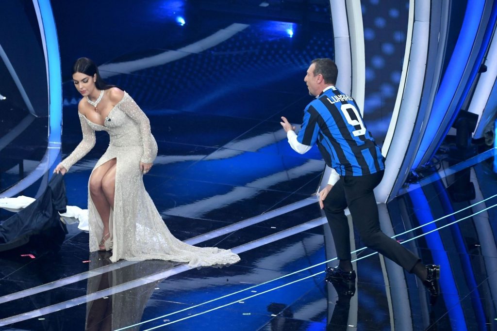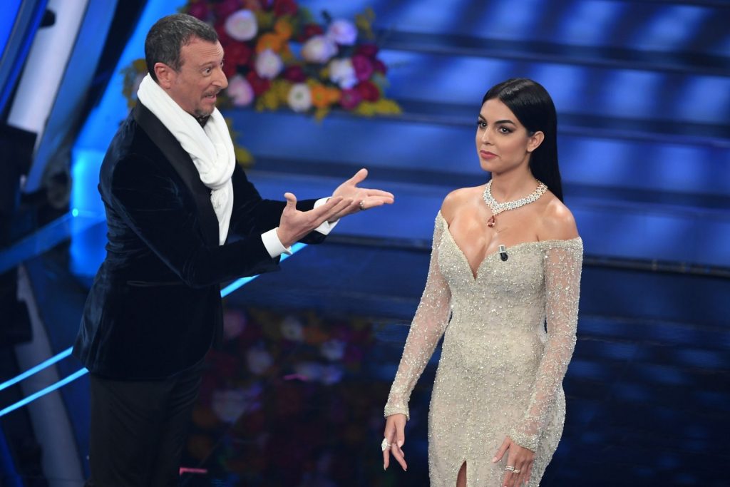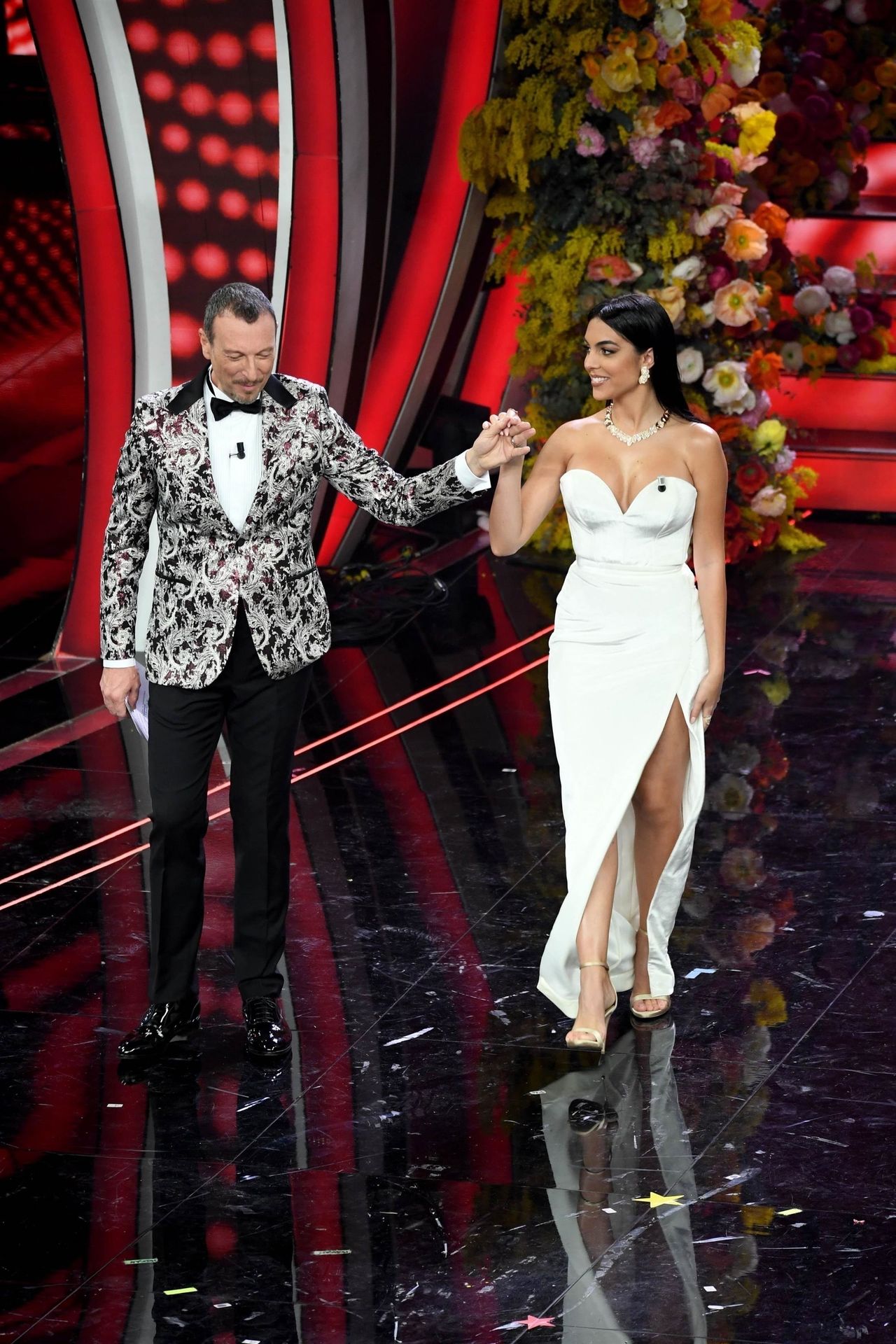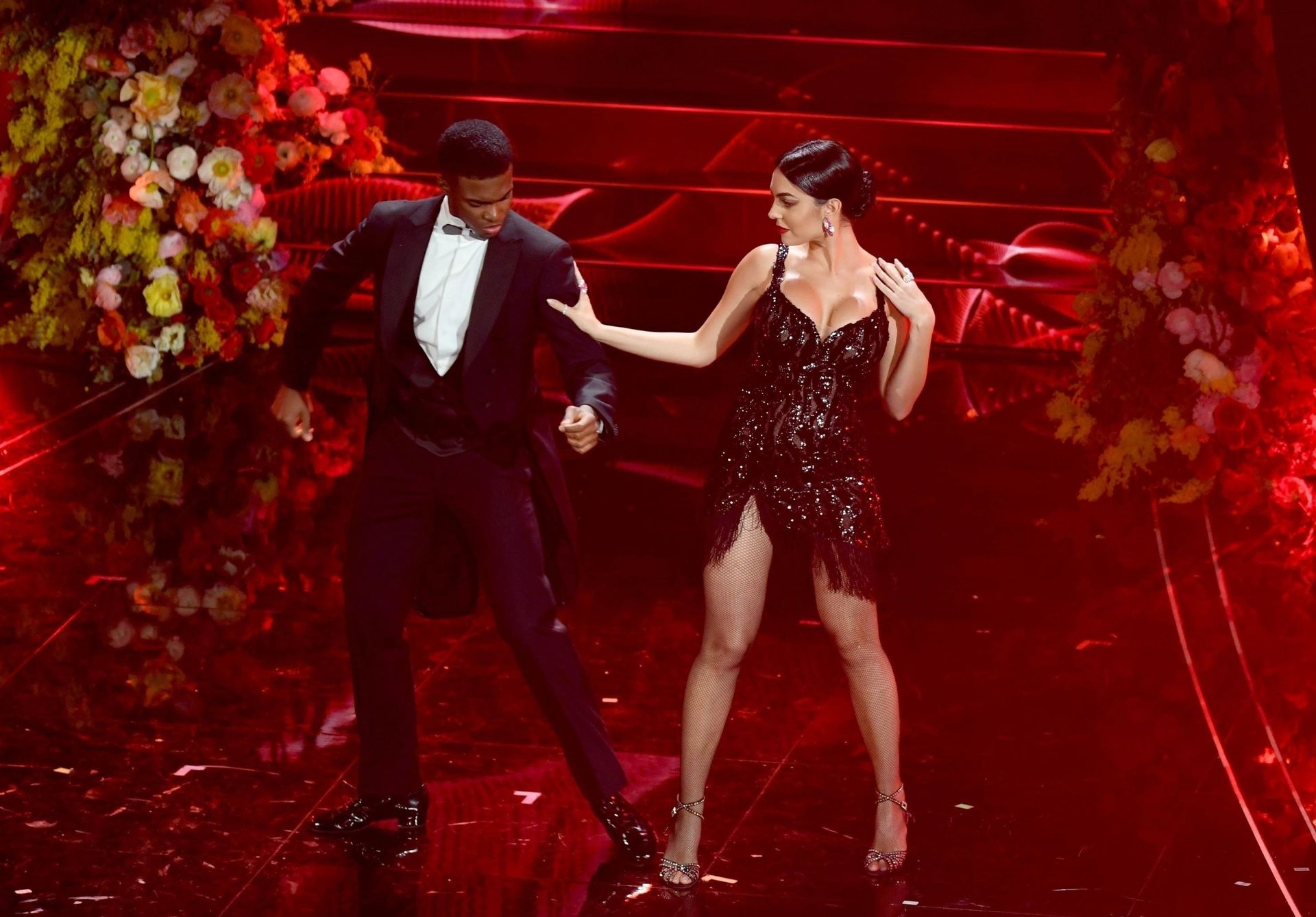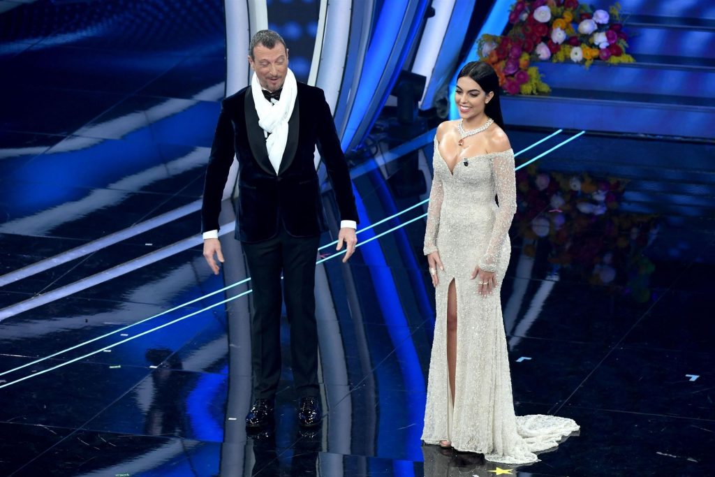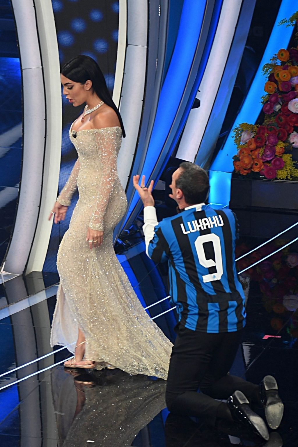 Georgina Rodríguez e Cristiano Ronaldo sono stati fotografati al 70º Festival di Sanremo, 06/02/2020. Georgina riscalda il festival ballando un tango argentino sul palco dell’Ariston durante la terza serata dell’evento.