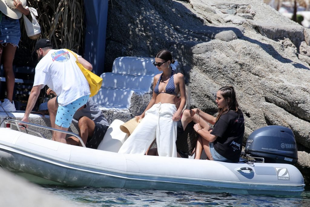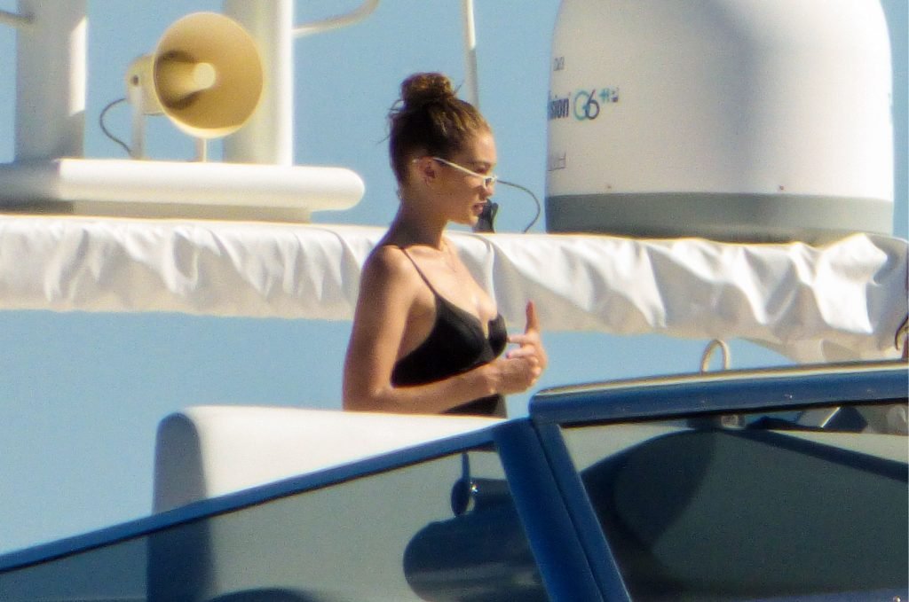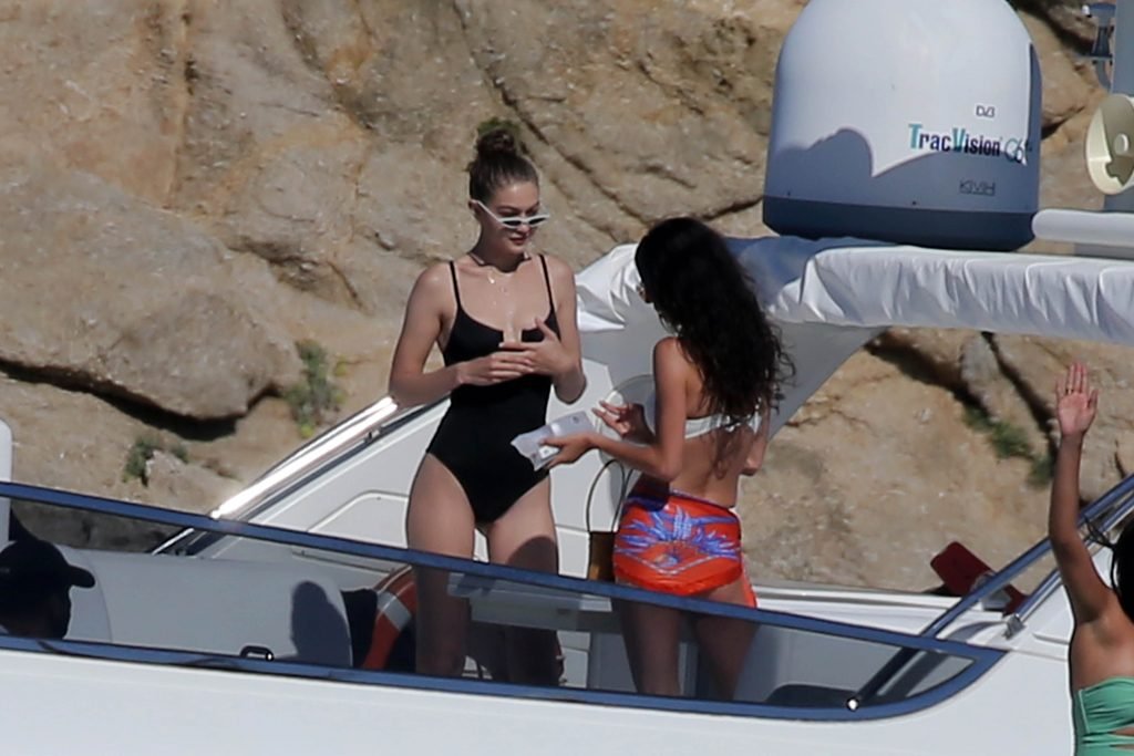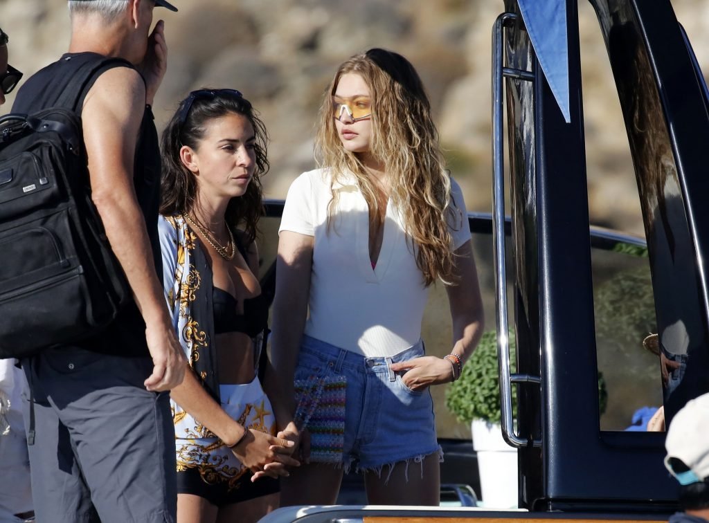 Le modelle Emily Ratajkowski e Gigi Hadid si godono una giornata in mare ballando e scattando foto su uno yacht a Mykonos, 01/07/2018.