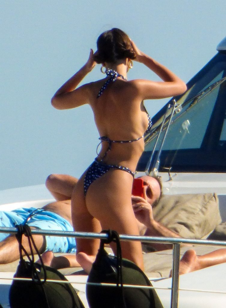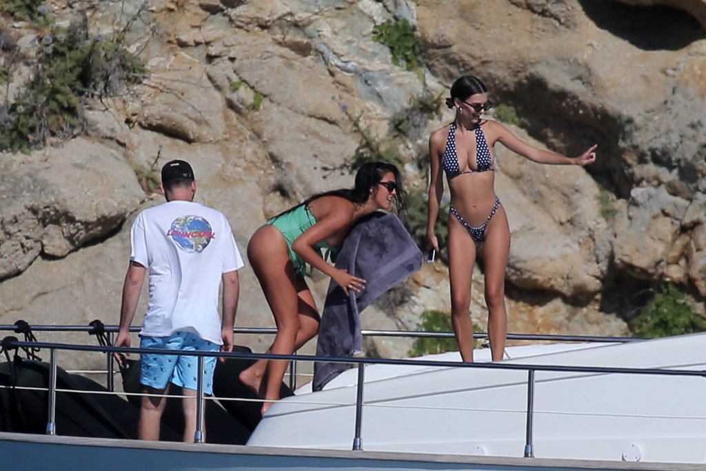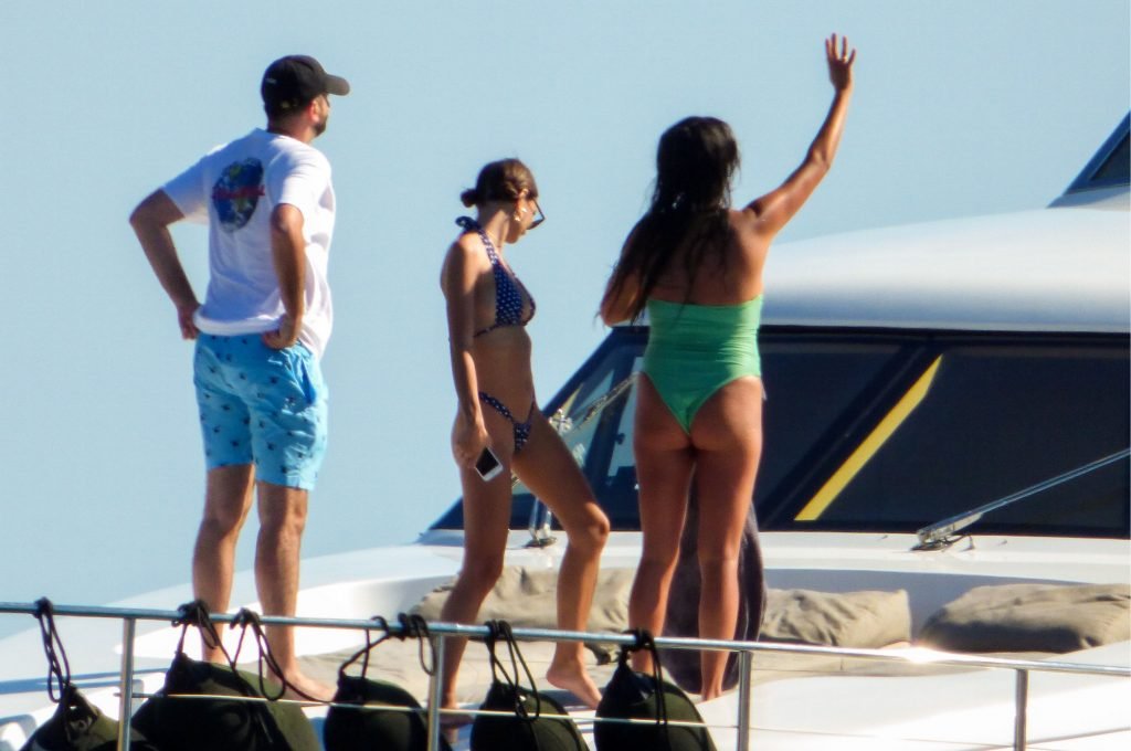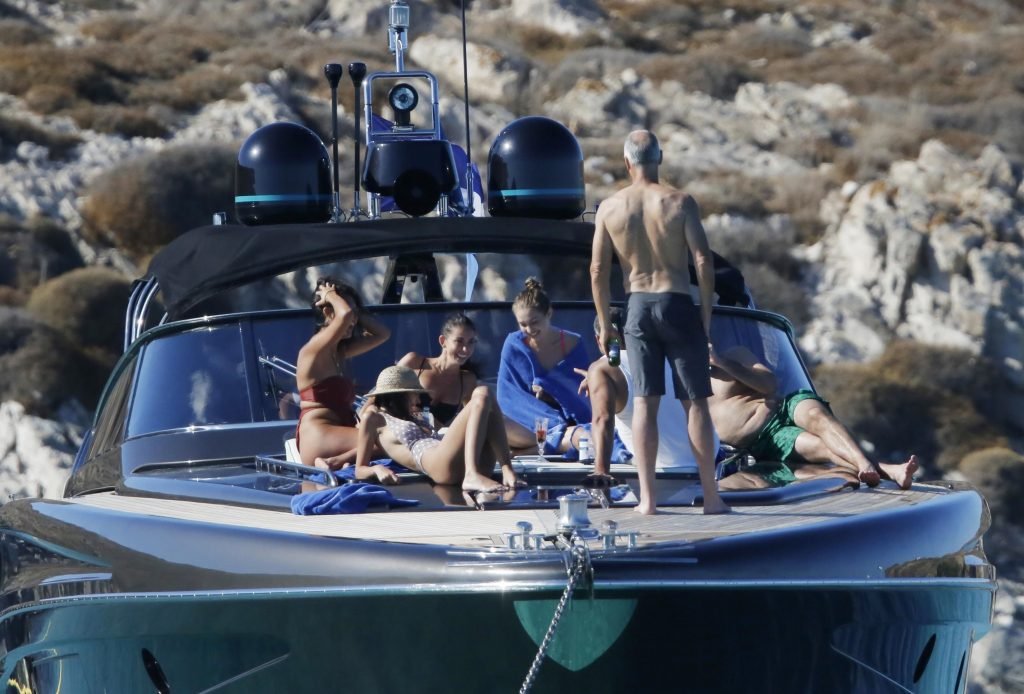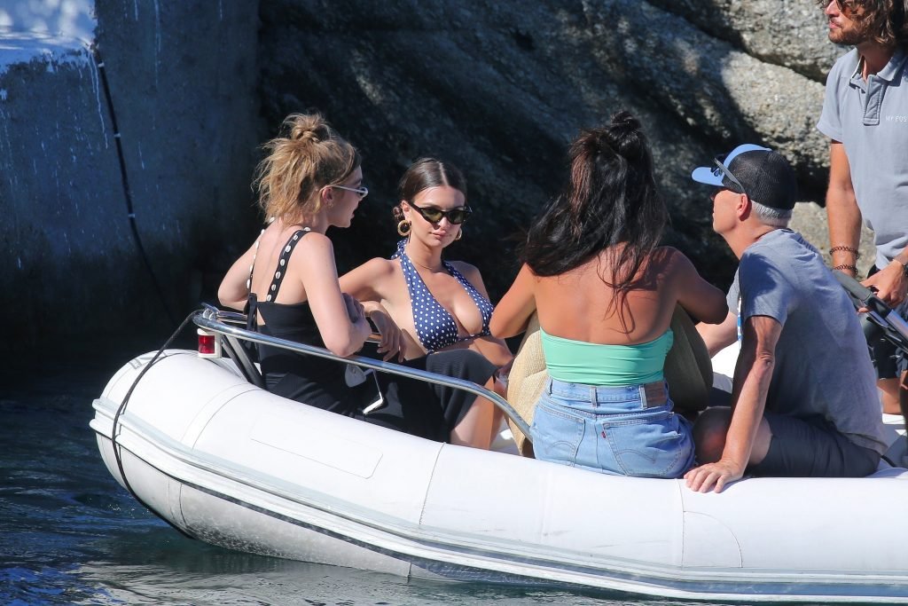 Le modelle Emily Ratajkowski e Gigi Hadid si godono una giornata in mare ballando e scattando foto su uno yacht a Mykonos, 01/07/2018.