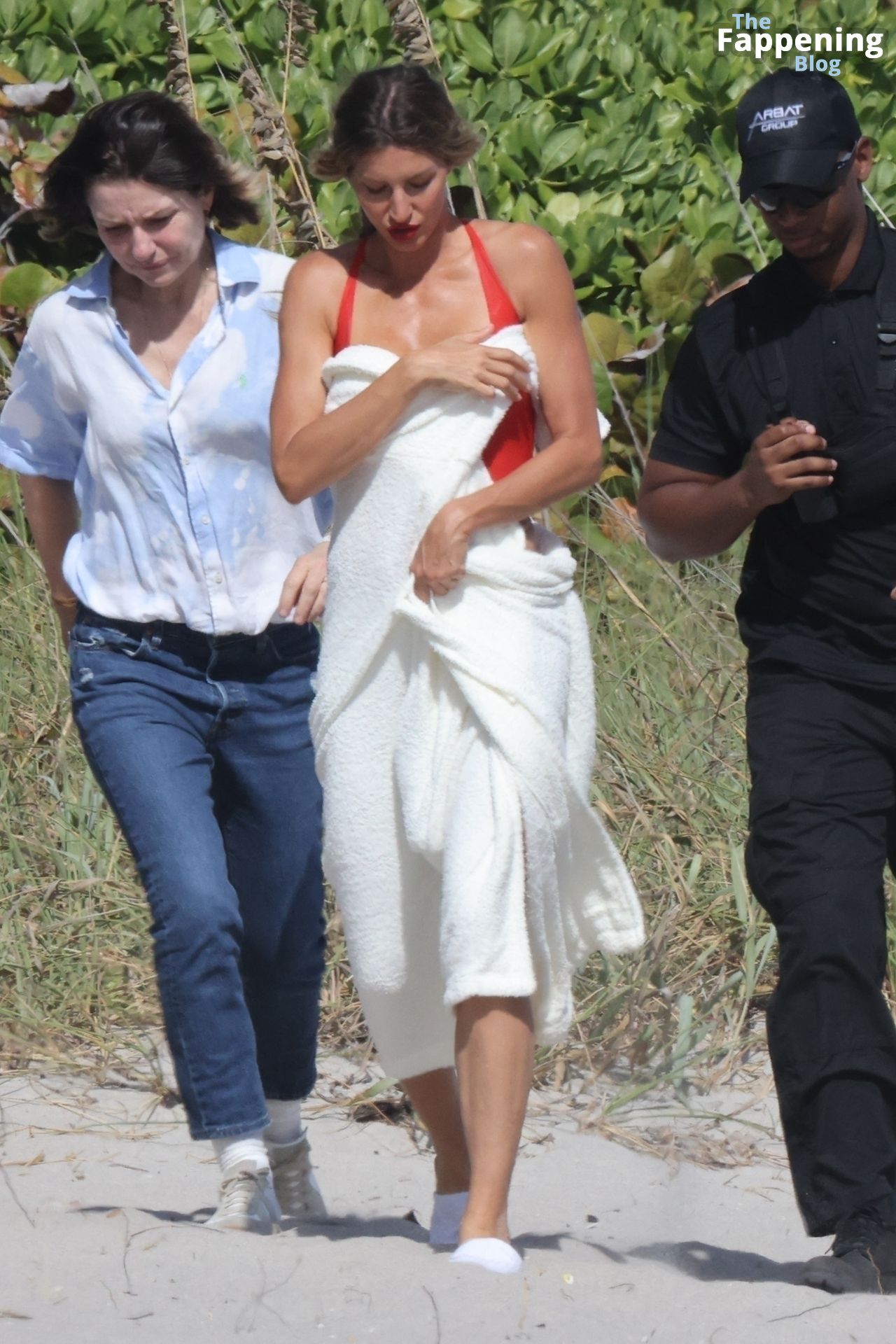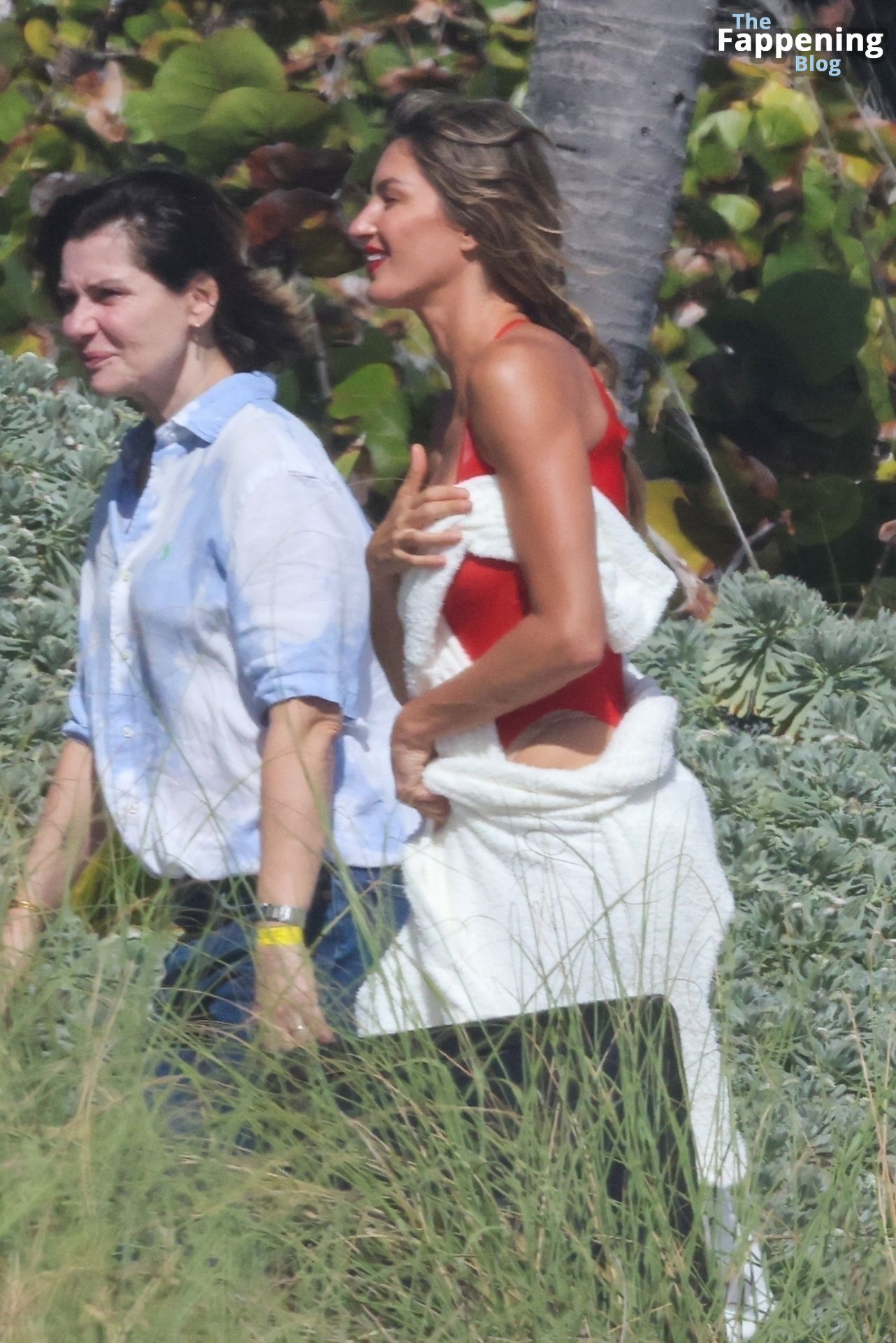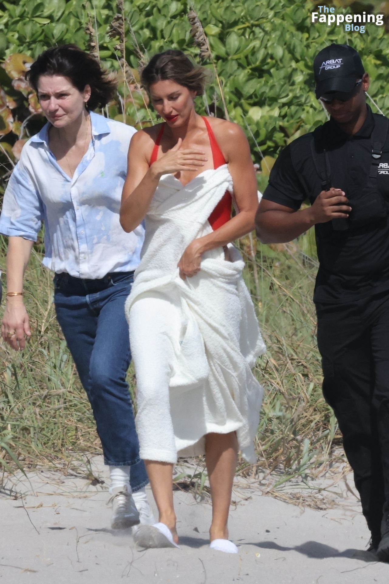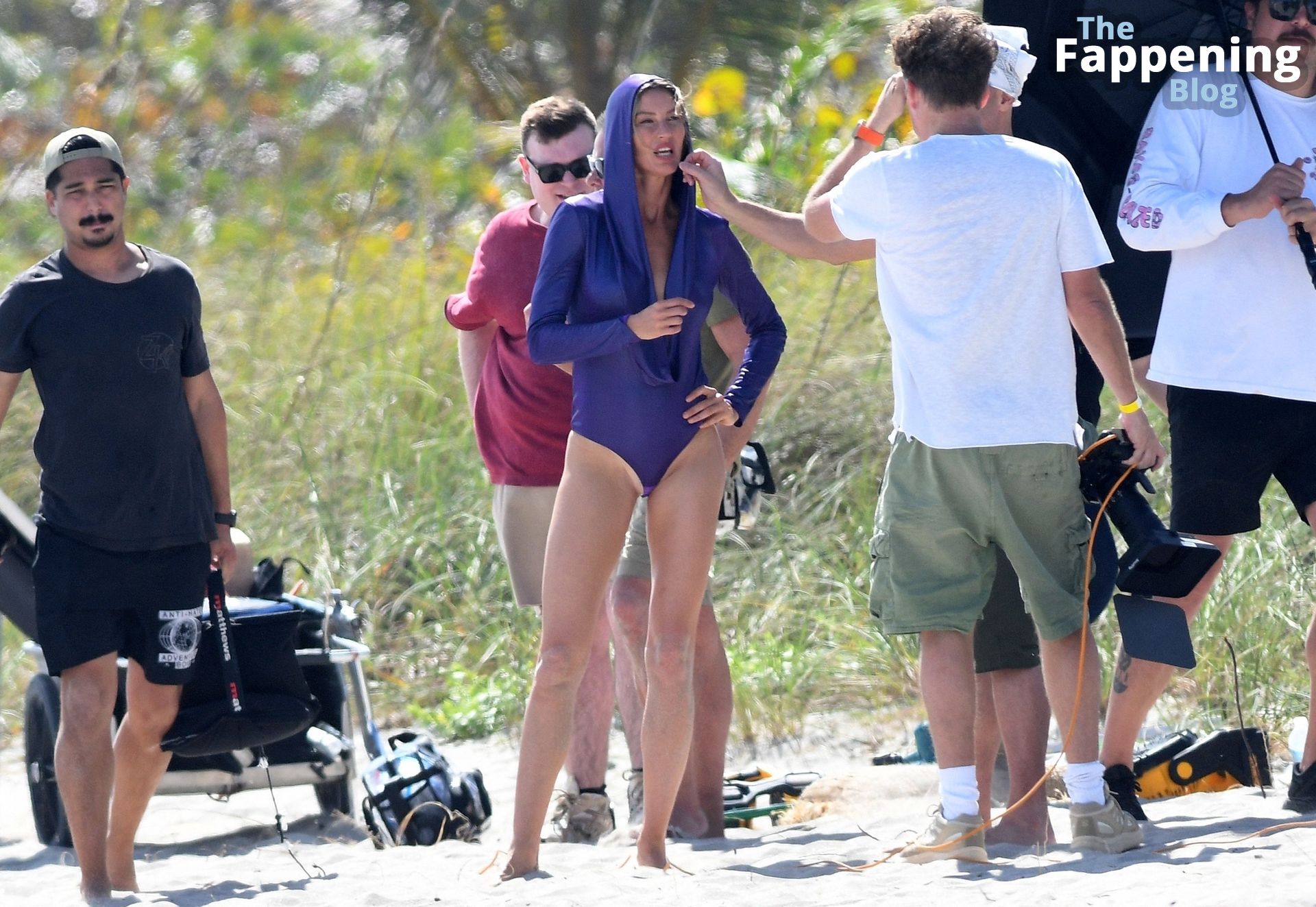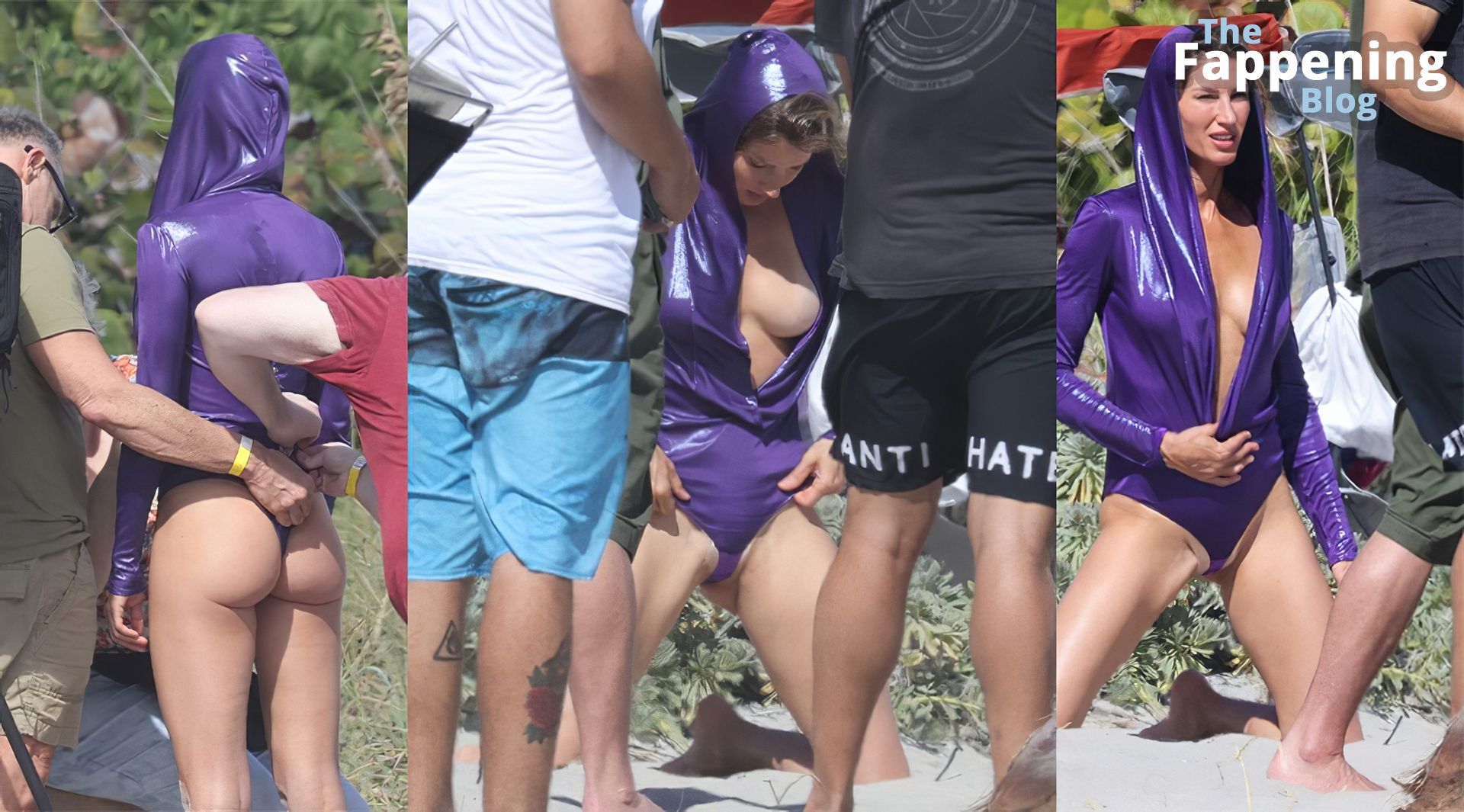 La modella brasiliana è stata vista ieri tornare al lavoro a Hollywood Fl dopo essere tornata da una vacanza in Costa Rica dove ha goduto di un po’ di relax con l’allenatore di jiu-jitsu Joaquim Valente. Gisele sembra desiderosa di tornare al lavoro dopo la separazione dall’ex Tom Brady. La top model 42enne è stata vista mostrare la sua incredibile figura con un costume da bagno viola scintillante.