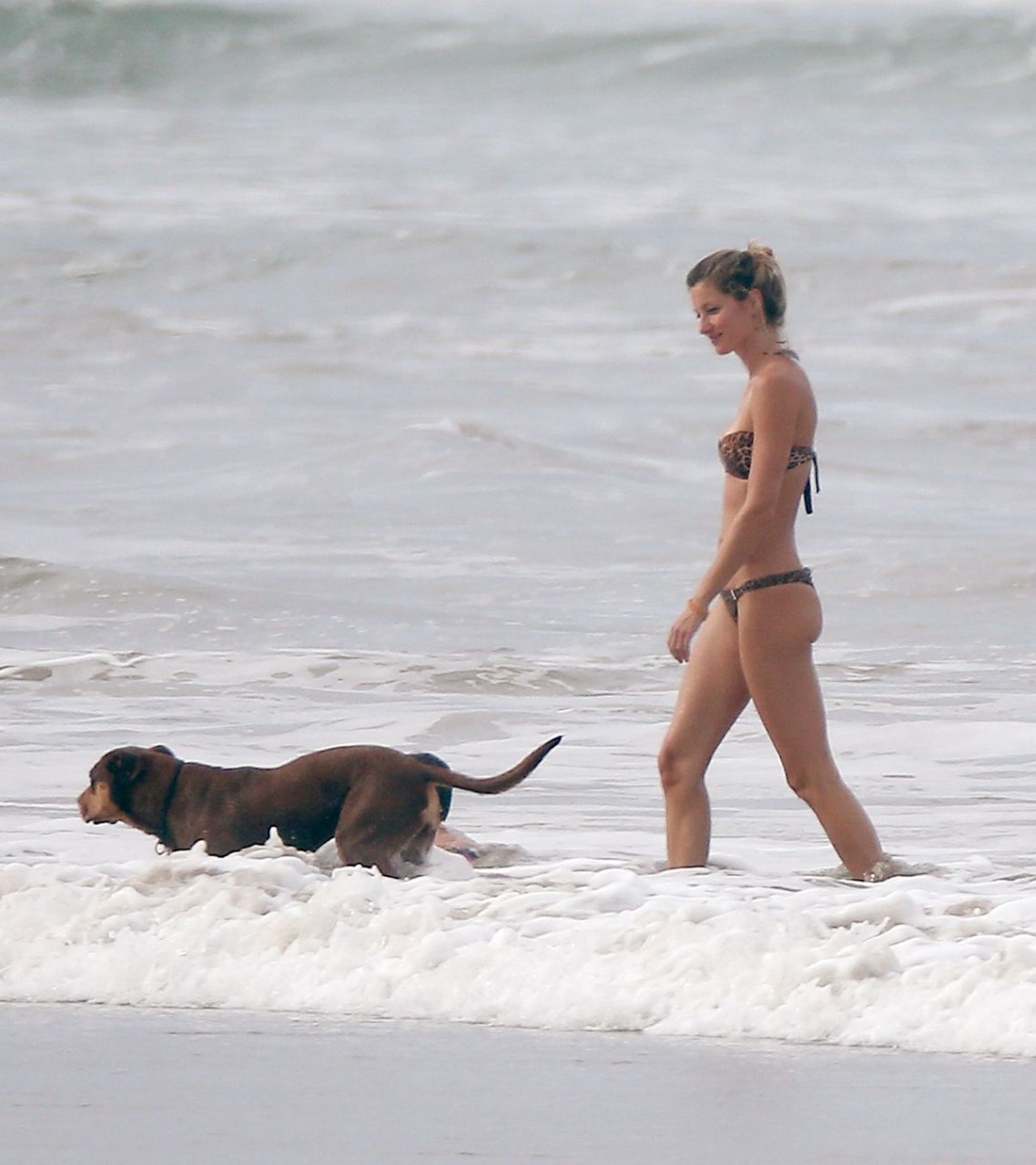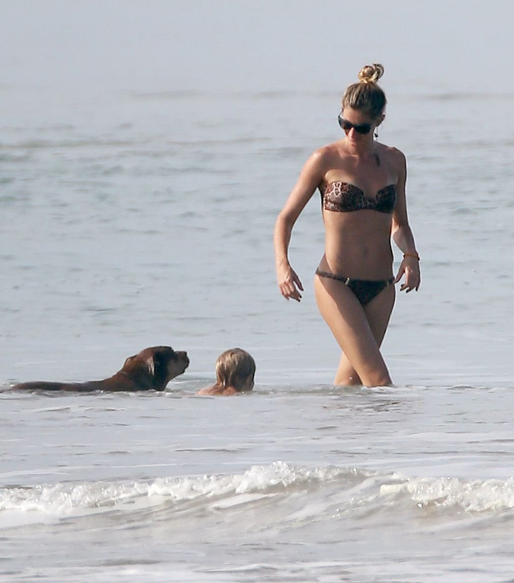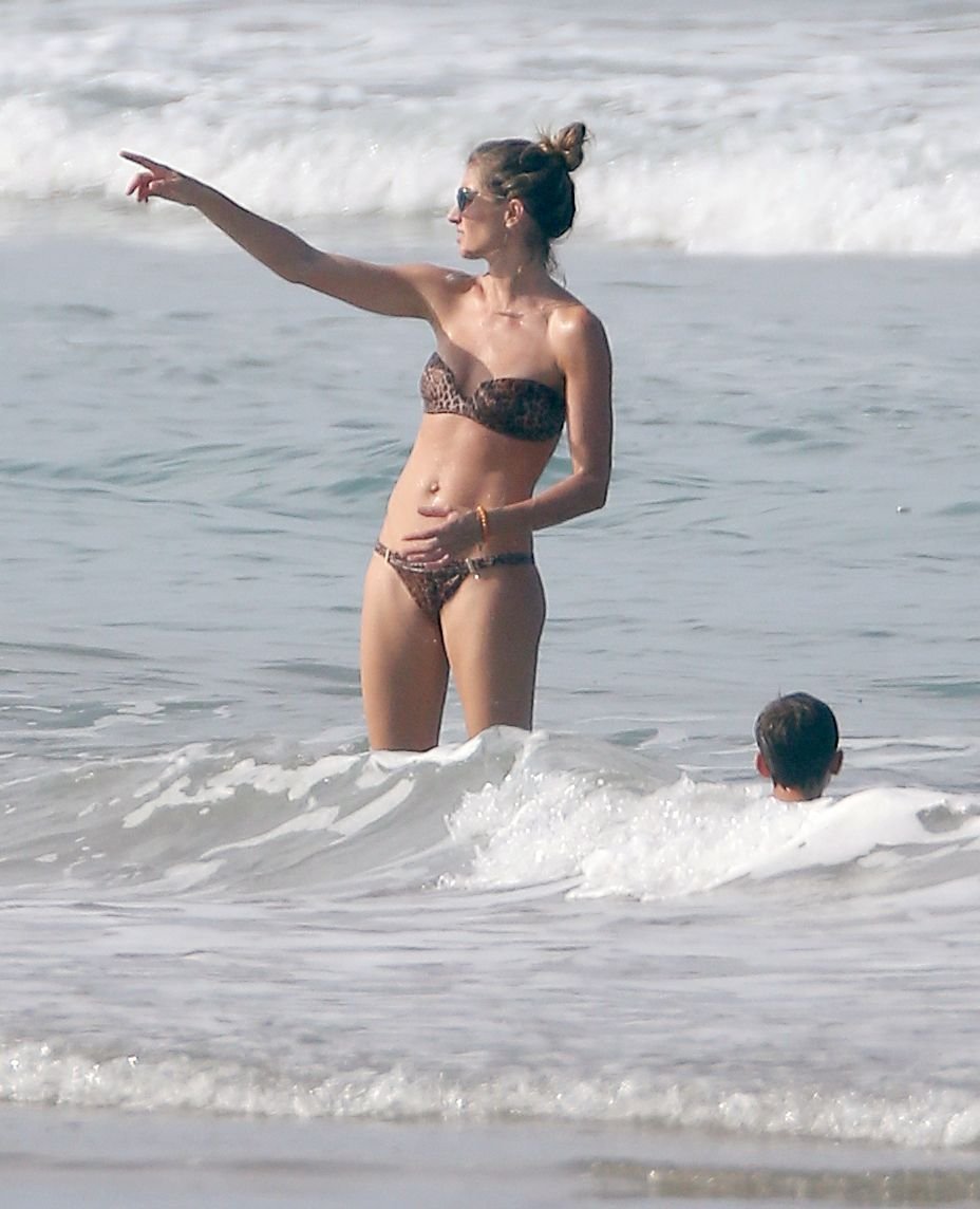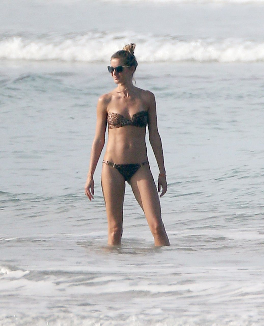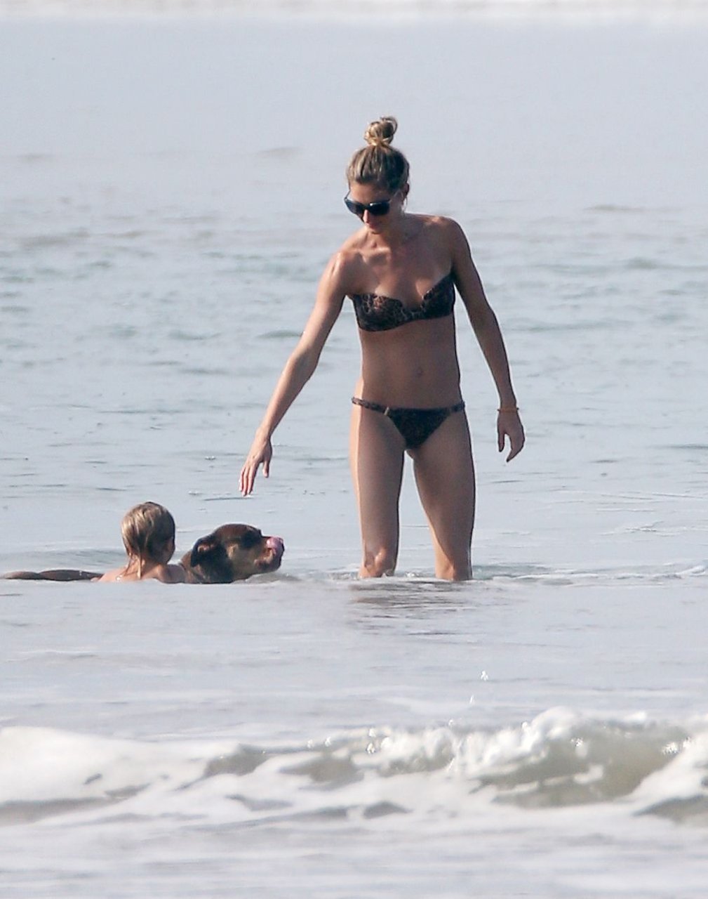 Gisele Bundchen e la sorella Rafaela si dirigono verso la spiaggia con la famiglia in Costa Rica, 02/06/2015. Gisele indossava il suo secondo bikini leopardato della settimana. Gisele ha trascorso del tempo con il giovane figlio Ben insegnandogli l’arte di cavalcare le onde.