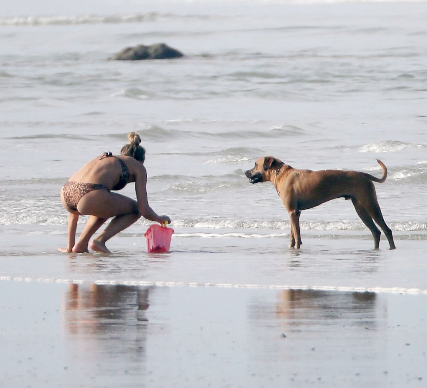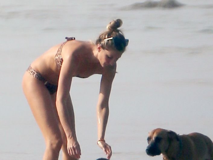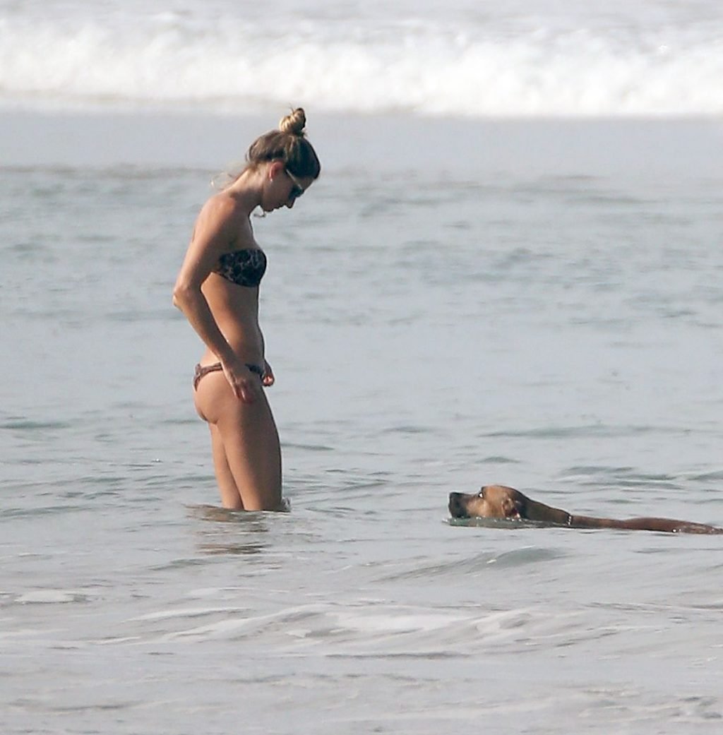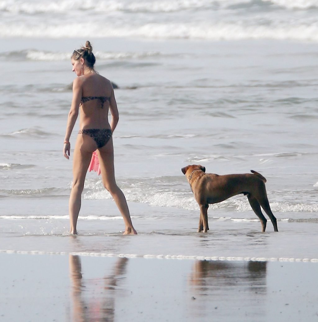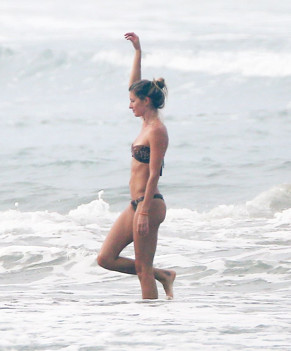 Gisele Bundchen e la sorella Rafaela si dirigono verso la spiaggia con la famiglia in Costa Rica, 02/06/2015. Gisele indossava il suo secondo bikini leopardato della settimana. Gisele ha trascorso del tempo con il giovane figlio Ben insegnandogli l’arte di cavalcare le onde.
