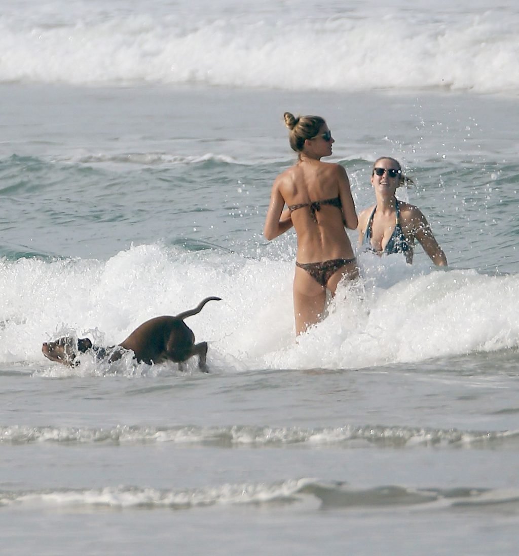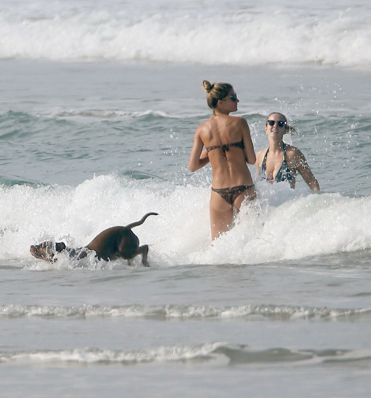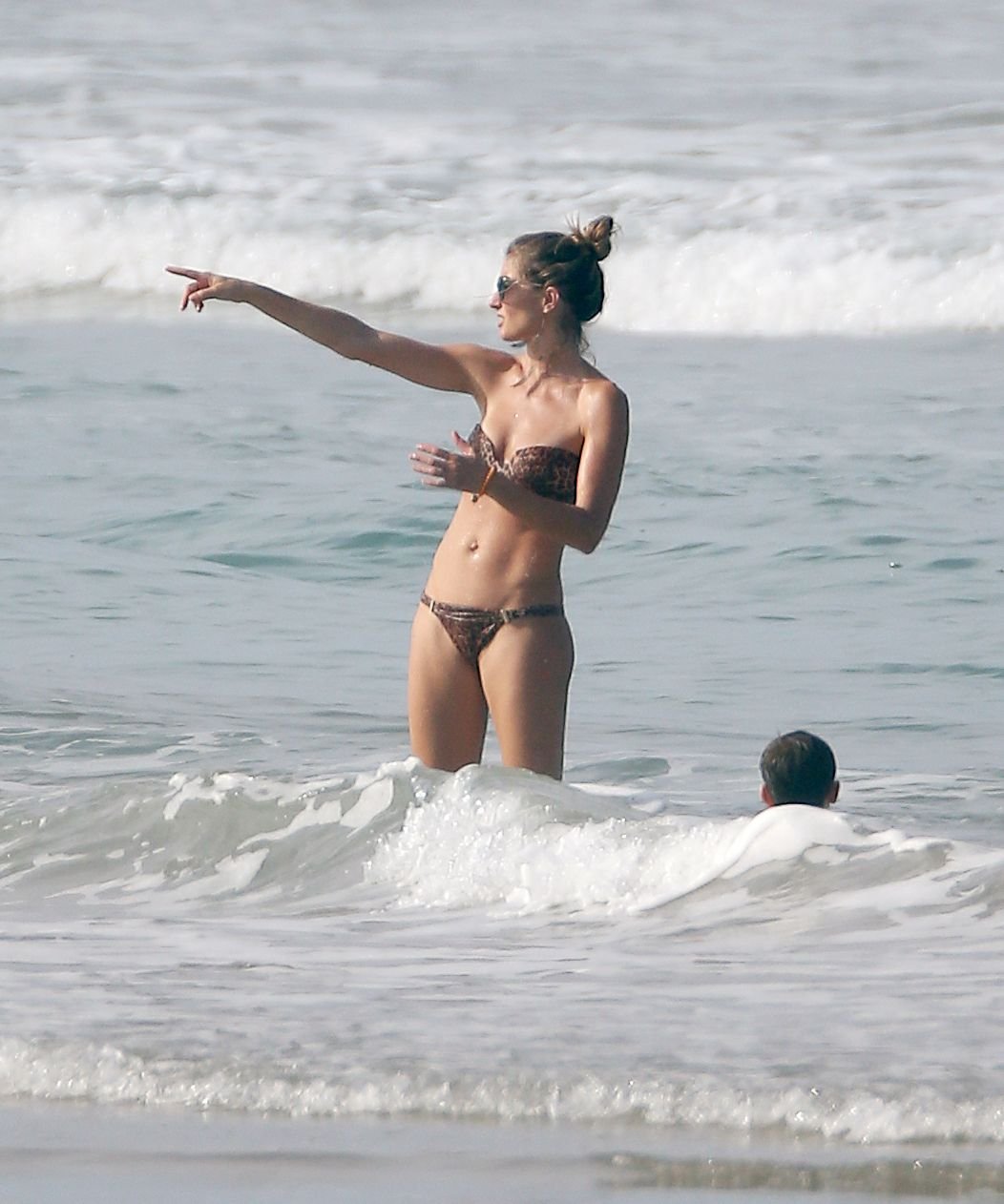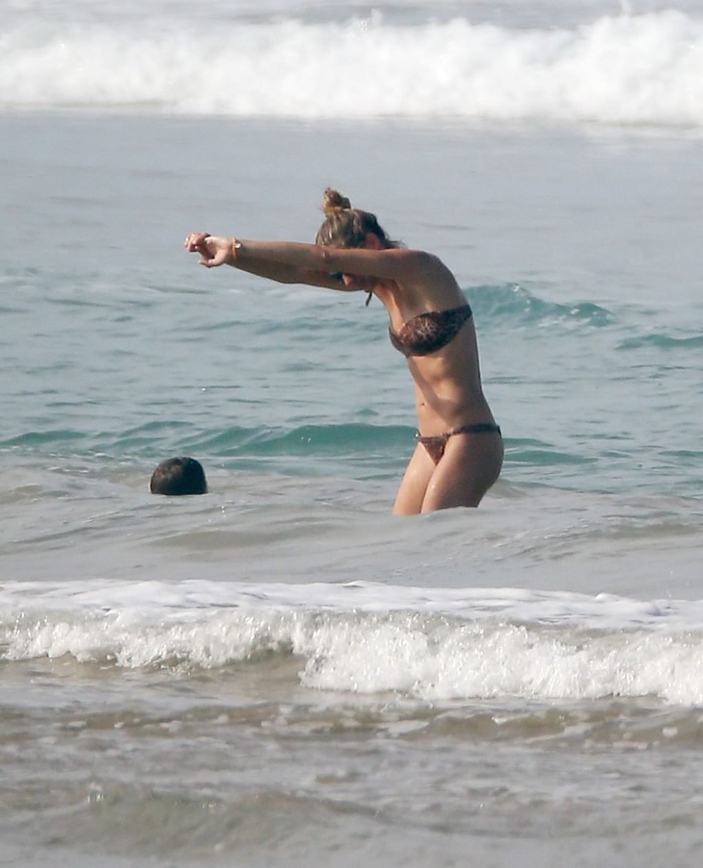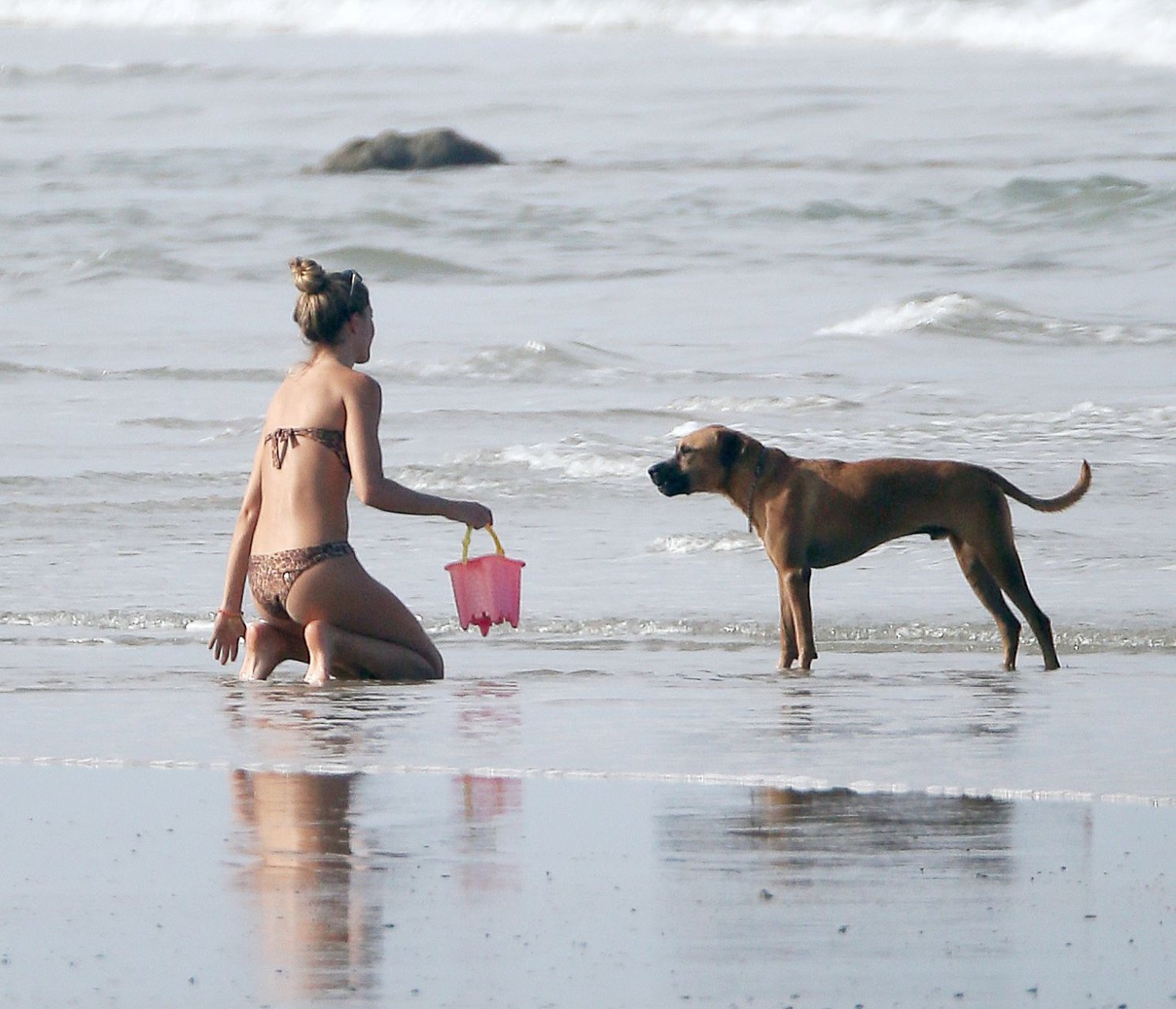 Gisele Bundchen e la sorella Rafaela si dirigono verso la spiaggia con la famiglia in Costa Rica, 02/06/2015. Gisele indossava il suo secondo bikini leopardato della settimana. Gisele ha trascorso del tempo con il giovane figlio Ben insegnandogli l’arte di cavalcare le onde.