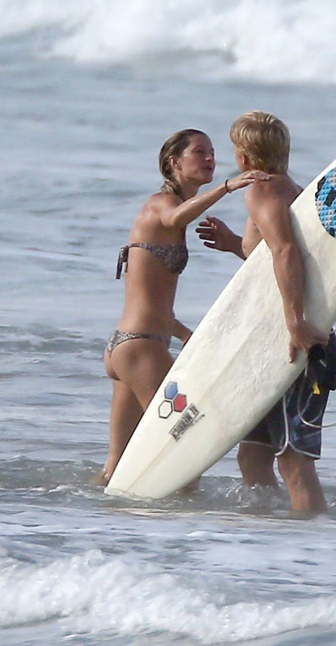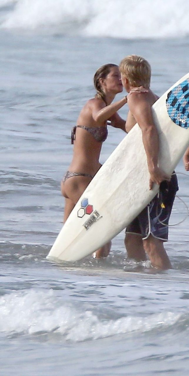 Gisele Bundchen si gode il suo ultimo giorno in Costa Rica dopo una settimana di divertimento e sole sulla spiaggia con la famiglia in Costa Rica, 06/05/2015. Gisele è stata vista mentre baciava i surfisti godendosi il sole.