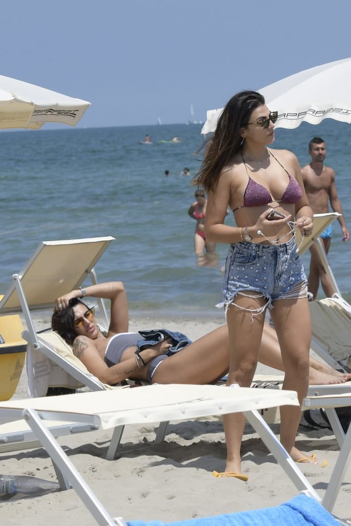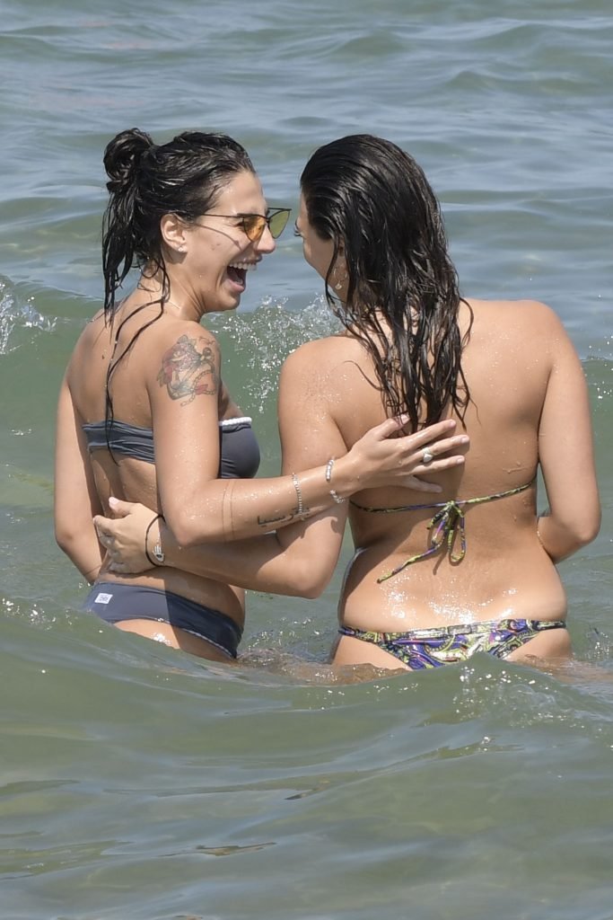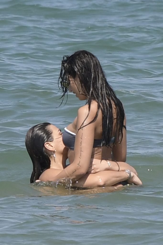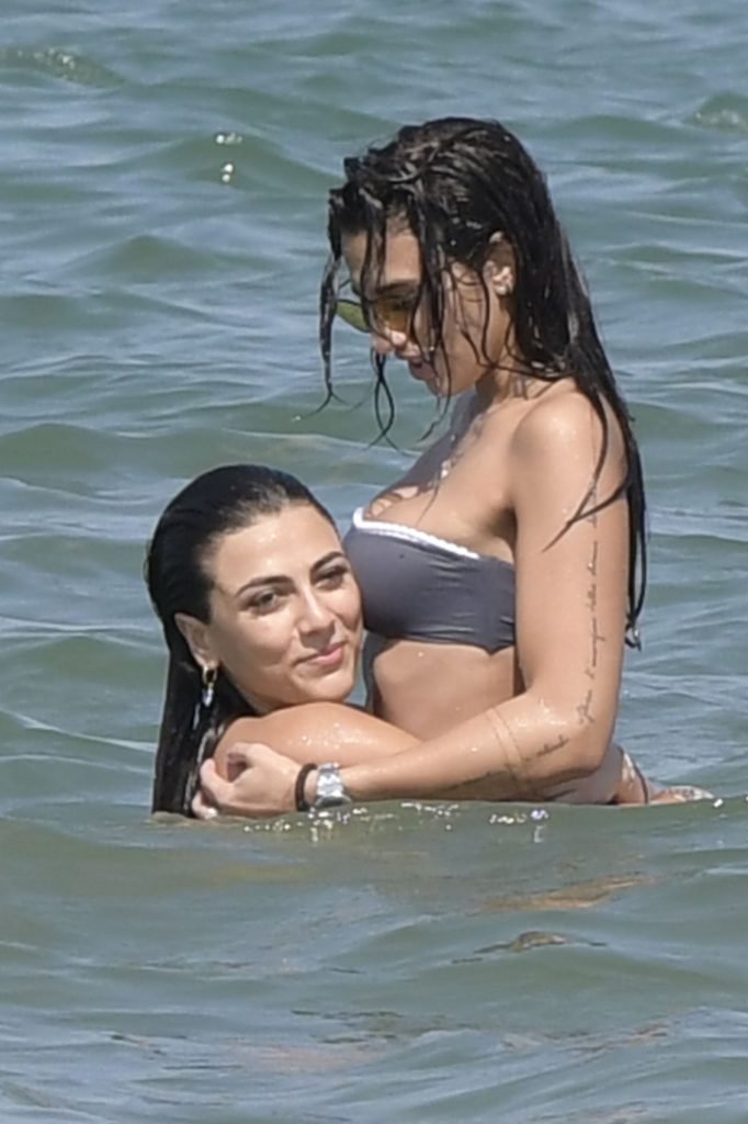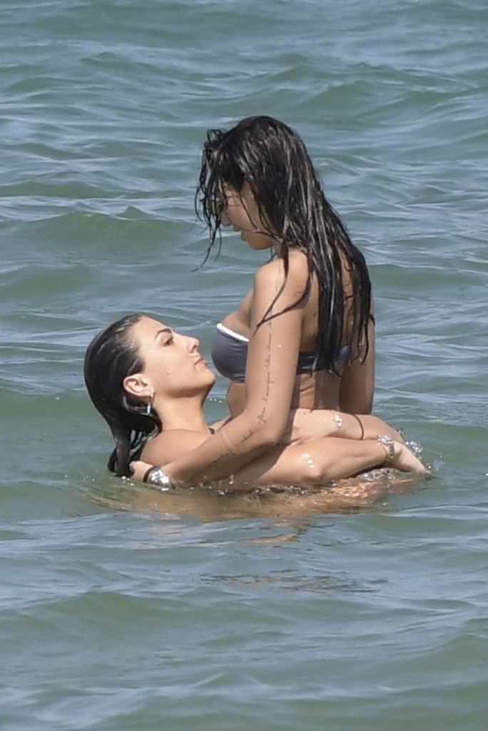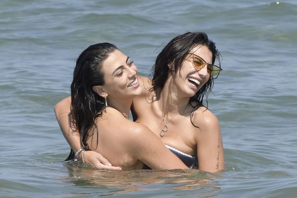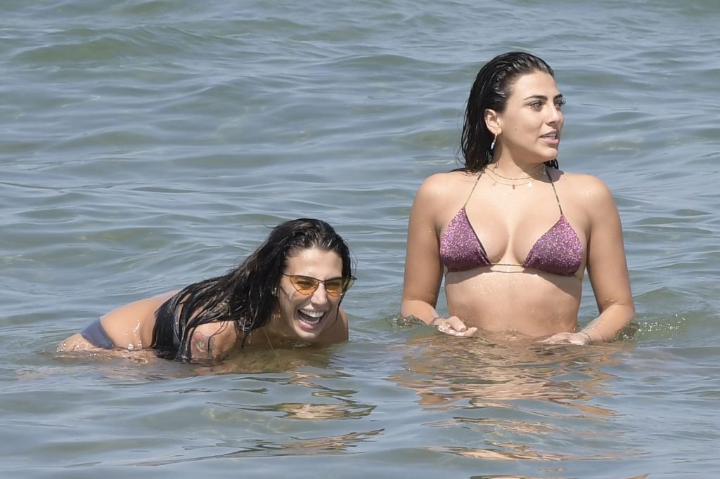 Giulia Salemi and ex GF Patrizia Bonetti make spicy games in the sea at Papparazzi Beach.