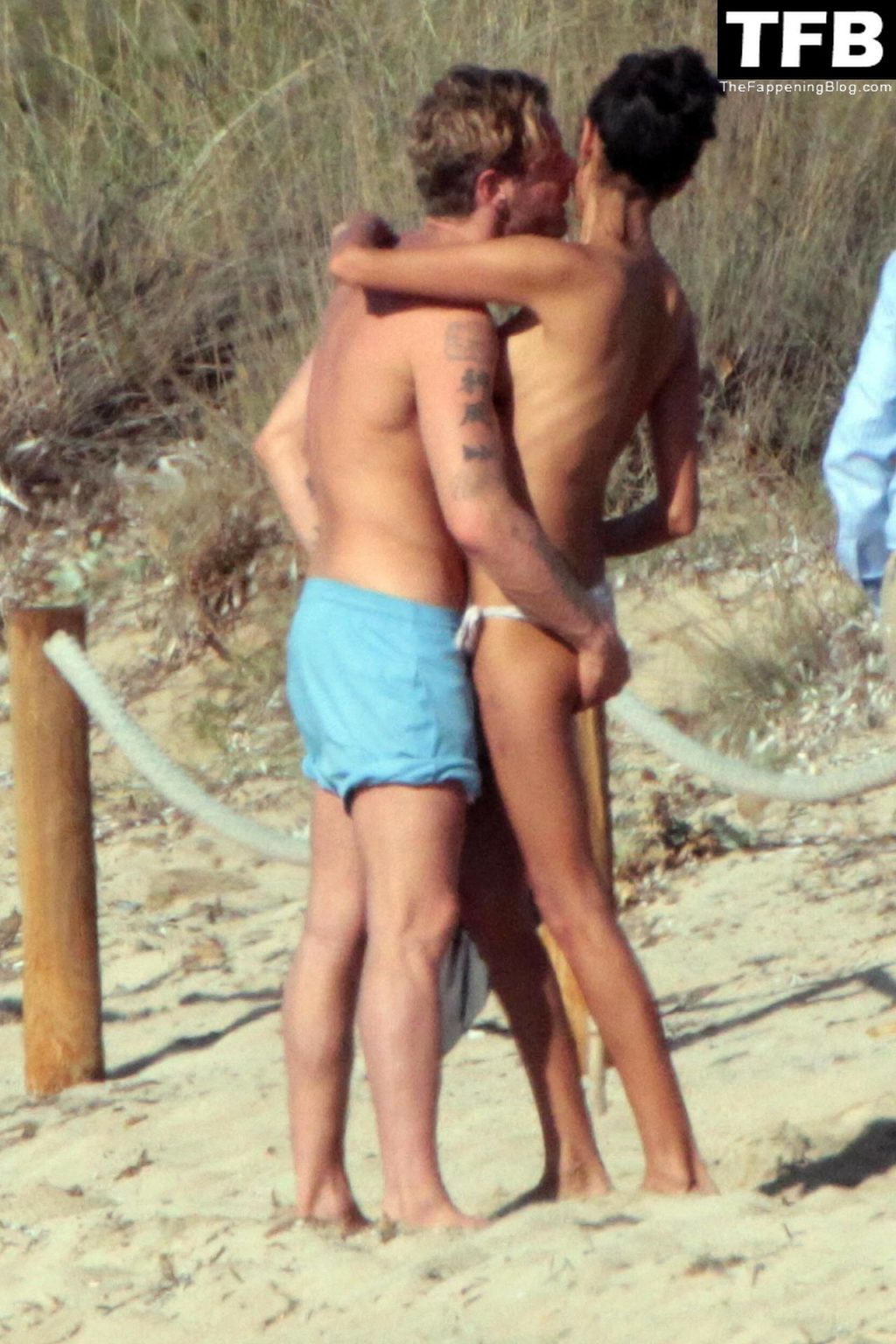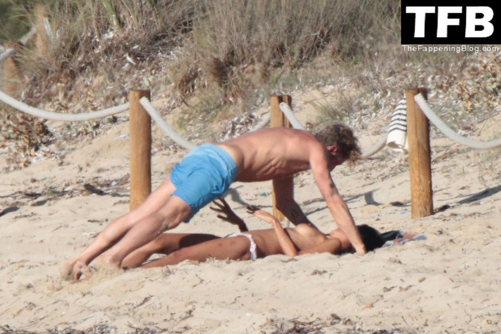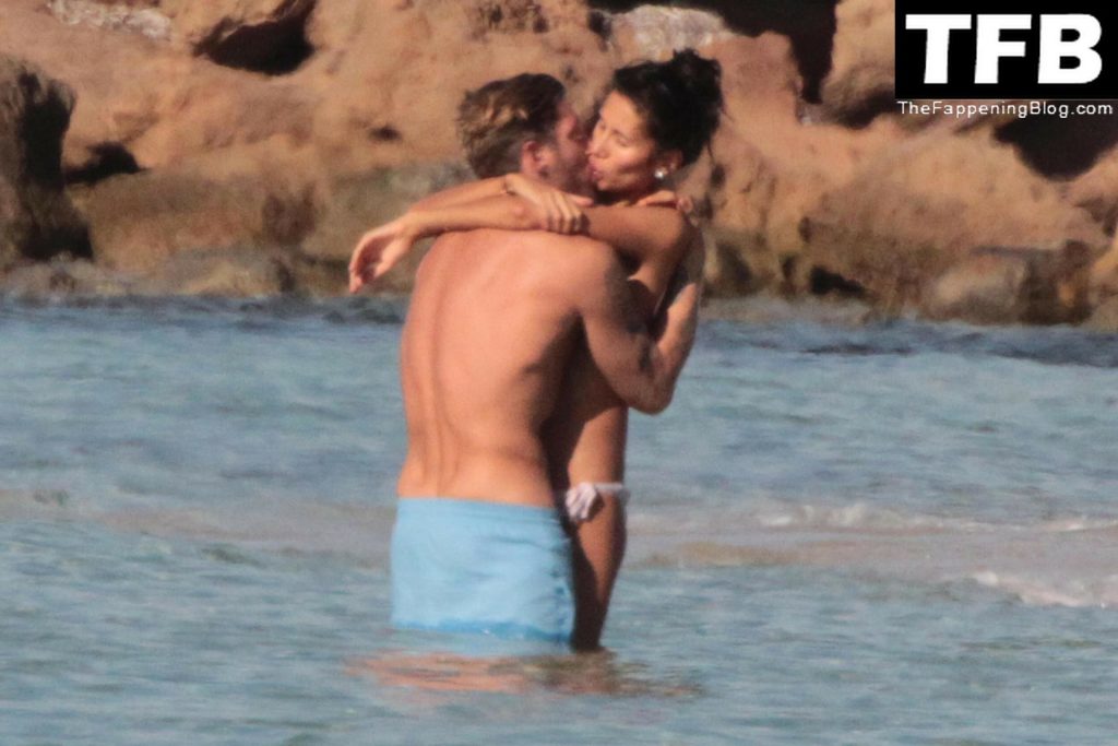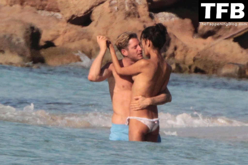 L’imprenditore italiano Lapo Elkann e la topless Goga Ashkenazi sono stati visti mentre si baciano sulla spiaggia di Ibiza, 17/10/2012.