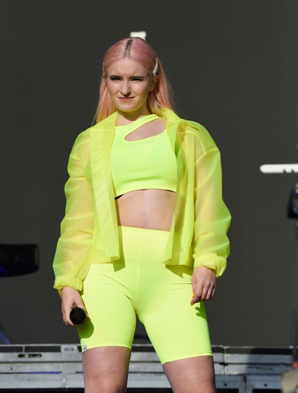 Grace Chatto (Clean Bandit) è stata fotografata con un abito aderente mentre si esibiva dal vivo al Fusion Festival al Sefton Park di Liverpool, 01/09/2019.