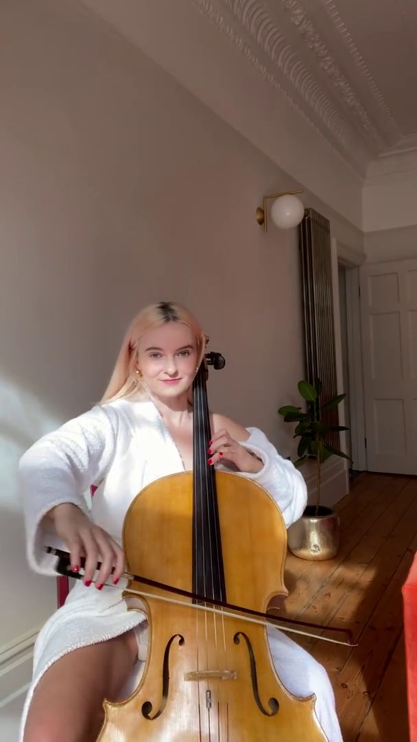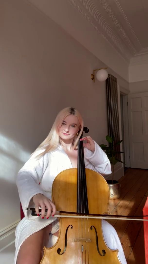 La cantante/musicista inglese Grace Chatto (Clean Bandit) ha mostrato le sue mutandine bianche mentre suonava il violoncello – Instagram, 23/03/2020.