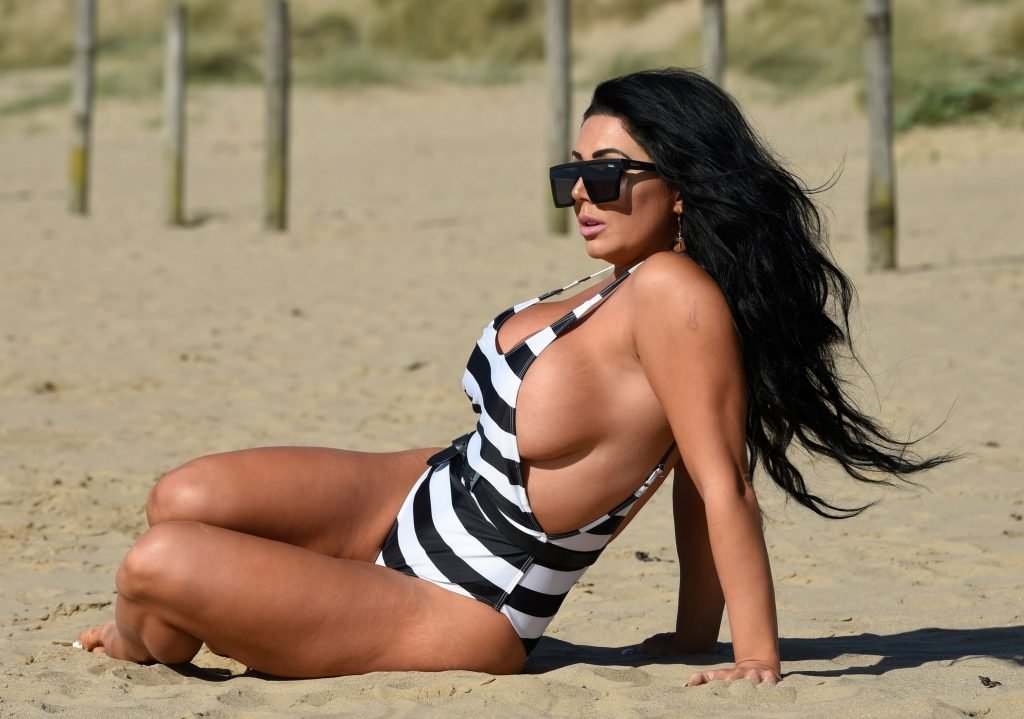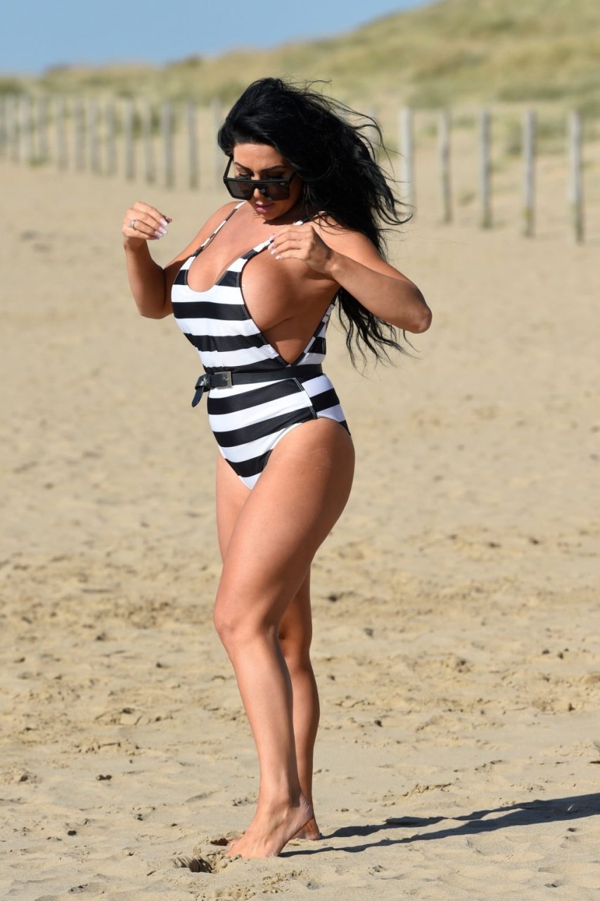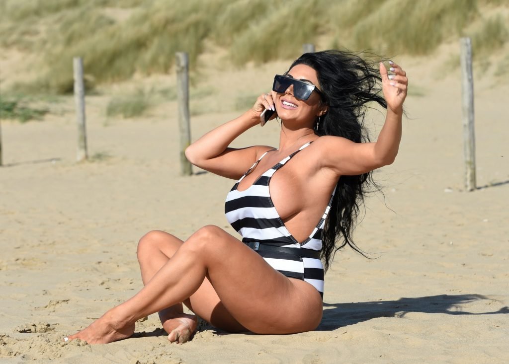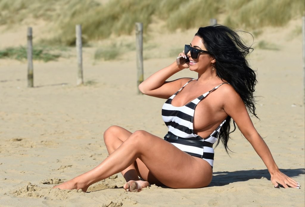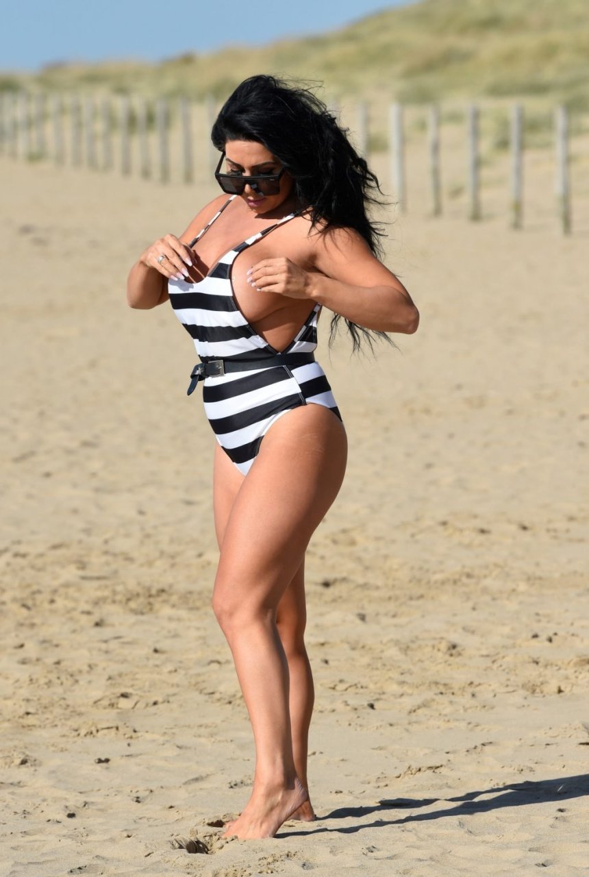 Vincitrice del Glamour Model of the Year 2018, la calda bruna Grace J Teal offre una mostra molto prosperosa mentre si gode la spiaggia durante una vacanza in Spagna, 10/04/2018.