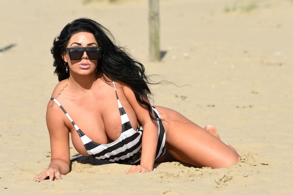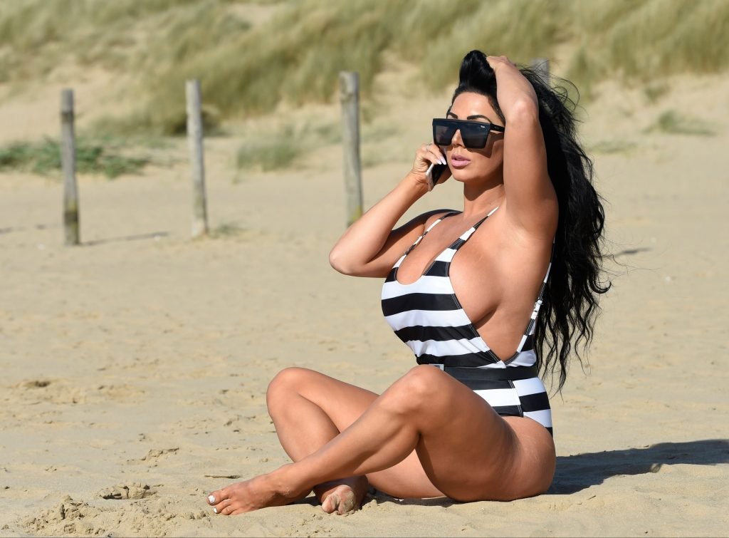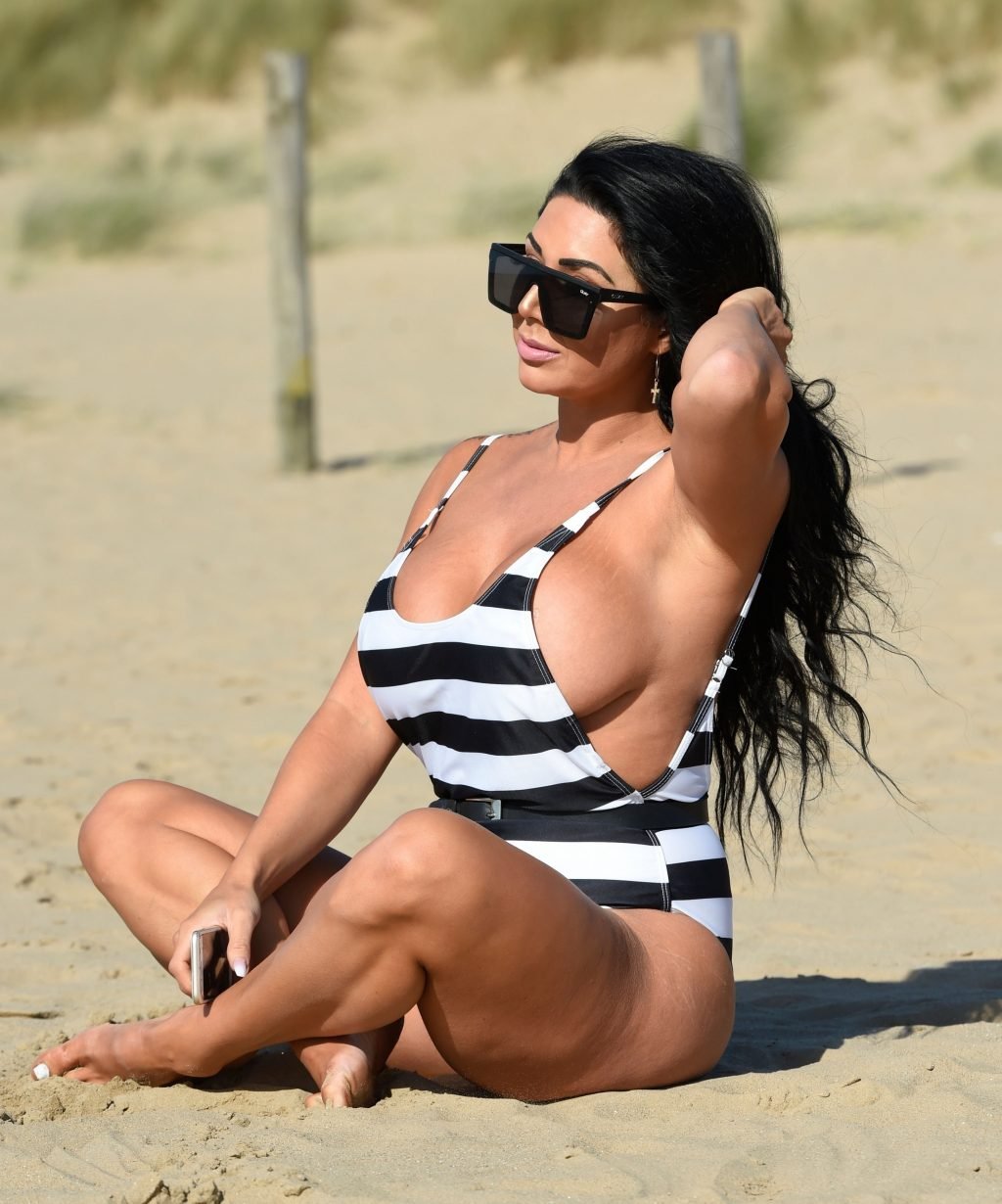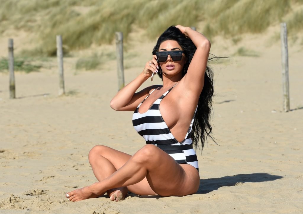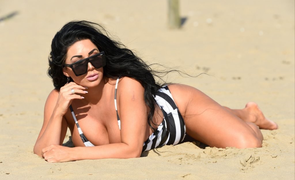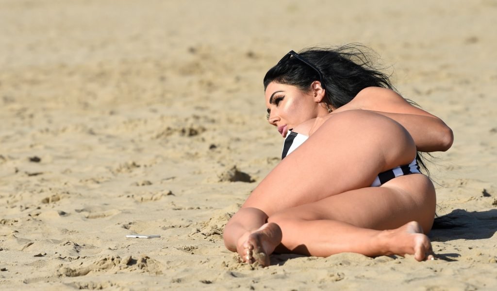 Vincitrice del Glamour Model of the Year 2018, la calda bruna Grace J Teal offre una mostra molto prosperosa mentre si gode la spiaggia durante una vacanza in Spagna, 10/04/2018.