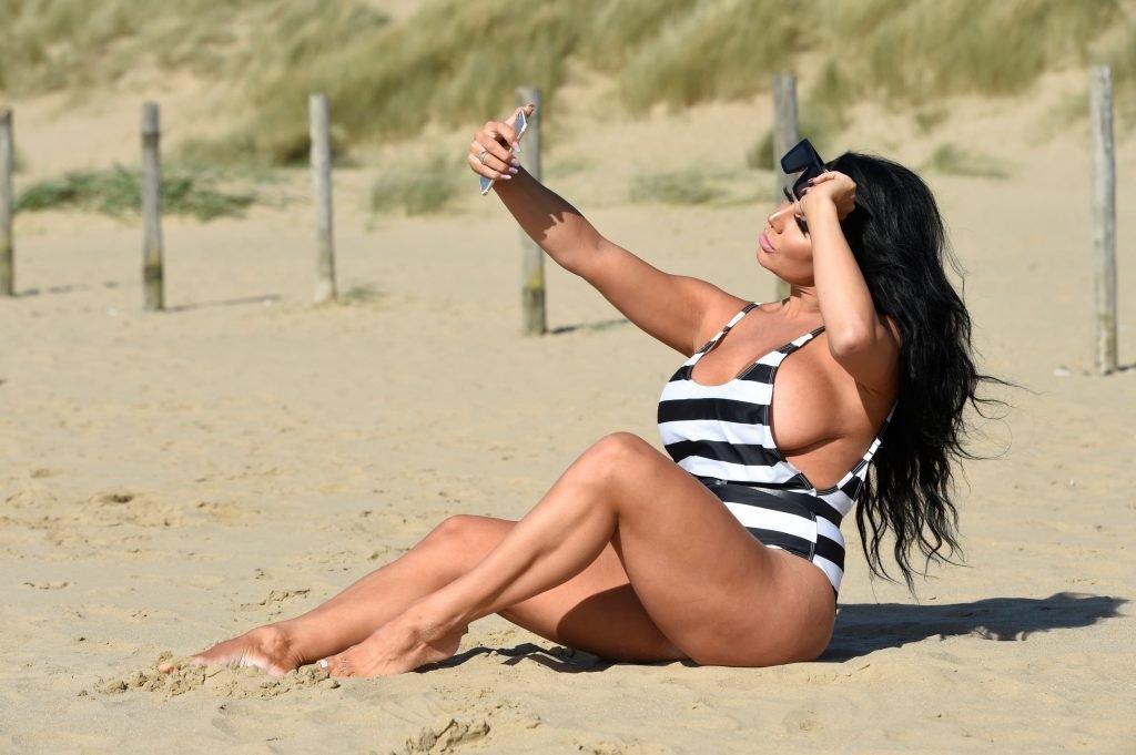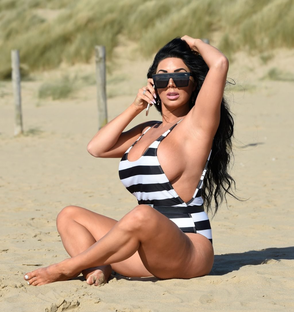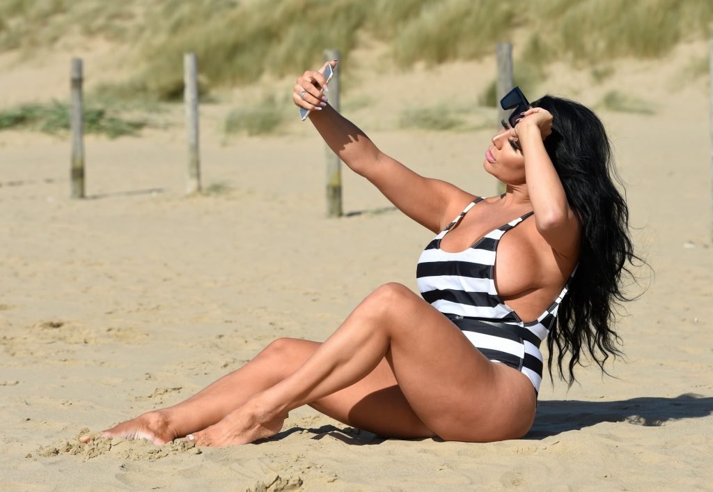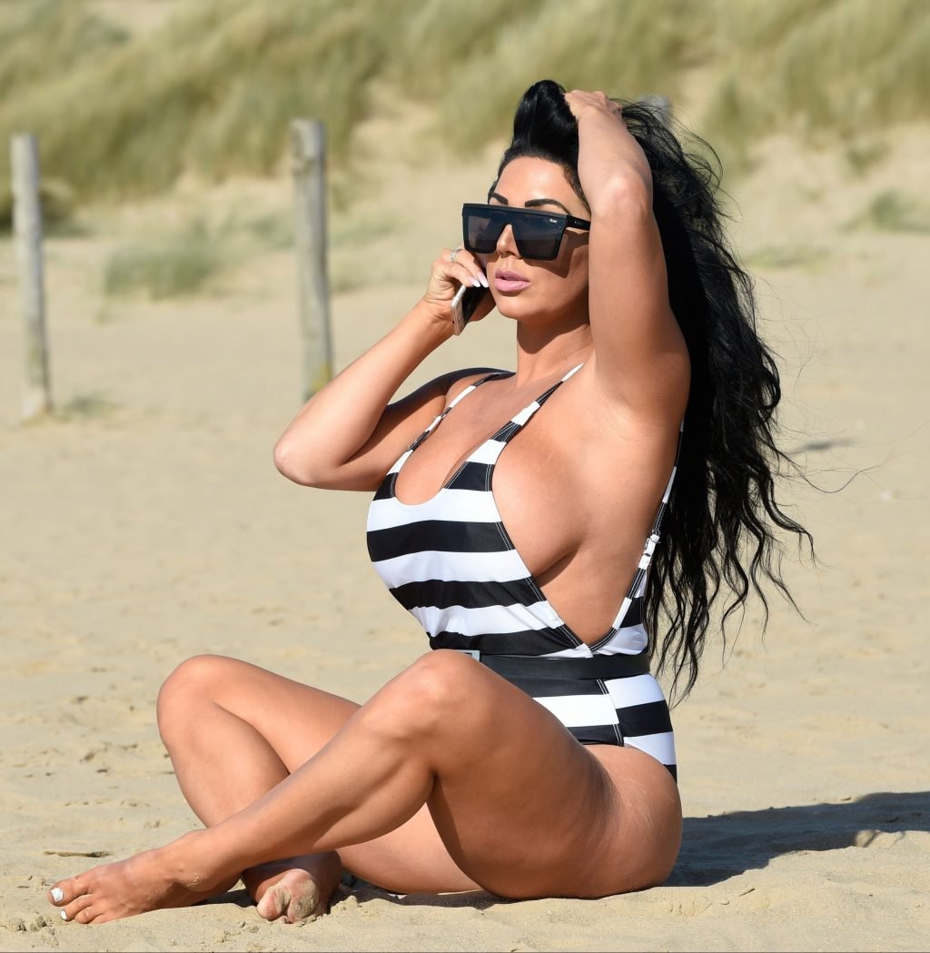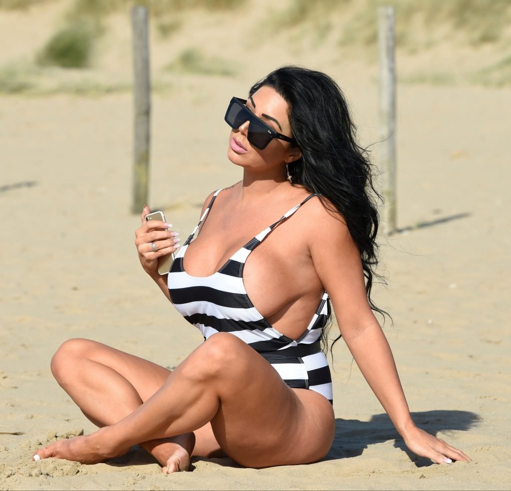 Vincitrice del Glamour Model of the Year 2018, la calda bruna Grace J Teal offre una mostra molto prosperosa mentre si gode la spiaggia durante una vacanza in Spagna, 10/04/2018.