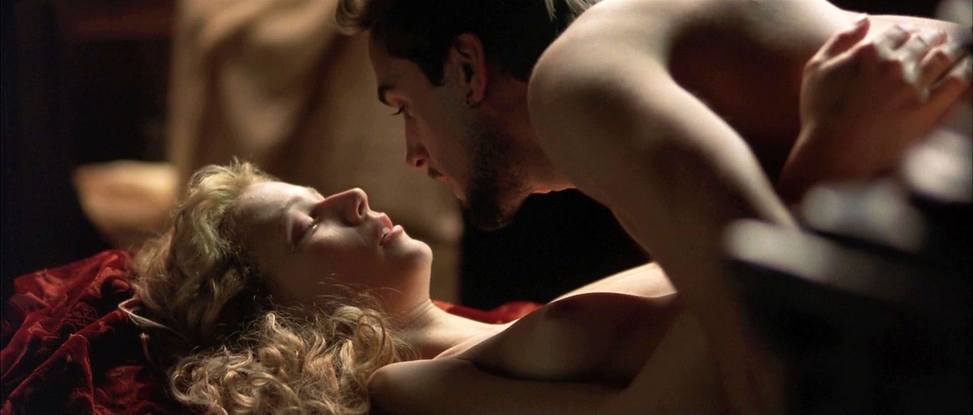 Viola (Gwyneth Paltrow) espone il suo seno destro, poi quello sinistro, con Will (Joseph Fiennes)! Poi Viola mostra i suoi seni mentre fugge dal letto del suo amante.