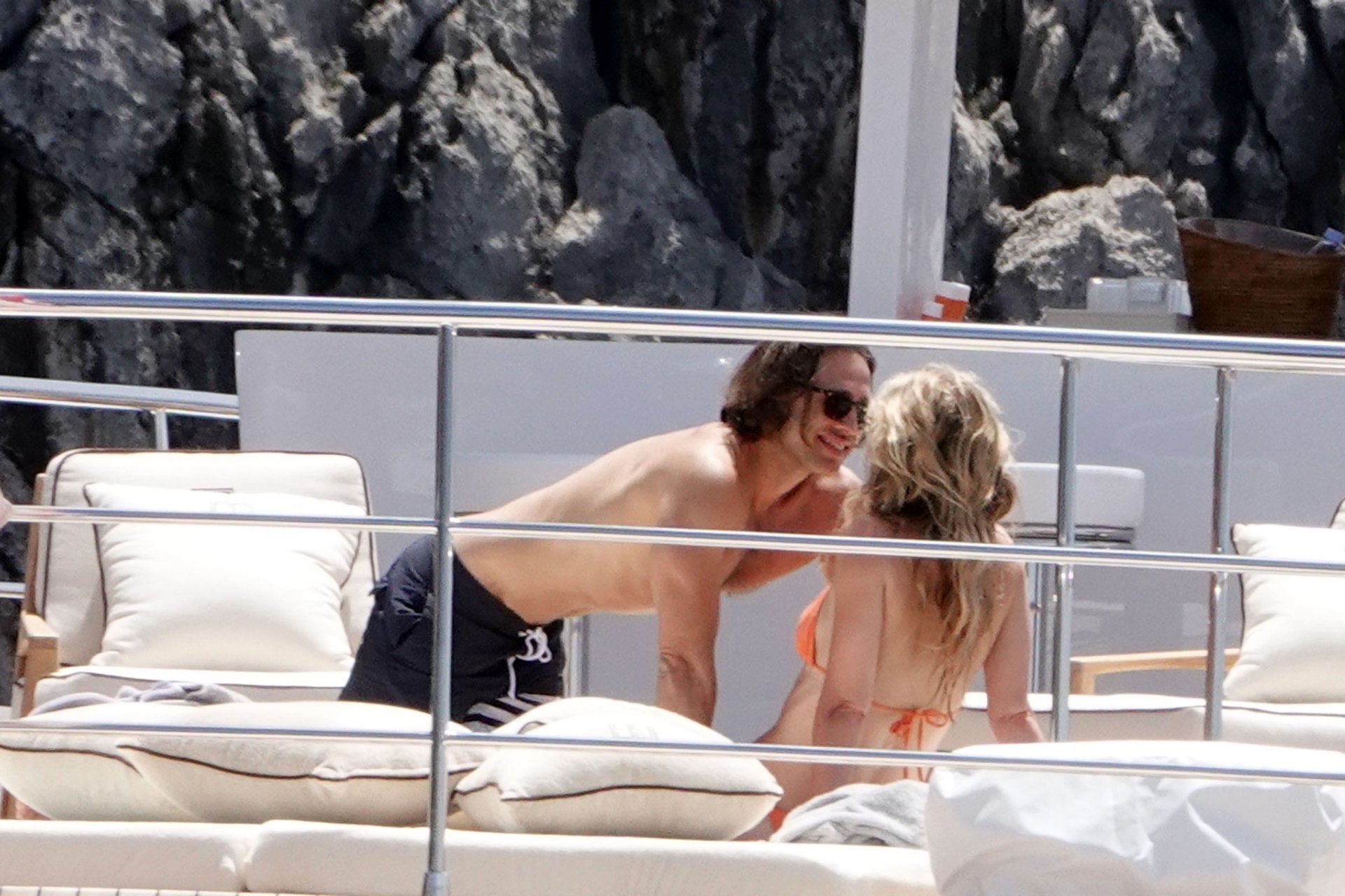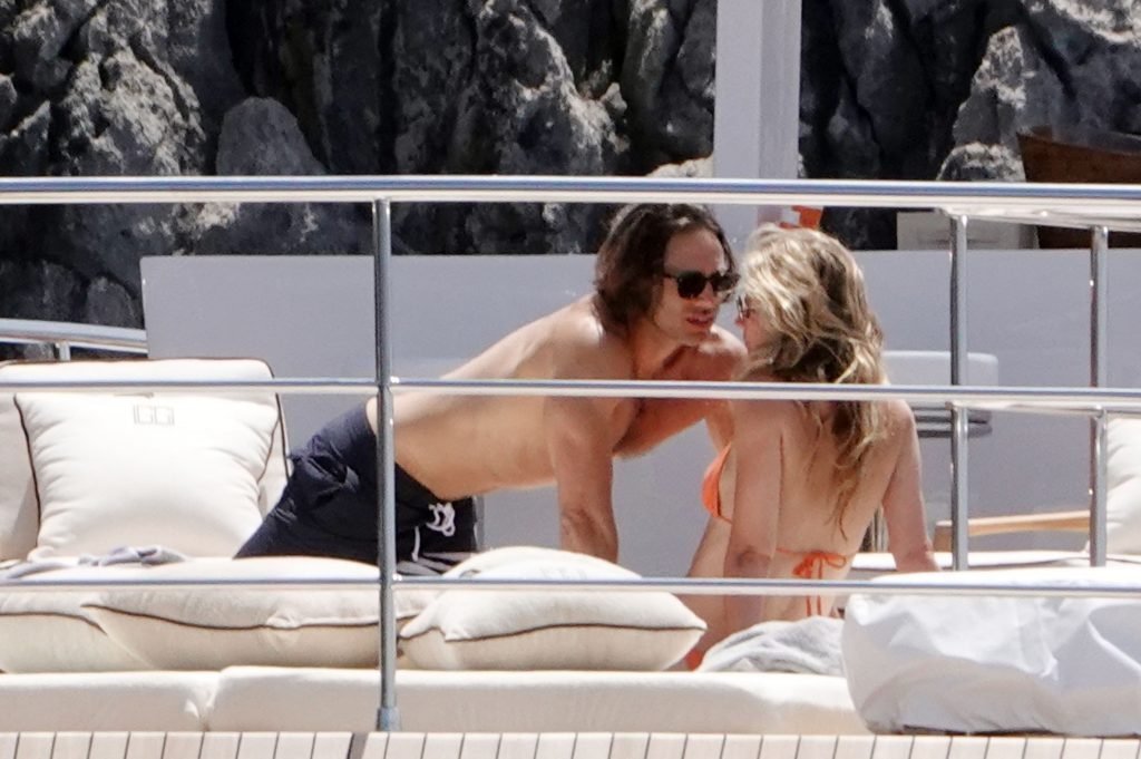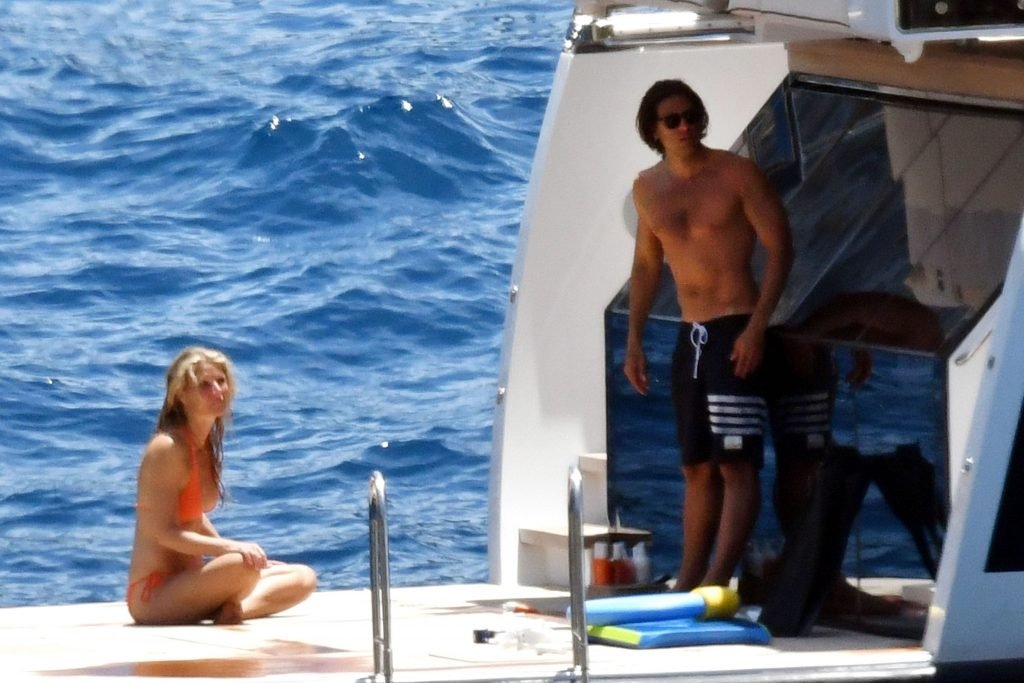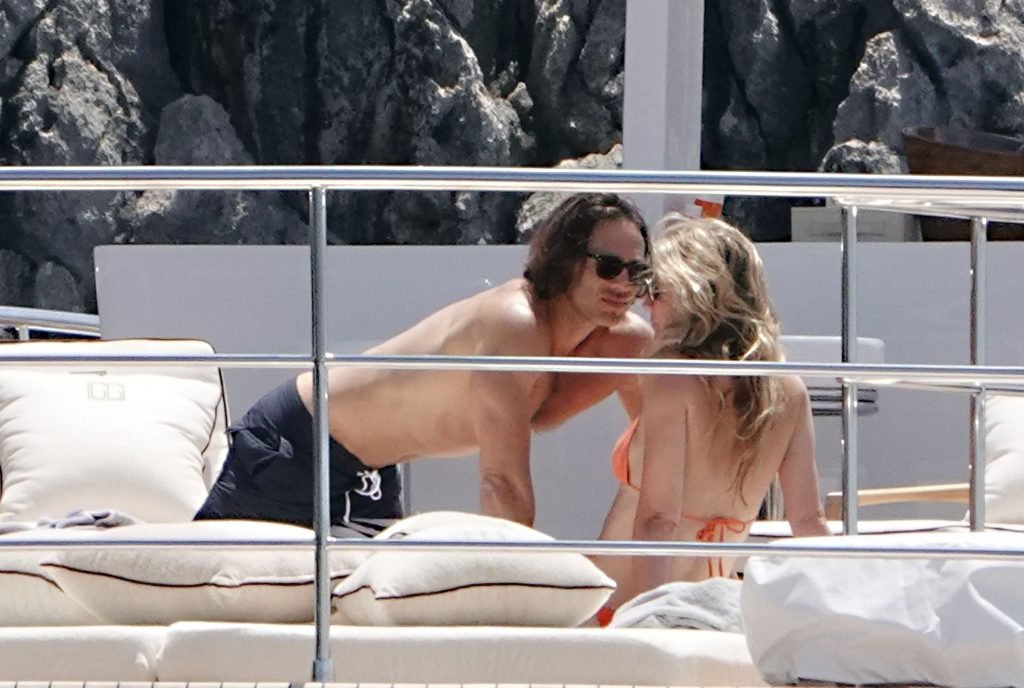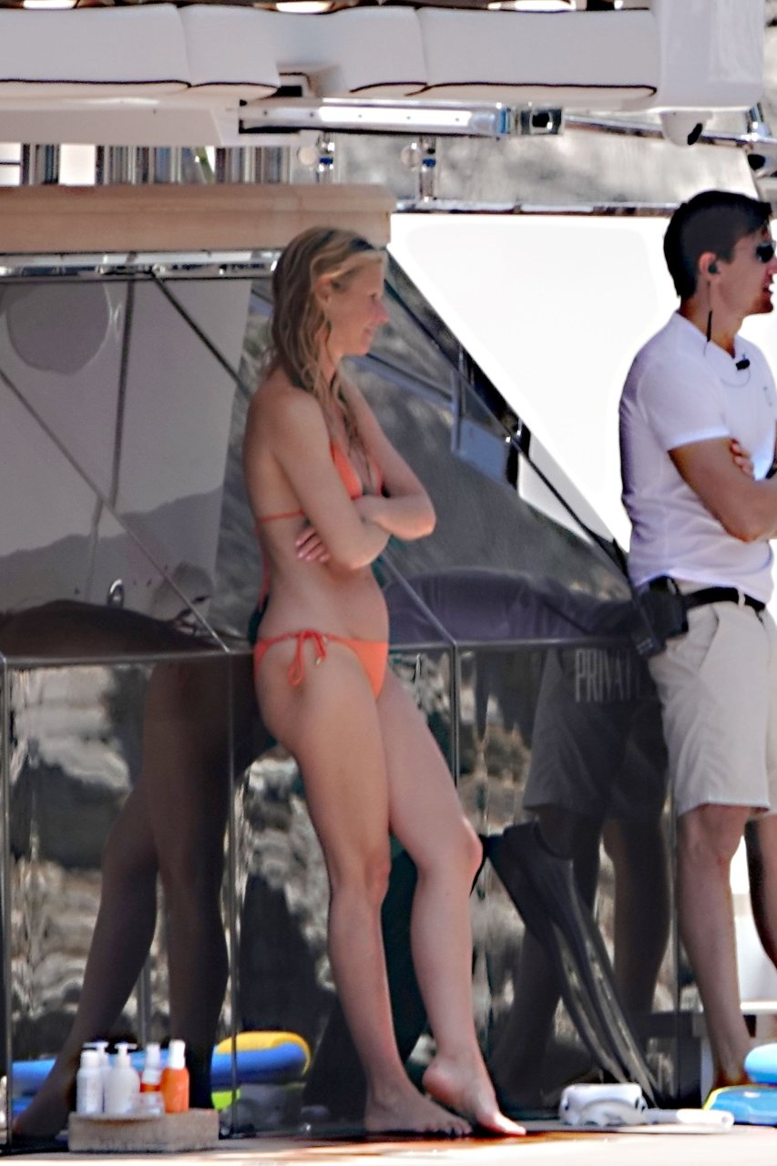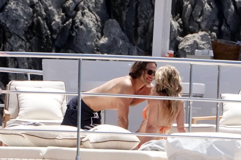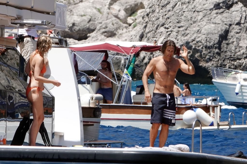 Attrice Gwyneth Paltrow, 45 anni, fotografata con il fidanzato Brad Falchuk, 47 anni, in vacanza a Capri, 24/06/2018. Gwyneth e Brad sono stati fotografati mentre si godevano la loro romantica vacanza e mostravano affetto pubblico mentre lei prendeva il sole sulla barca. La coppia è stata fotografata mentre nuotava dietro la barca. Gwyneth ha mostrato il suo corpo tonico e sexy in bikini indossando un bikini arancione brillante.
