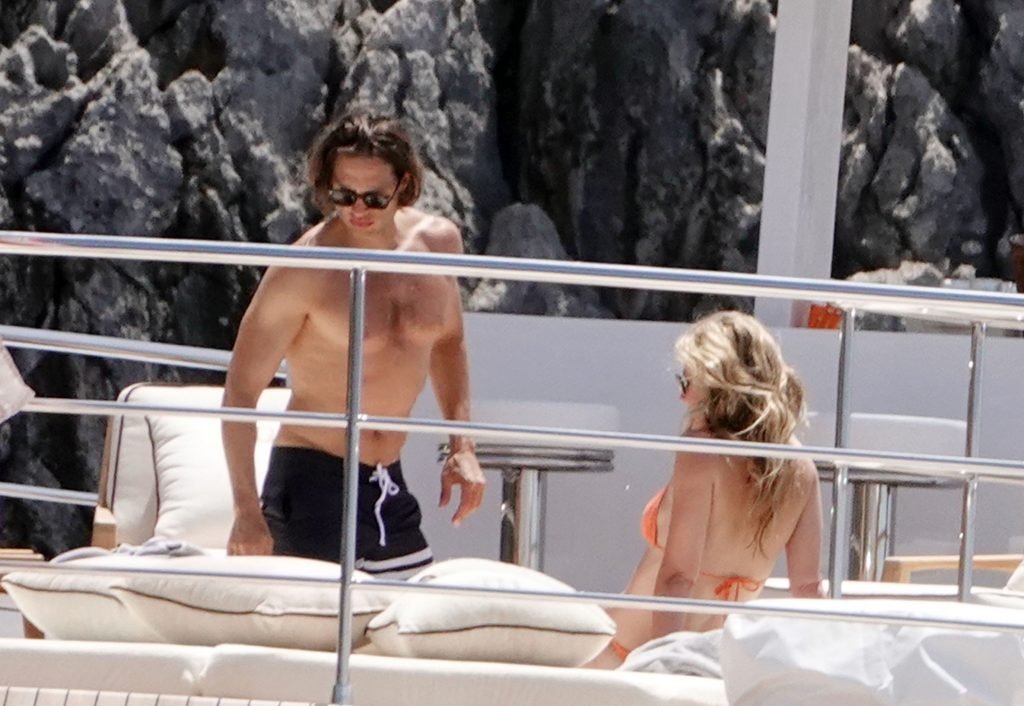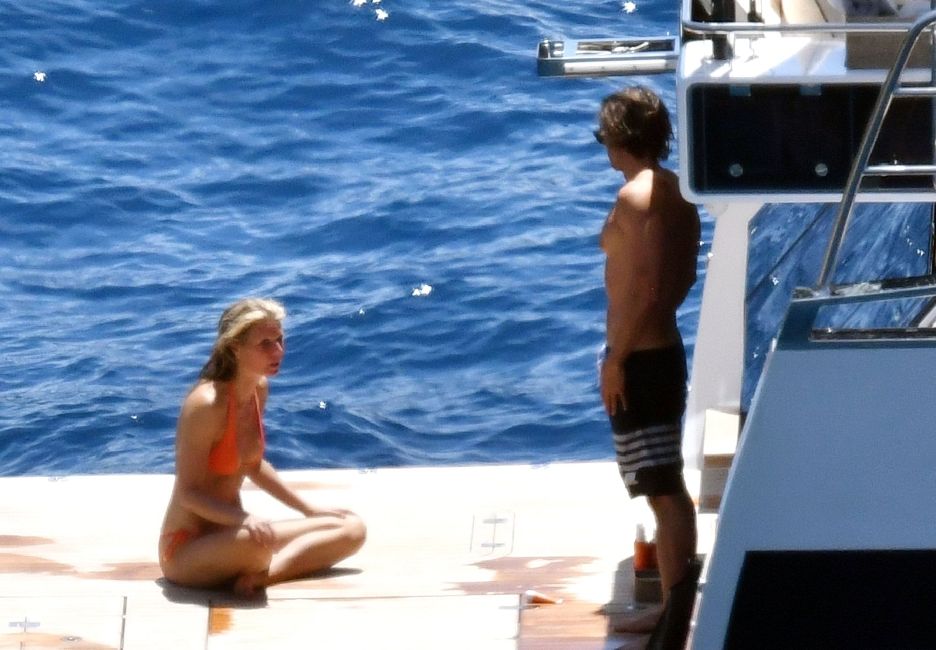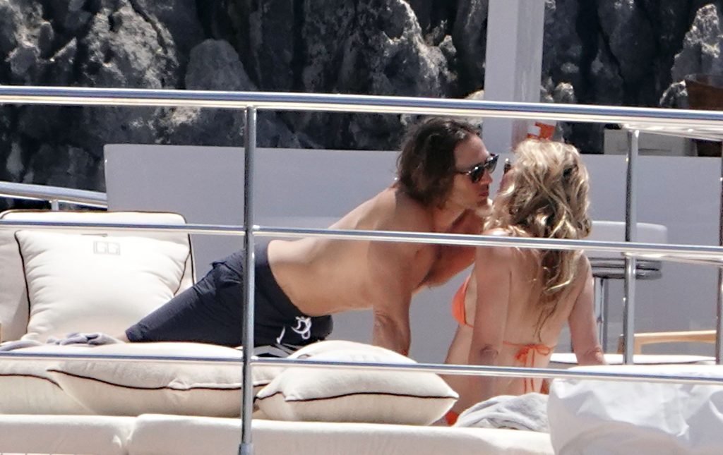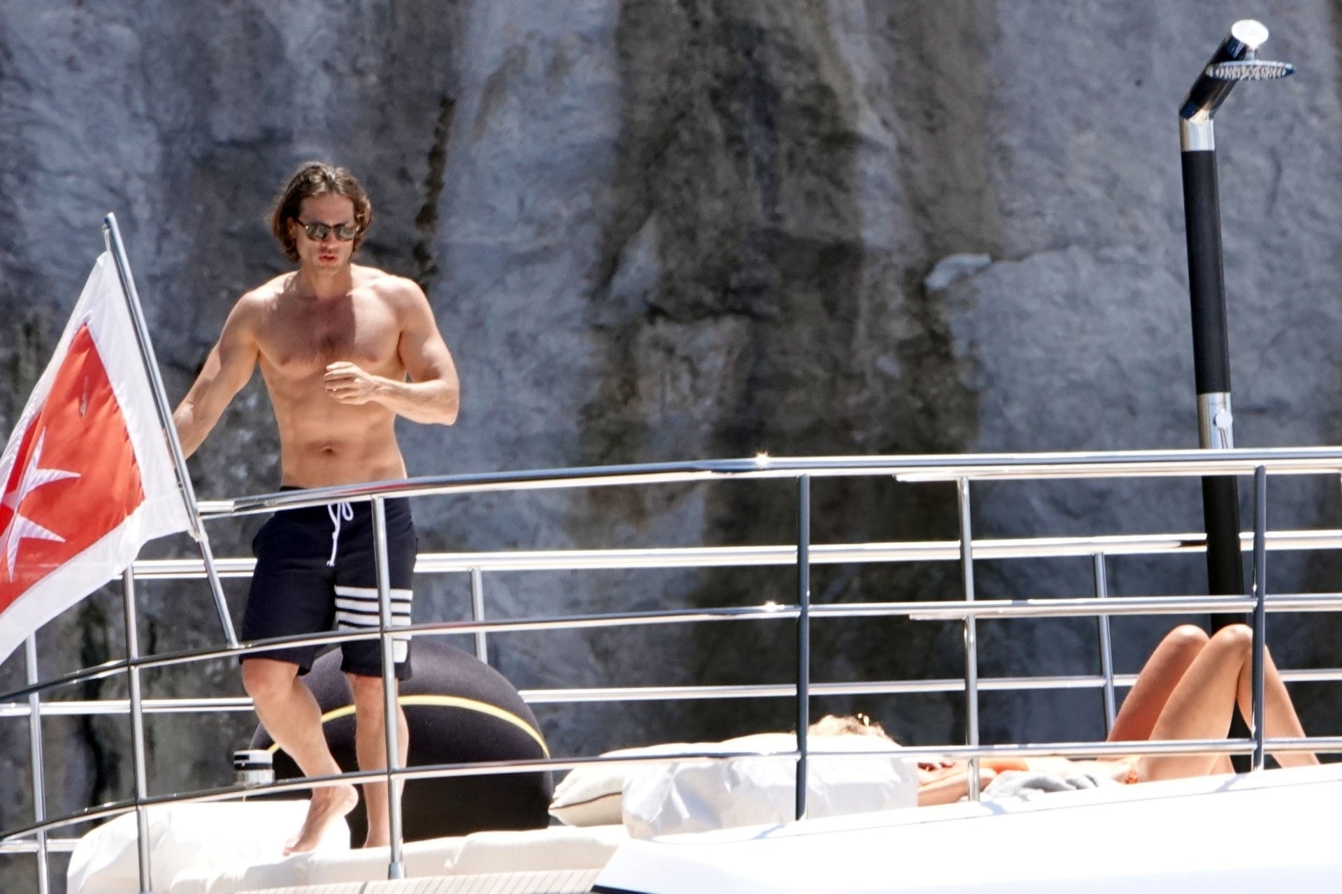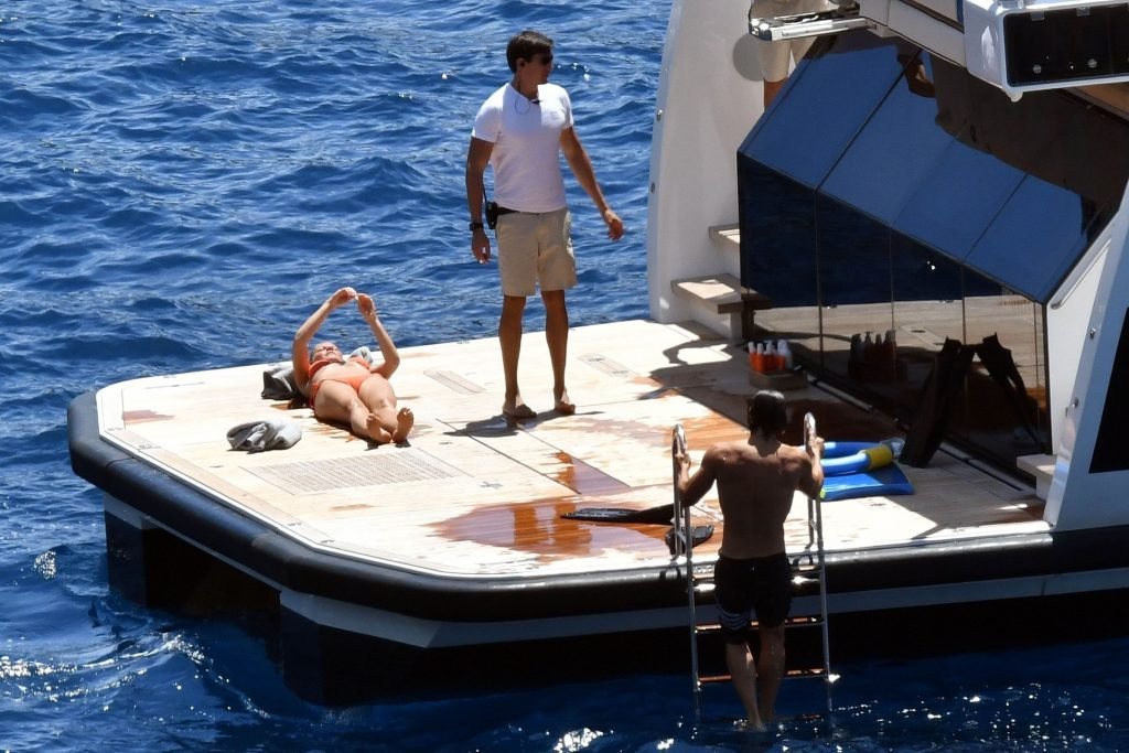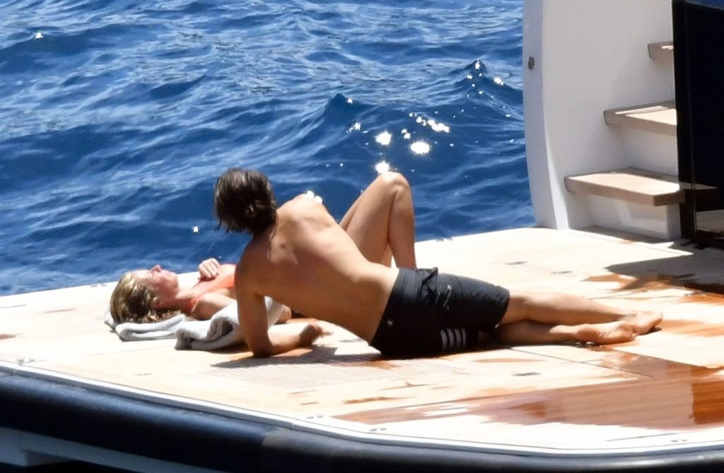 Attrice Gwyneth Paltrow, 45 anni, fotografata con il fidanzato Brad Falchuk, 47 anni, in vacanza a Capri, 24/06/2018. Gwyneth e Brad sono stati fotografati mentre si godevano la loro romantica vacanza e mostravano affetto pubblico mentre lei prendeva il sole sulla barca. La coppia è stata fotografata mentre nuotava dietro la barca. Gwyneth ha mostrato il suo corpo tonico e sexy in bikini indossando un bikini arancione brillante.