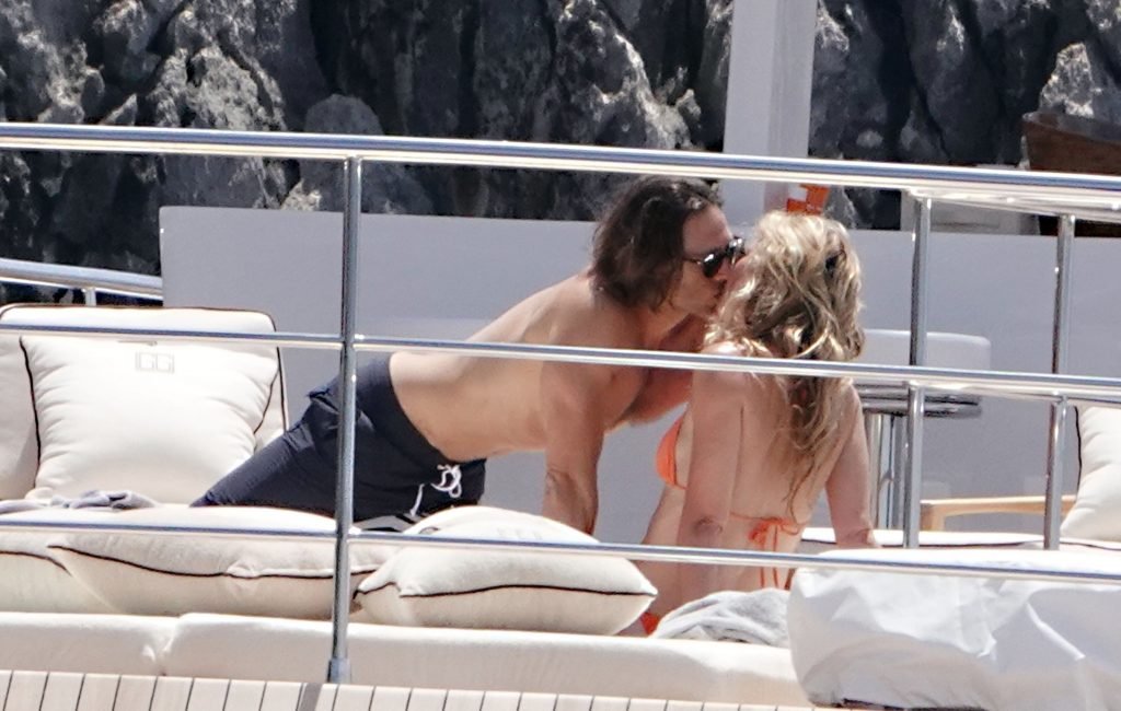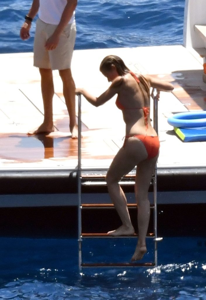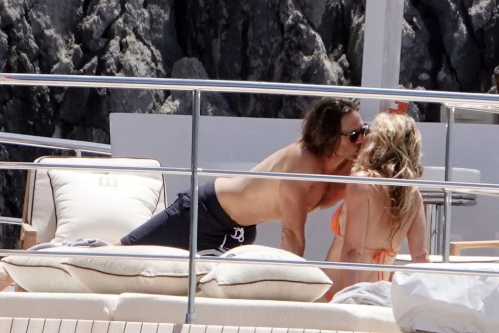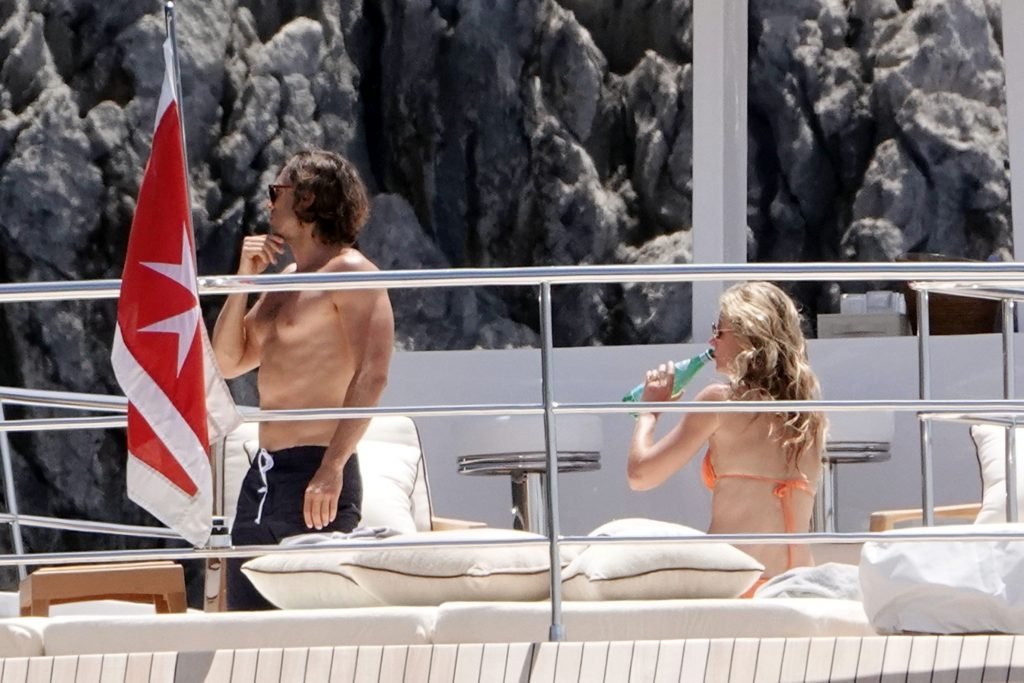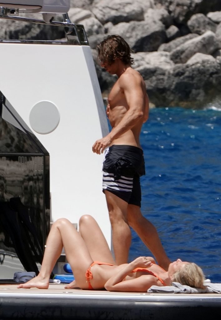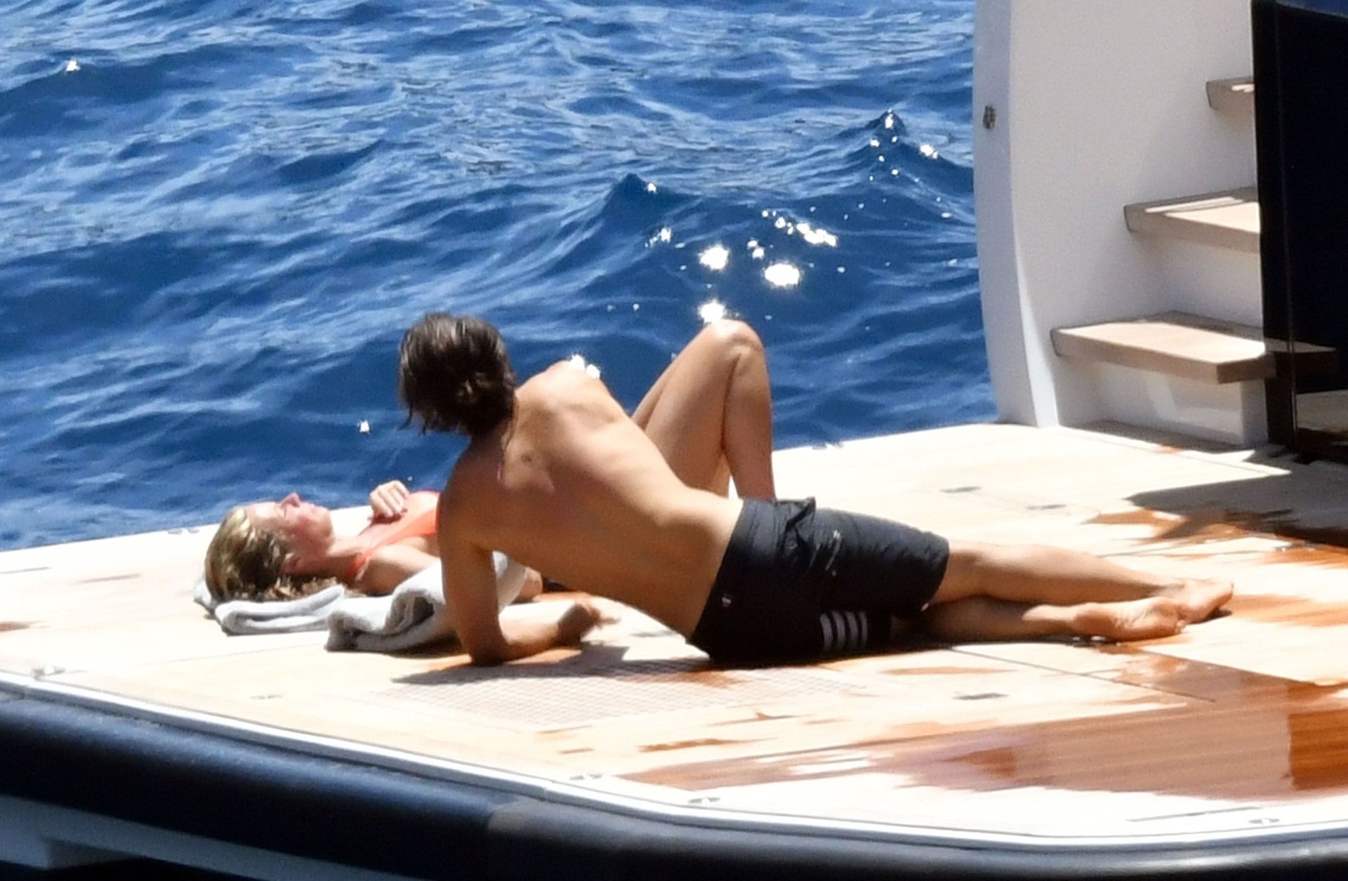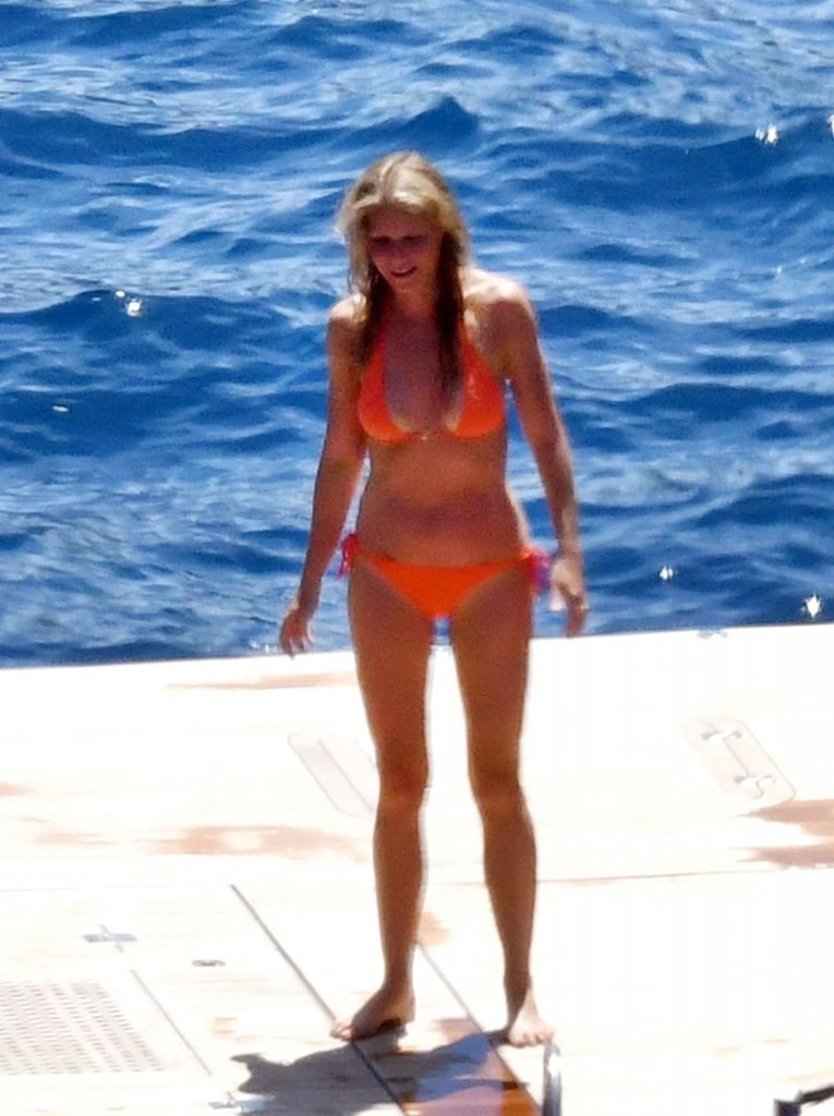 Attrice Gwyneth Paltrow, 45 anni, fotografata con il fidanzato Brad Falchuk, 47 anni, in vacanza a Capri, 24/06/2018. Gwyneth e Brad sono stati fotografati mentre si godevano la loro romantica vacanza e mostravano affetto pubblico mentre lei prendeva il sole sulla barca. La coppia è stata fotografata mentre nuotava dietro la barca. Gwyneth ha mostrato il suo corpo tonico e sexy in bikini indossando un bikini arancione brillante.