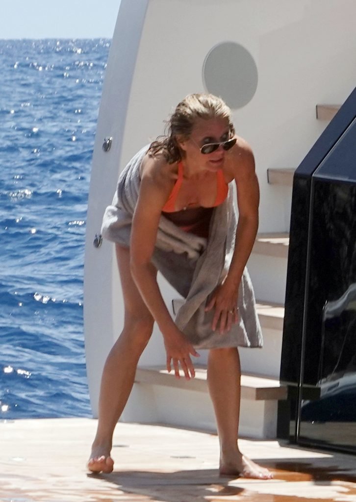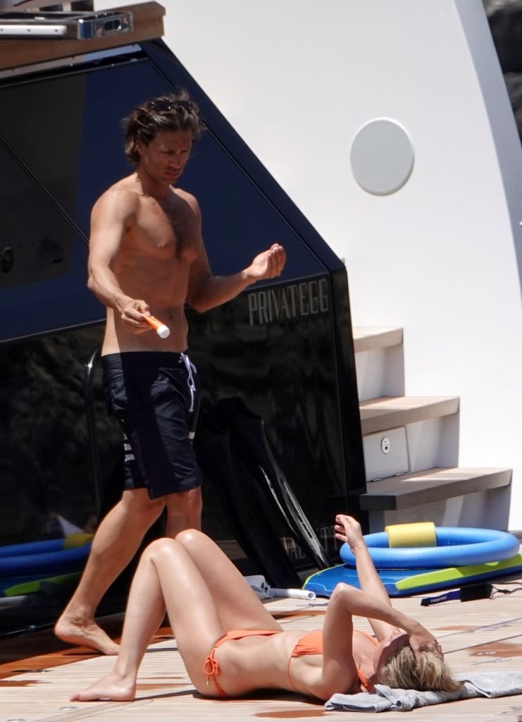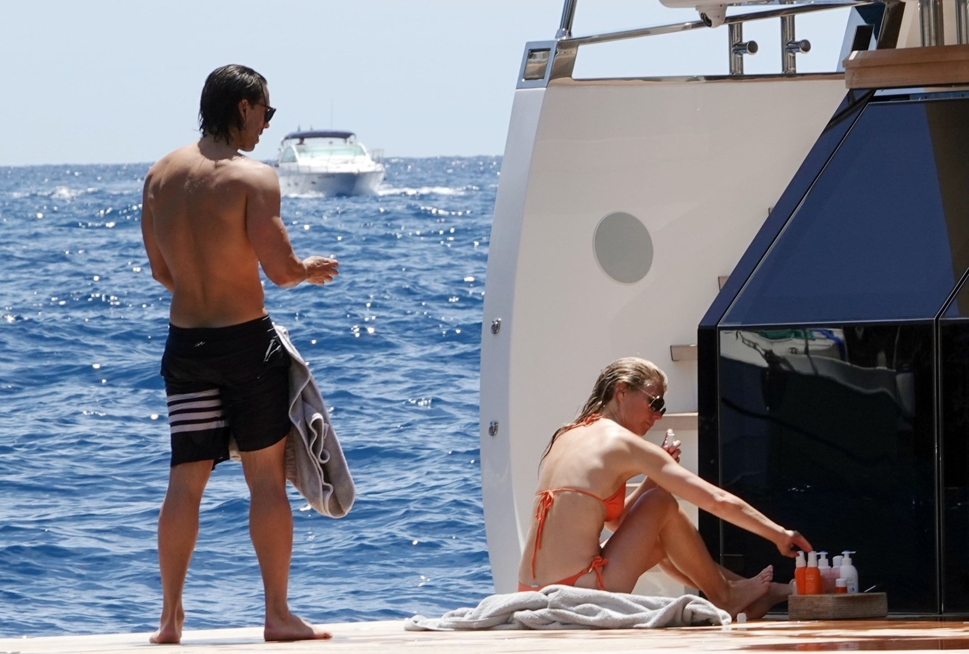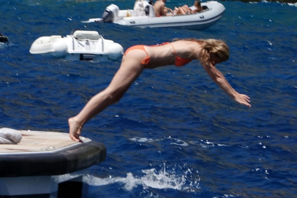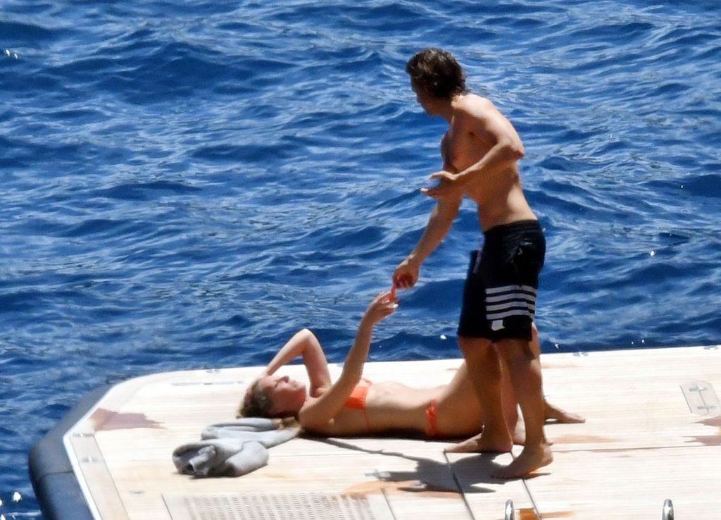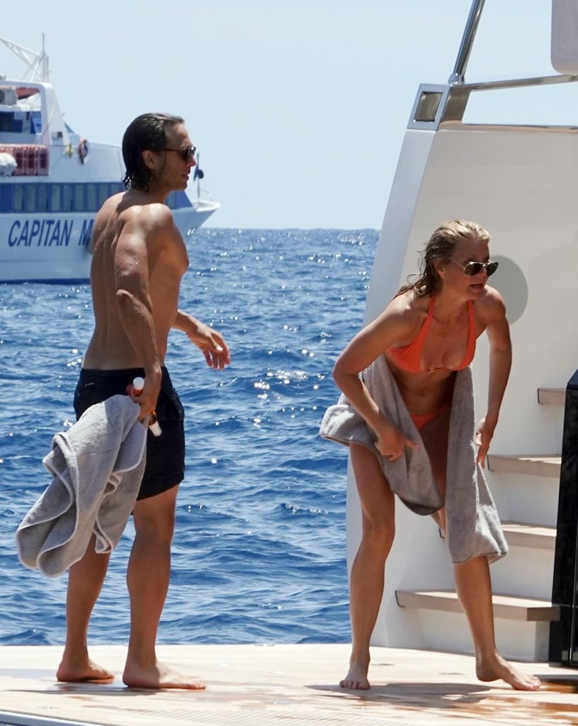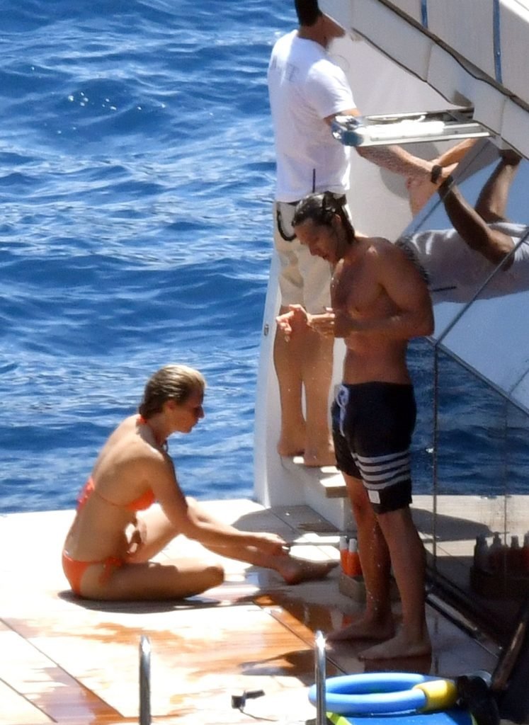 Attrice Gwyneth Paltrow, 45 anni, fotografata con il fidanzato Brad Falchuk, 47 anni, in vacanza a Capri, 24/06/2018. Gwyneth e Brad sono stati fotografati mentre si godevano la loro romantica vacanza e mostravano affetto pubblico mentre lei prendeva il sole sulla barca. La coppia è stata fotografata mentre nuotava dietro la barca. Gwyneth ha mostrato il suo corpo tonico e sexy in bikini indossando un bikini arancione brillante.
