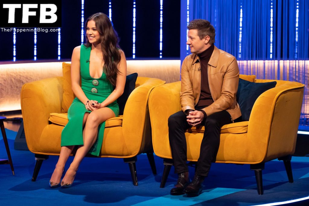 L’attrice e cantante americana Hailee Steinfeld appare sensuale in un vestito verde a The Jonathan Ross Show a Londra, 12/11/2021.