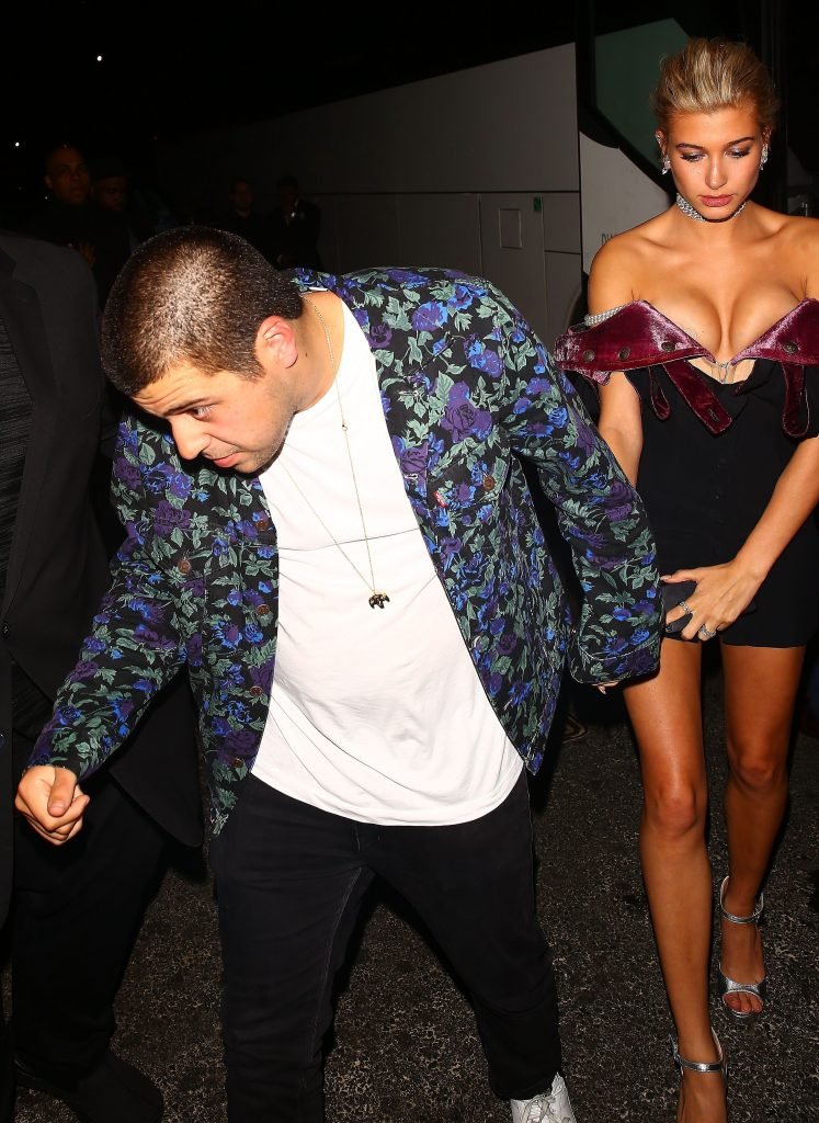 Hailey Baldwin si tiene per mano con il fidanzato mentre si dirige alla festa dopo il Met Gala al night club 1 Oak a NYC, 02/05/2017. Hailey Baldwin è una modella di Tucson (USA). Età – 20 anni (22 novembre 1996).