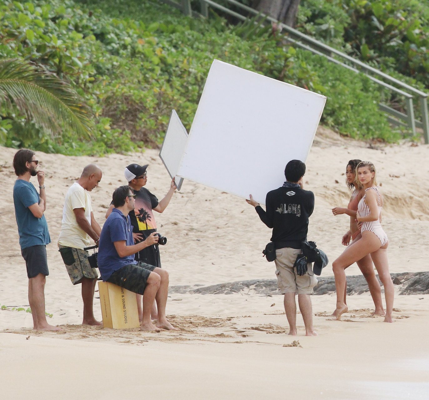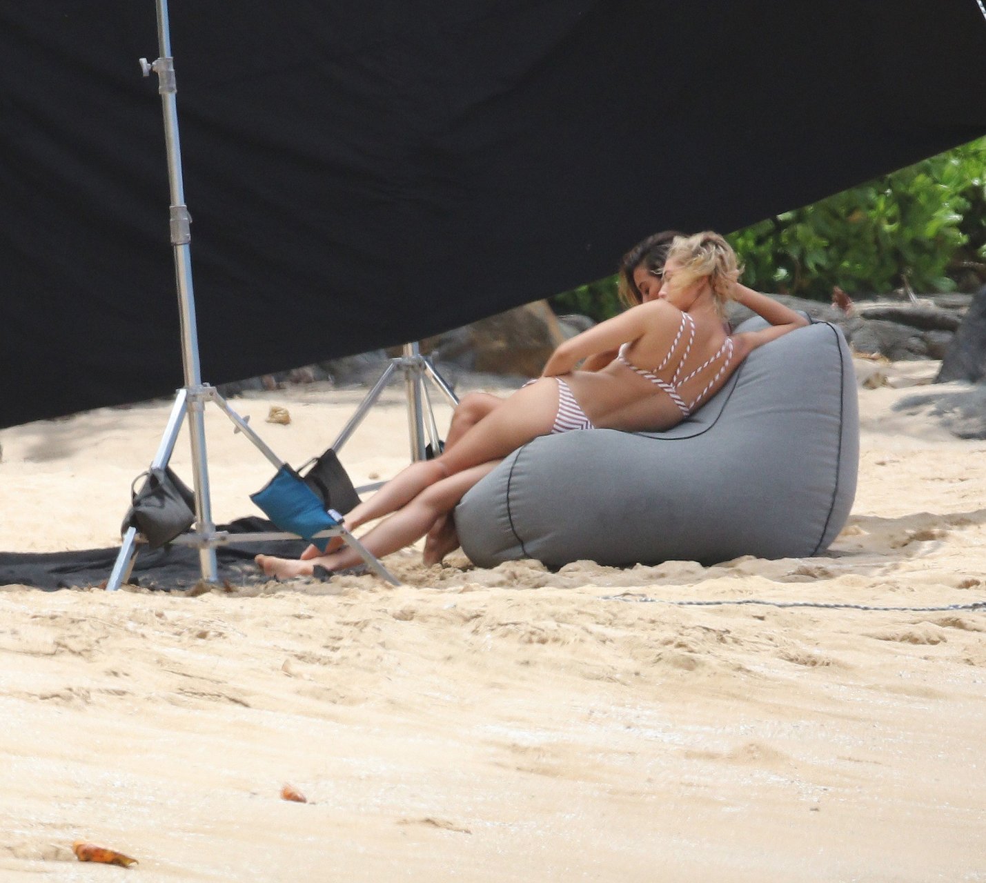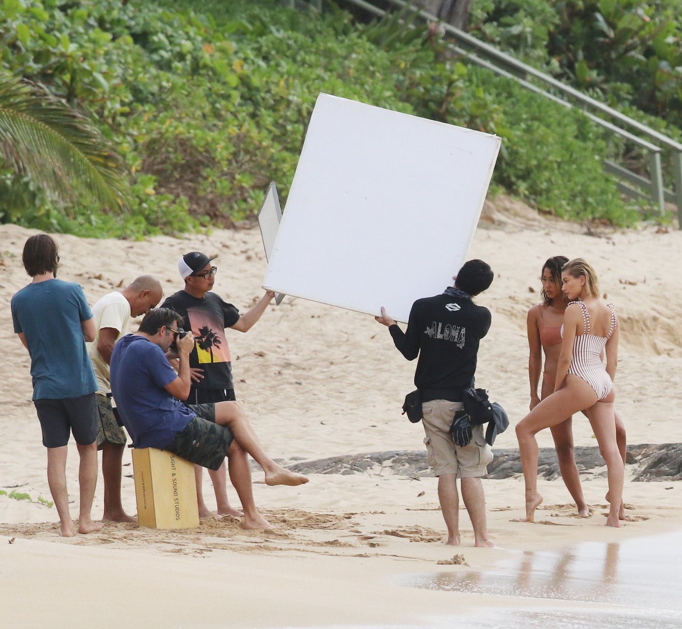 Hailey Baldwin fa colpo sulla spiaggia alle Hawaii, 31/05/2018. La modella di moda di 21 anni è passata da un bikini intero a righe a un costume da bagno a due pezzi ed è stata accompagnata da un’altra modella in alcune parti del servizio fotografico.