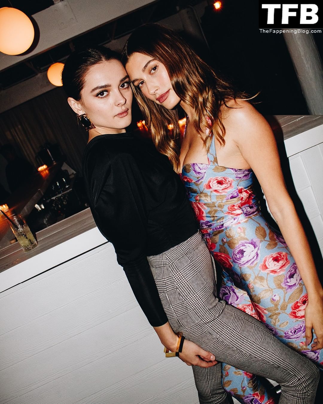 La modella Hailey Bieber sfoggia il suo seno sexy alla cena di Yves Saint Laurent – Instagram, 30/11/2021.