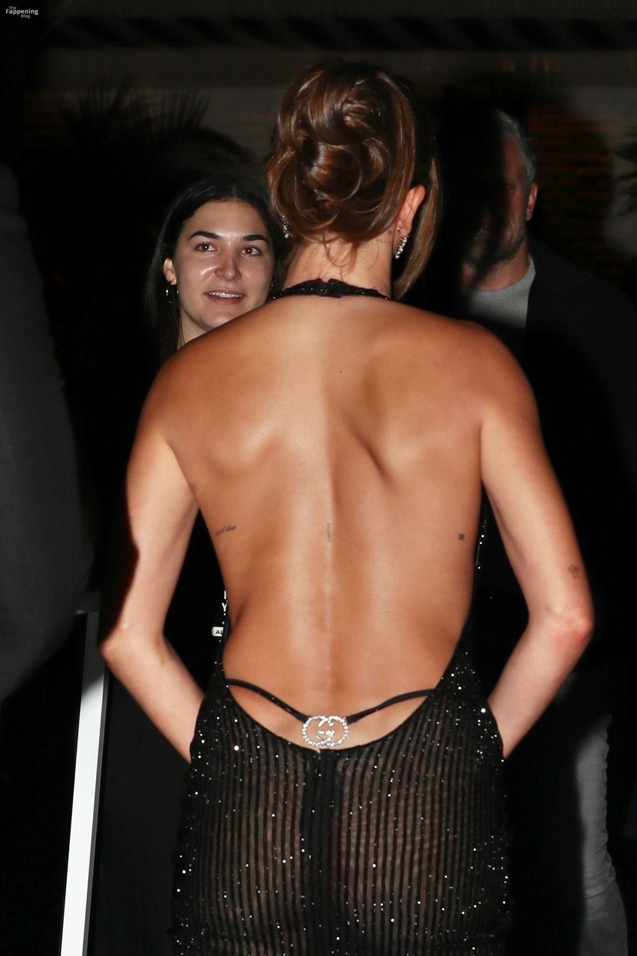 Hailey Bieber stupisce ai GQ Men of the Year a Los Angeles, indossando un abito trasparente, mostrando i suoi capezzoli e un perizoma.
