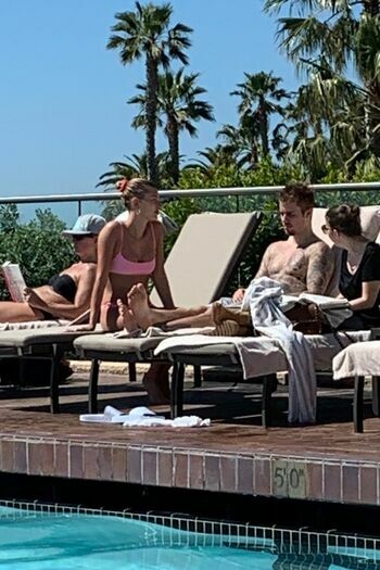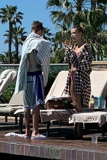 Il cantante sembrava distante ed è stato visto abbracciato da sua madre mentre Hailey trascorreva la maggior parte del tempo immersa in un libro.