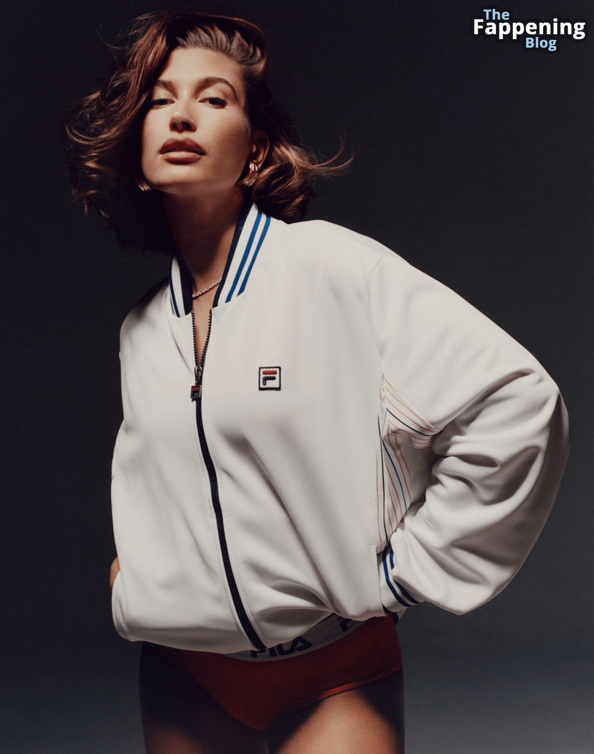 La campagna ruota attorno all’iconica giacca Settanta del ’76. In questi fantastici scatti in studio realizzati da Renell Medrano, Hailey sfoggia outfit ispirati al tennis: gonne, reggiseni sportivi e slip, tutti abbinati a quella mitica giacca. Dani Michelle ha curato lo styling della campagna, puntando tutto su un’eleganza sportiva e un tocco moderno che mette in risalto il gusto raffinato di Hailey.