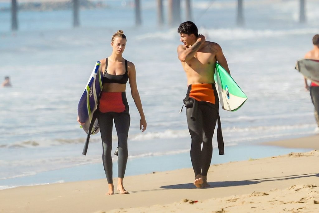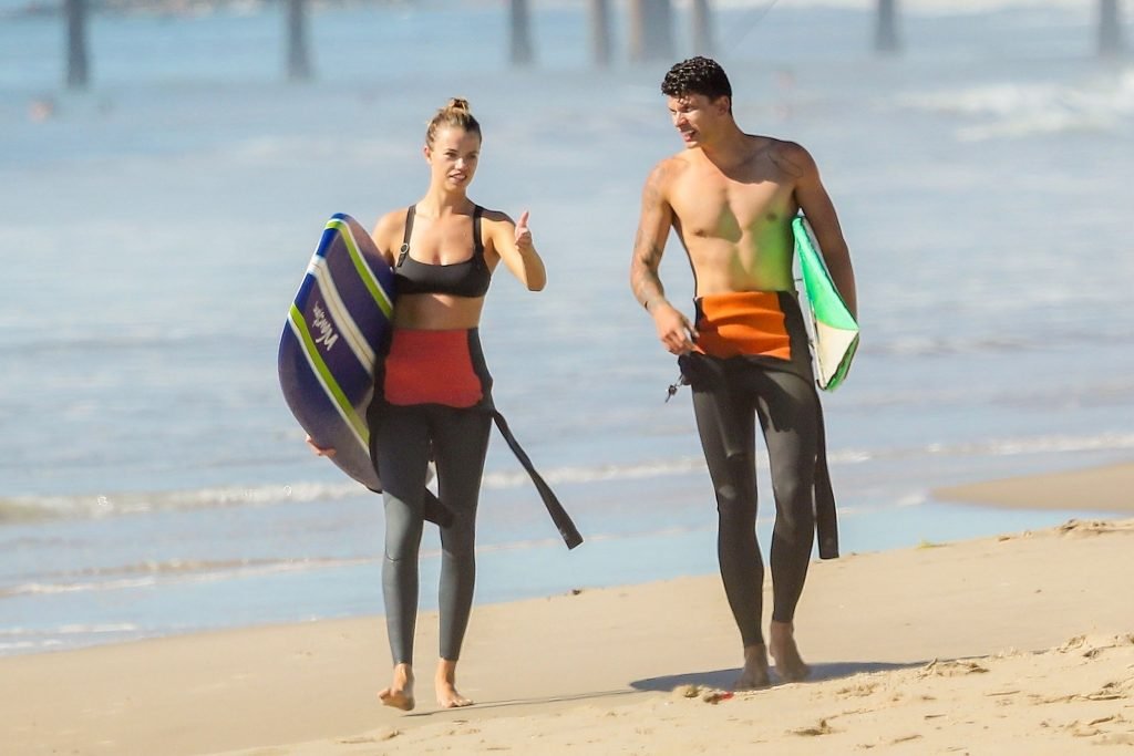 Dopo non aver preso onde, la modella di Sports Illustrated Hailey Clauson (23) e il fidanzato Jullien Herrera lasciano la spiaggia per proseguire la loro giornata a Malibu, 19/10/2018.