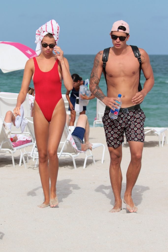 Hailey Clauson è stata vista in un costume da bagno rosso sulla spiaggia di Miami, 23/07/2017. Hailey Clauson è una modella di moda di Thousand Oaks (USA). Età – 22 anni.