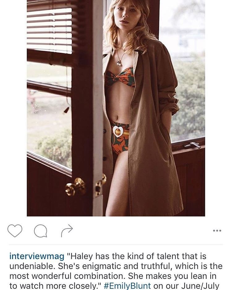 Nuove foto sexy di Haley Bennett scattate da Mikael Jansson per Interview Magazine (giugno/luglio 2016). Bikini, sigarette, lecca-lecca.