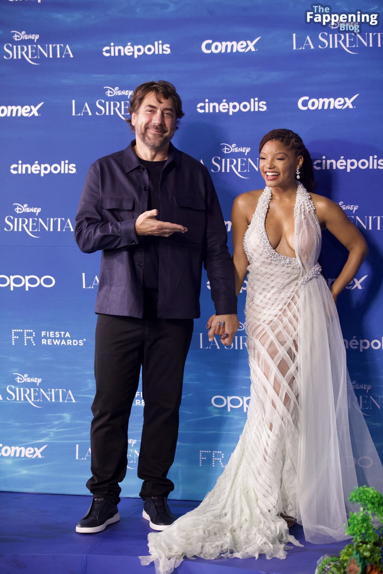 L’attore Javier Bardem e l’attrice Halle Bailey partecipano al red carpet della prima del film “La Sirenetta” al Toreo Parque Central di Città del Messico, 11/05/2023.