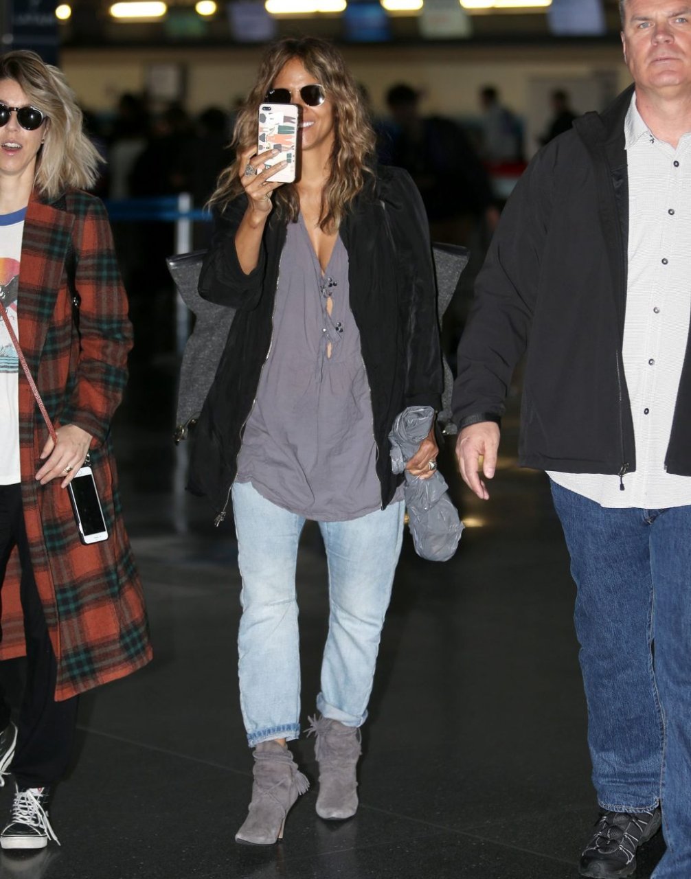 Halle è stata vista mentre portava una bottiglia in una borsa mentre camminava attraverso il terminal. Halle è volata a New York per promuovere il suo nuovo film “John Wick 3”.