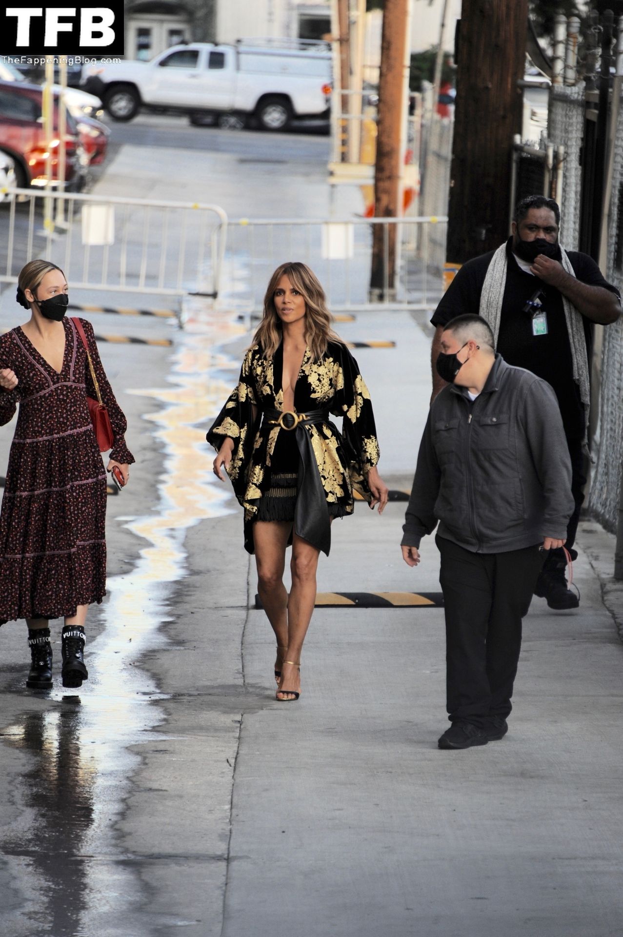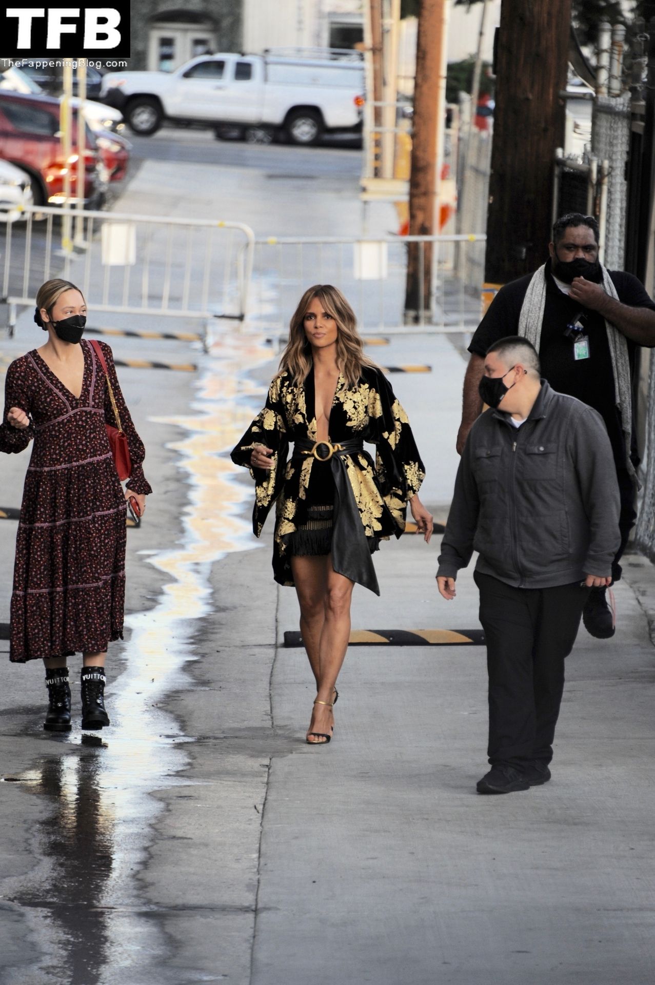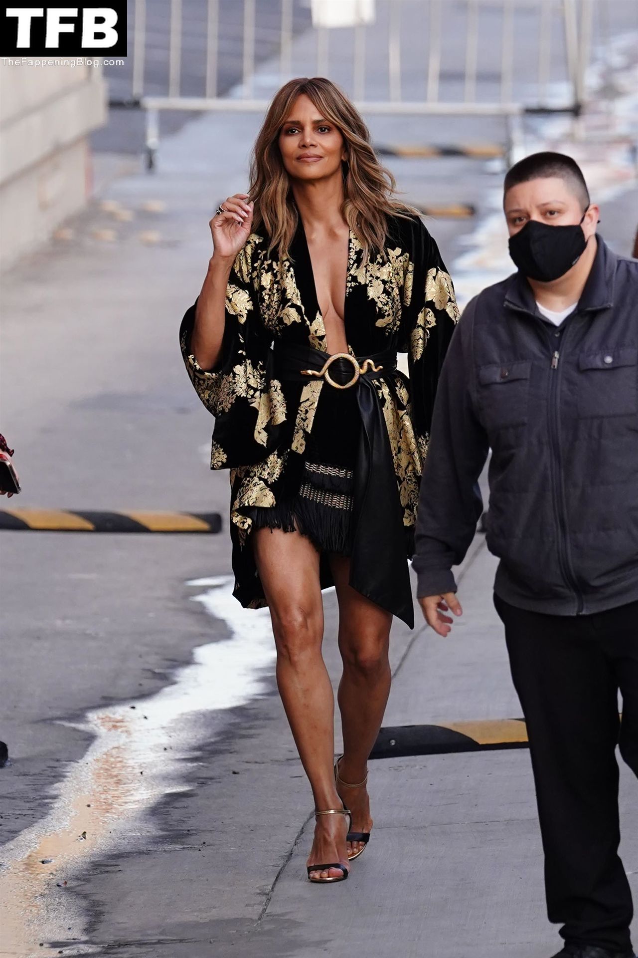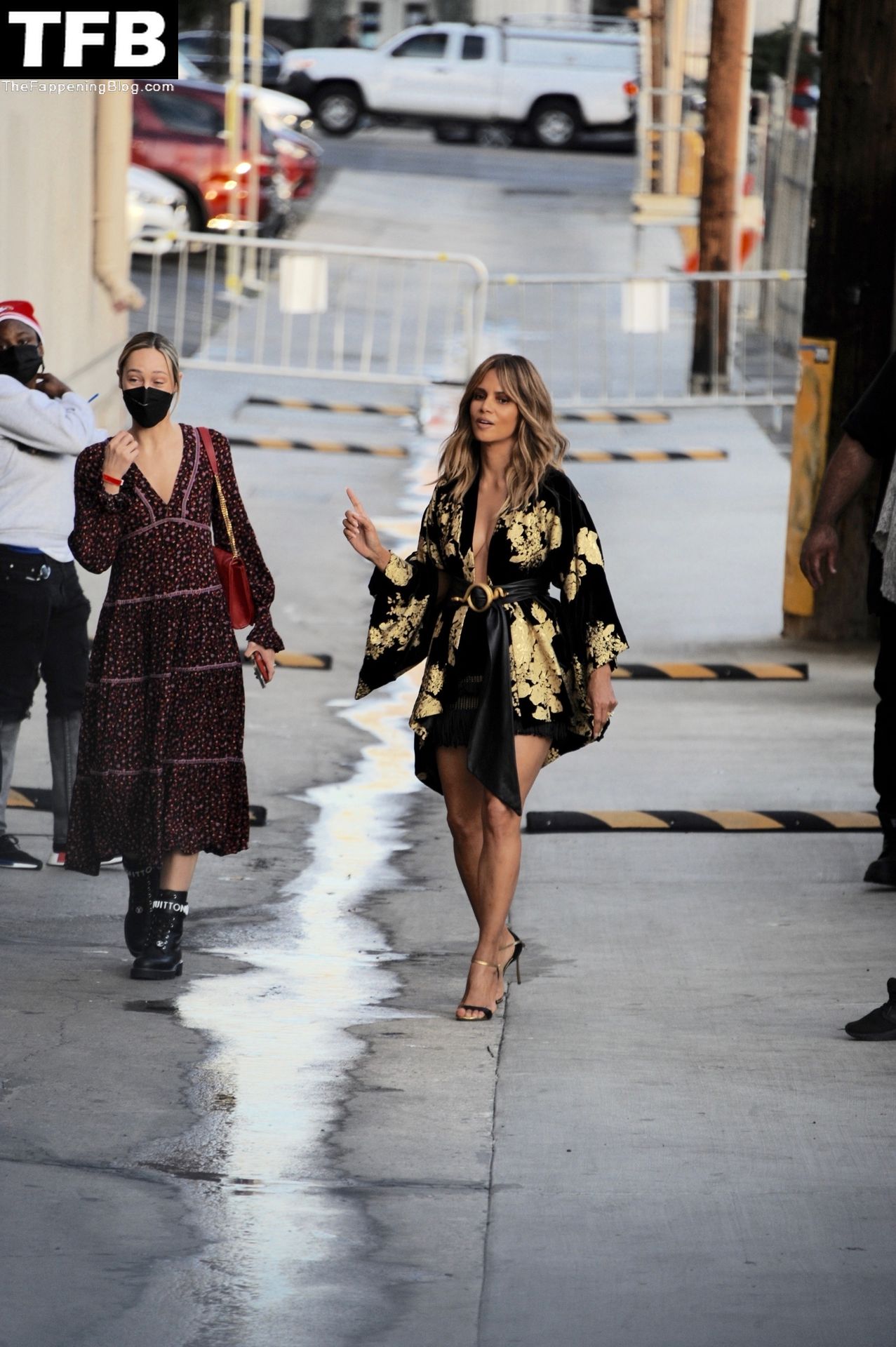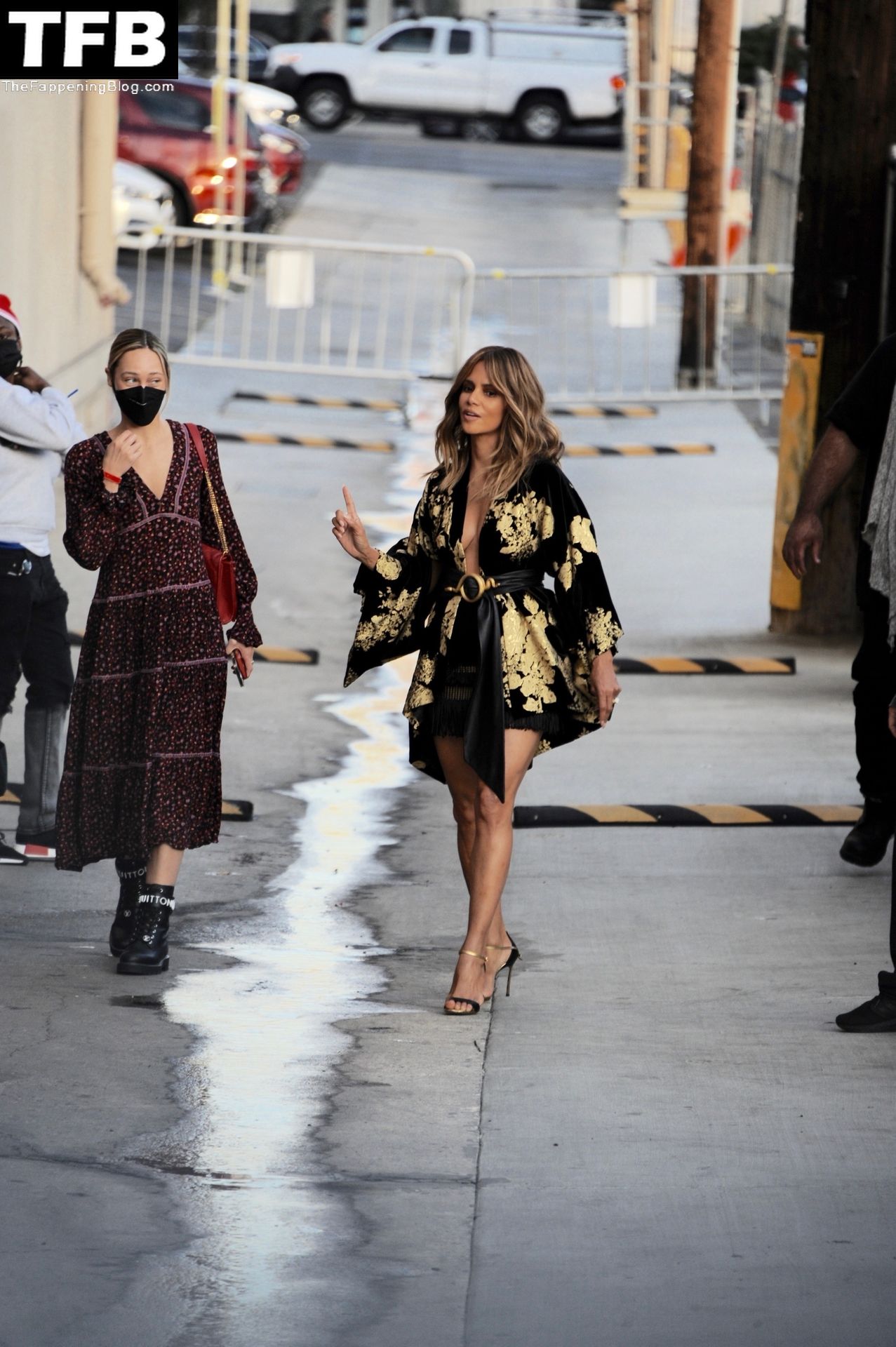 L’attrice Halle Berry attira tutti gli sguardi mentre arriva agli studi di Jimmy Kimmel Live! a Hollywood, 15/11/2021.
